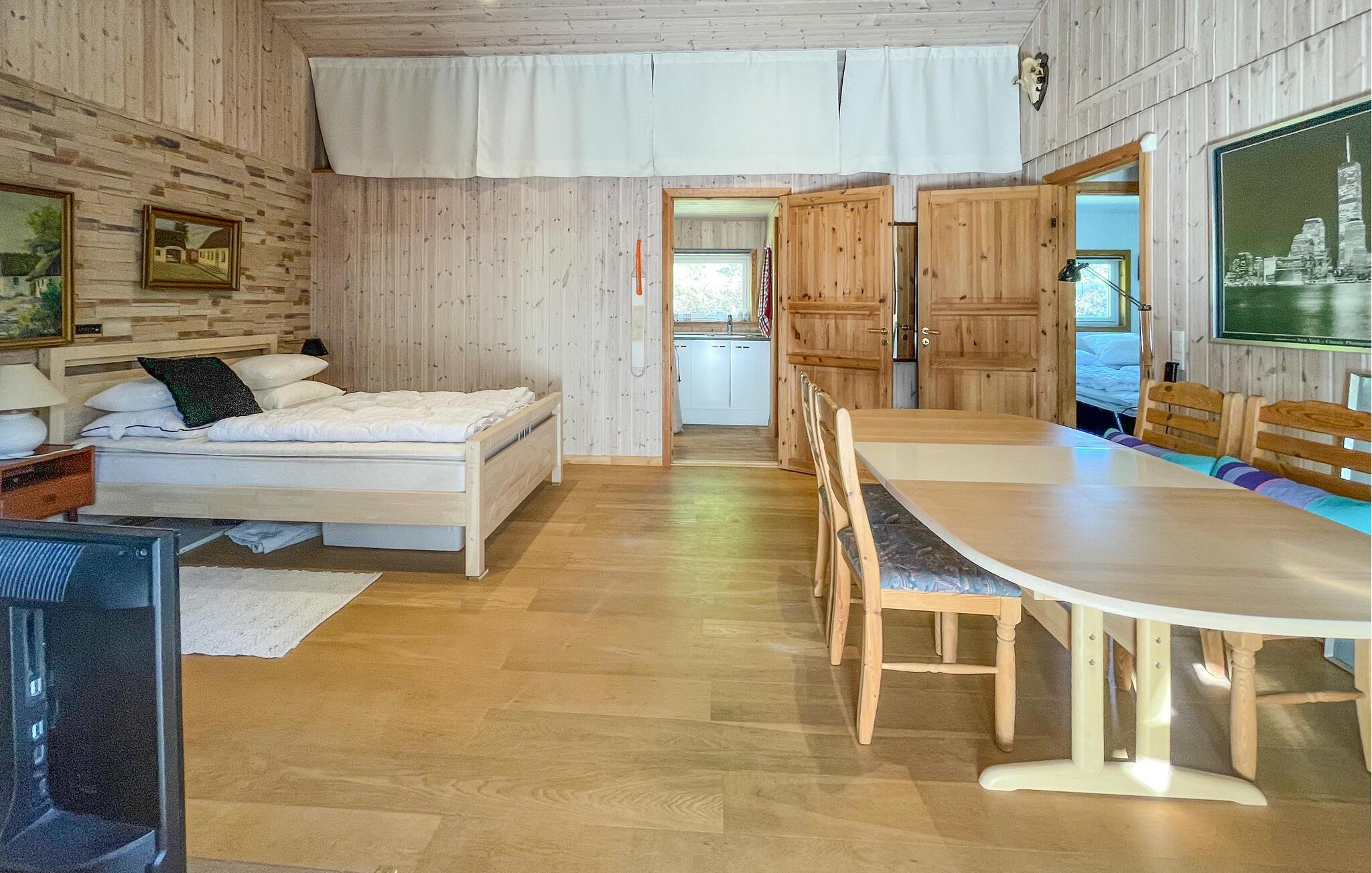 Treten Sie ein und lassen Sie sich von der wohnlichen Einrichtung empfangen. Der offene Wohn- und Schlafbereich ist hell und freundlich gestaltet, mit Holzwänden und geschmackvoller Dekoration. Verbringen Sie gesellige Stunden am Esstisch oder entspannen Sie bei einem guten Buch. Die Küche ist funktional ausgestattet und bietet die Möglichkeit, gemeinsam Ihre Urlaubsmahlzeiten zuzubereiten. Dank der großen Fenster fällt viel Tageslicht in die Räume und sorgt für eine angenehme Stimmung.