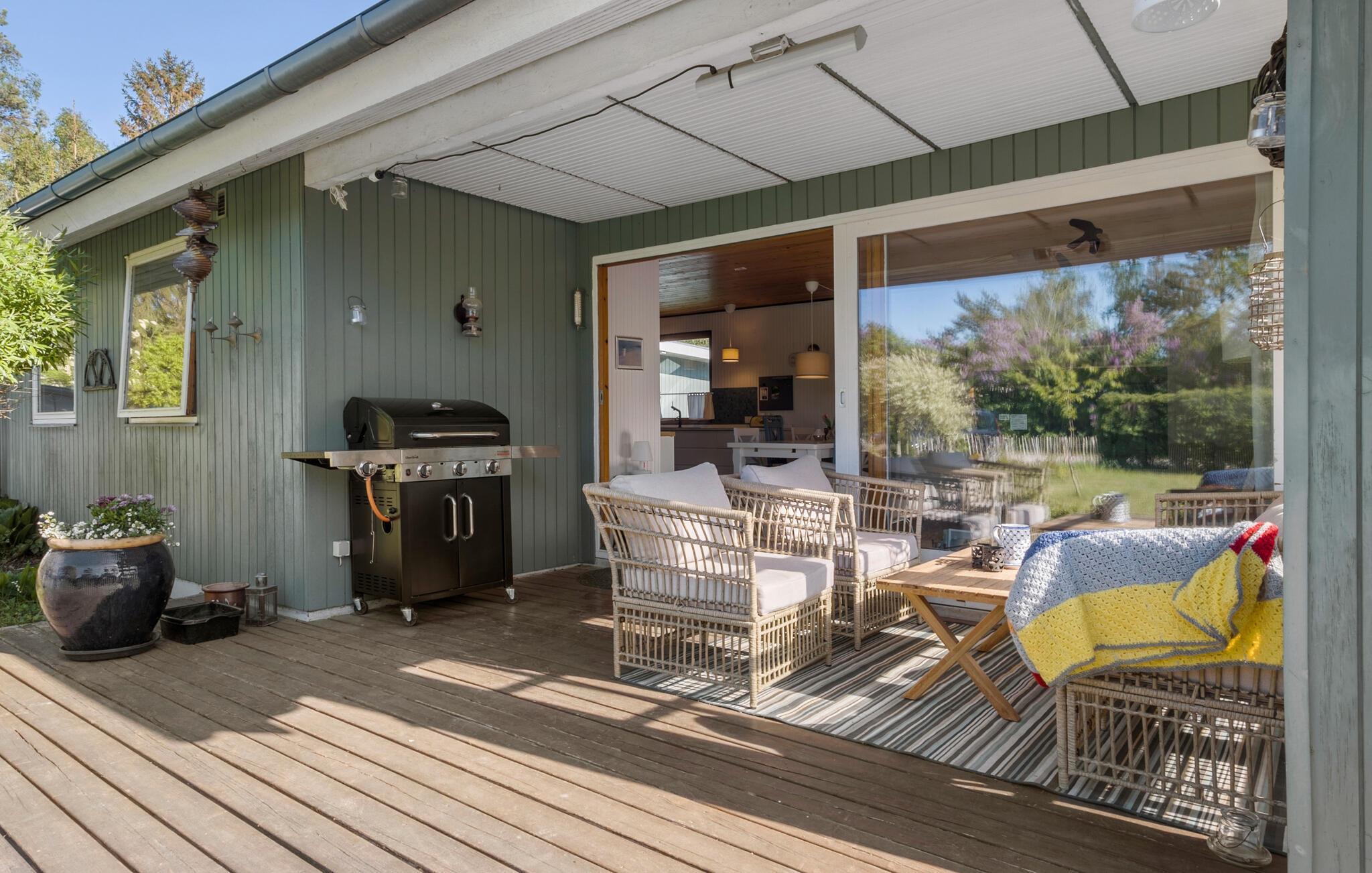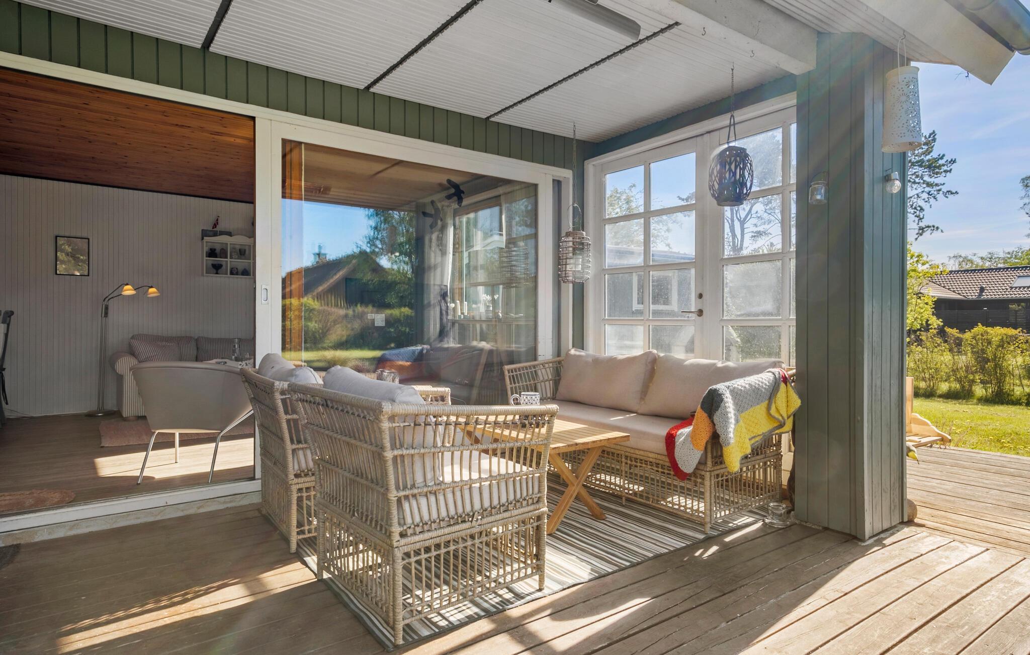 Die überdachte Terrasse lädt zu gemütlichen Grillabenden ein und bietet einen nahtlosen Übergang zwischen Innen und Außen. Auf dem gut gepflegten Rasen ist viel Platz für lustige Aktivitäten. Spielen Sie zum Beispiel mit der ganzen Familie eine Partie Krocket oder Federball.