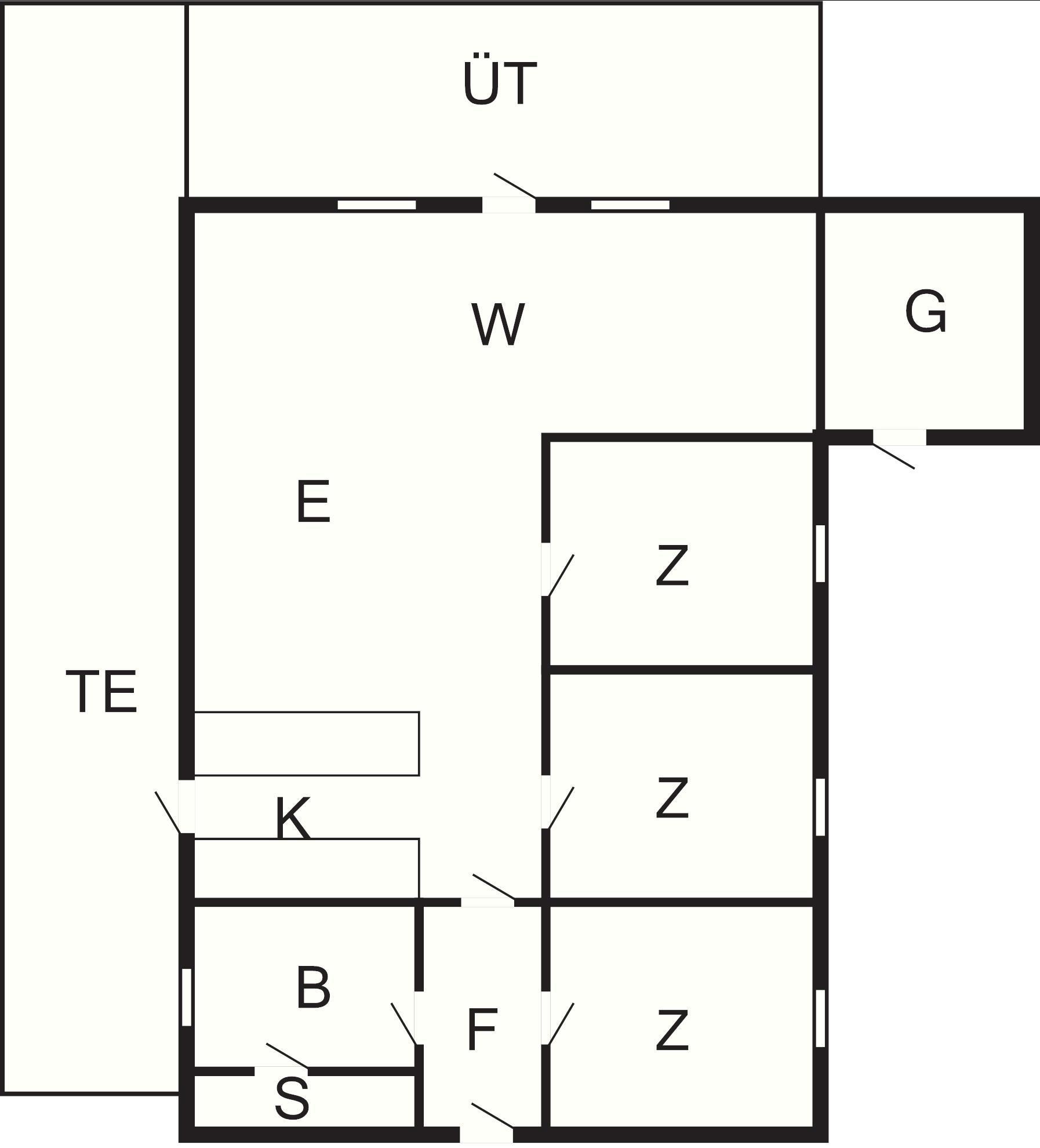 Off. Küche: E-Herd, Kühl-Gefrier-Kombi, Abzugsh., Kaffeem.