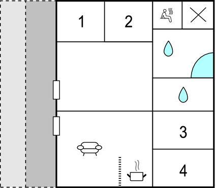 Badezimmer (nr. 2) - WC. Warmes und kaltes Wasser. Dusche