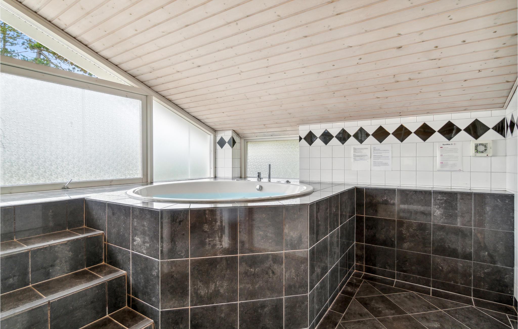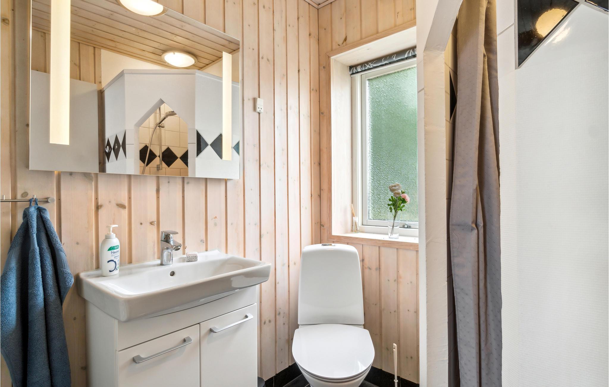 Sehr praktisches Ferienhaus in einzigartiger Lage, in der ersten Reihe zum Badestrand. Von Haus und Grundstück besteht Panoramaaussicht auf das Meer und hinüber zur Insel Hjelm. Hier können Sie windsurfen, angeln und mehr. Eine schöne Wohnküche erwartet die Gäste im Inneren des Hauses, auch zwei Badezimmer. Es eignet sich daher auch für zwei Familien. Entspannen Sie besonders im großen Whirlpool. Terrasse und Grund sind großzügig dimensioniert und für allerlei Spiele geeignet. Die Schlafgelegenheiten auf dem Hems eignen sich am besten für Kinder.