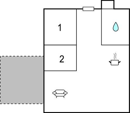 Schlafzimmer (nr. 1) - 1 Schlafmöglichkeit. (Einzelbett(en)). 2 Schlafmöglichkeiten. (Doppelbett(en)).