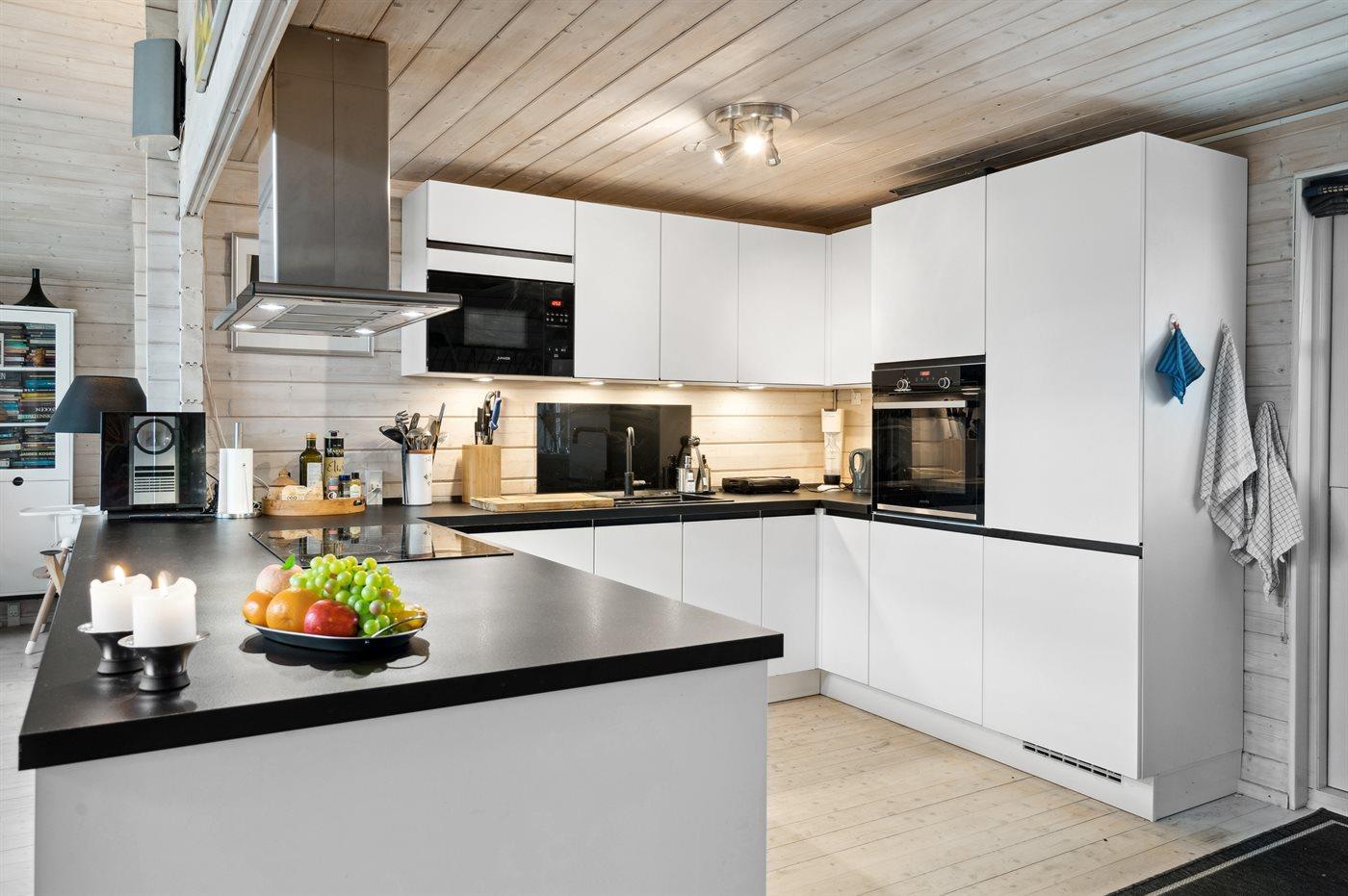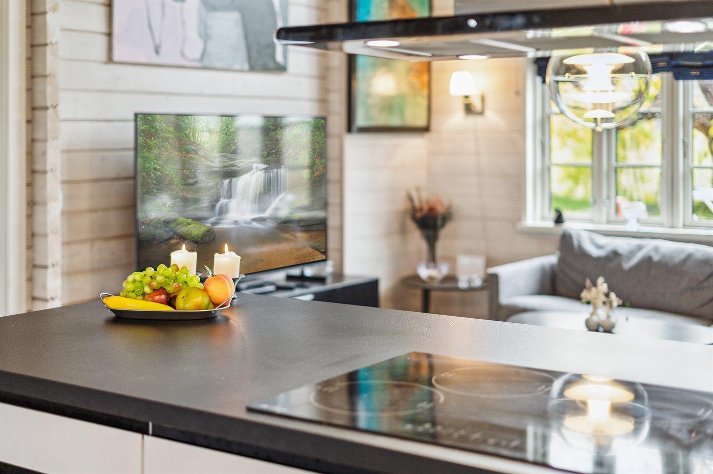 Die Küche ist mit Kühlschrank ausgestattet. Außerdem gibt es 4 Induktions-Kochzonen, Umluftofen, Mikrowelle sowie Geschirrspüler.
