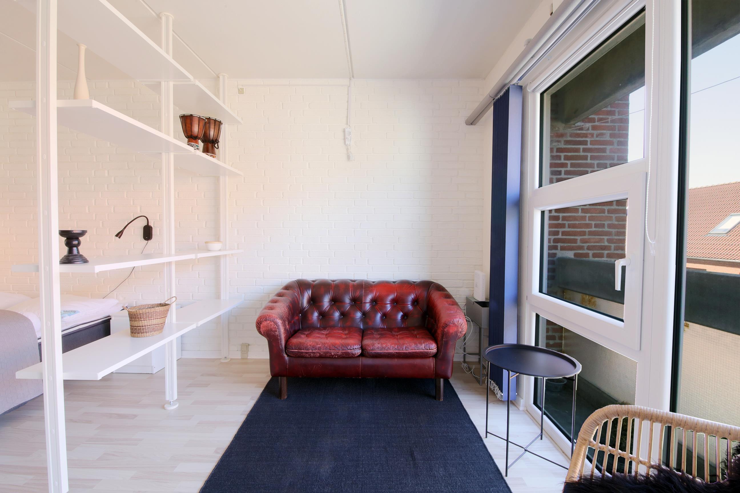 opholdsstue/seng og køkken i et.
