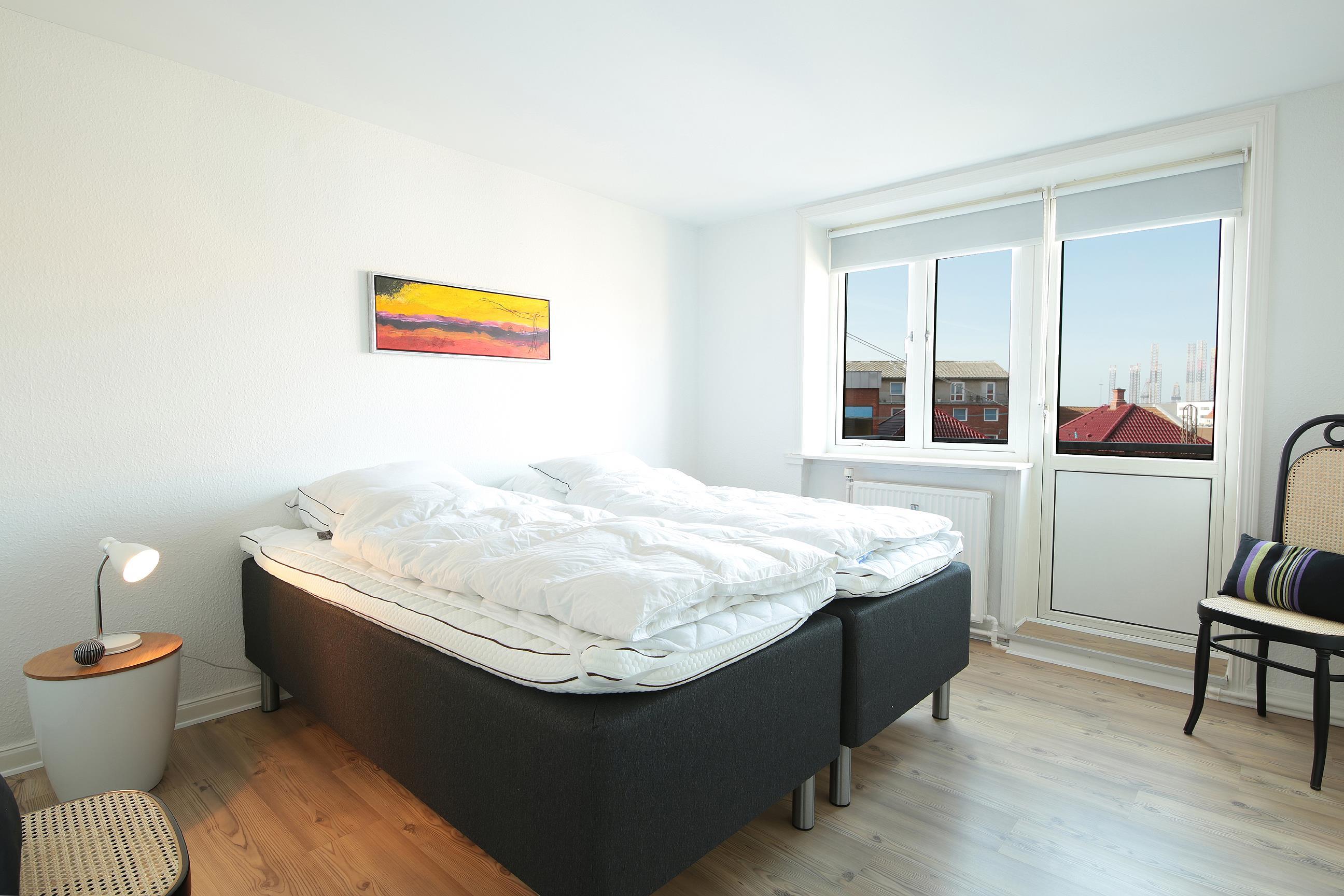 Moderne 2-Zimmer-Wohnung im Zentrum von Esbjerg mit Balkon, Internet und kostenfreier Waschmaschine.