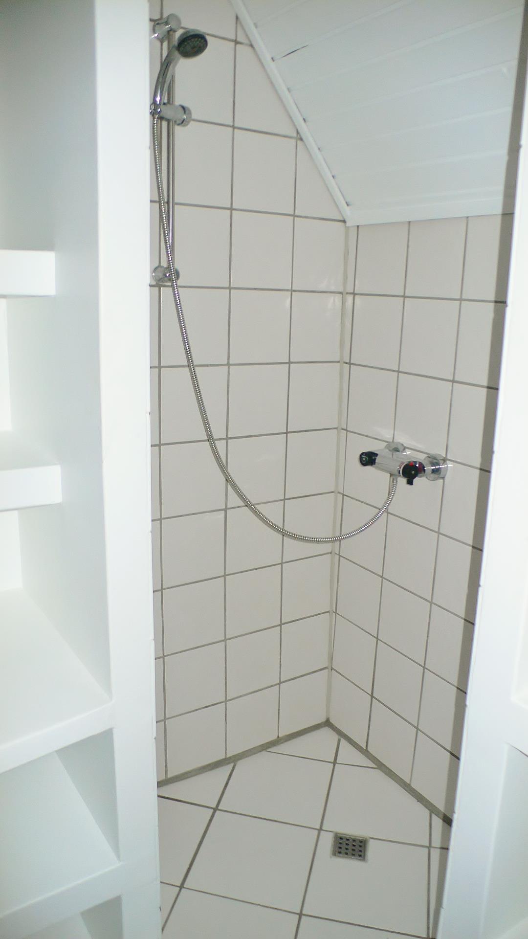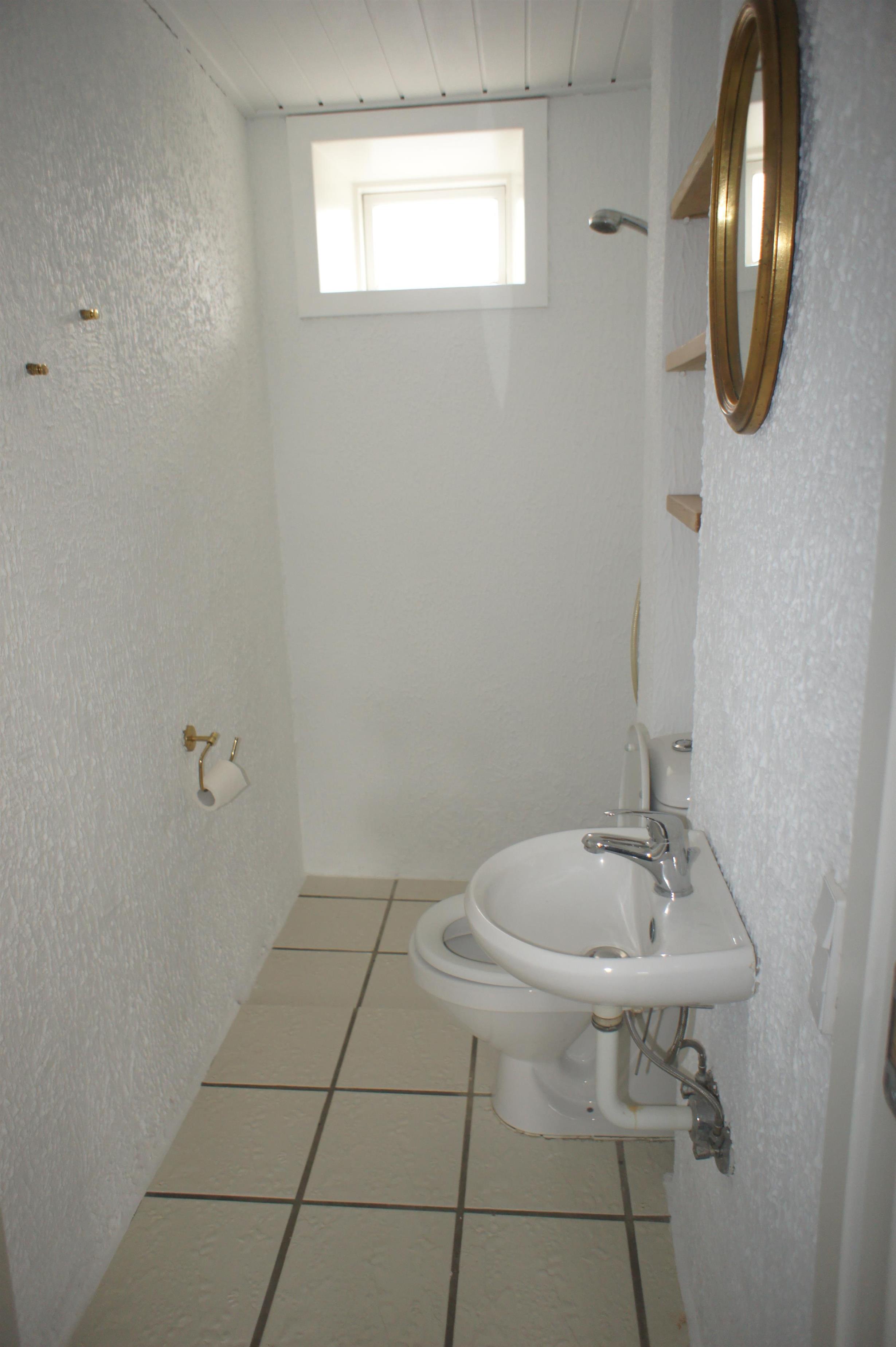 Es gibt ein Gästebad mit Fussbodenheizung, Dusche, Waschbecken und WC.