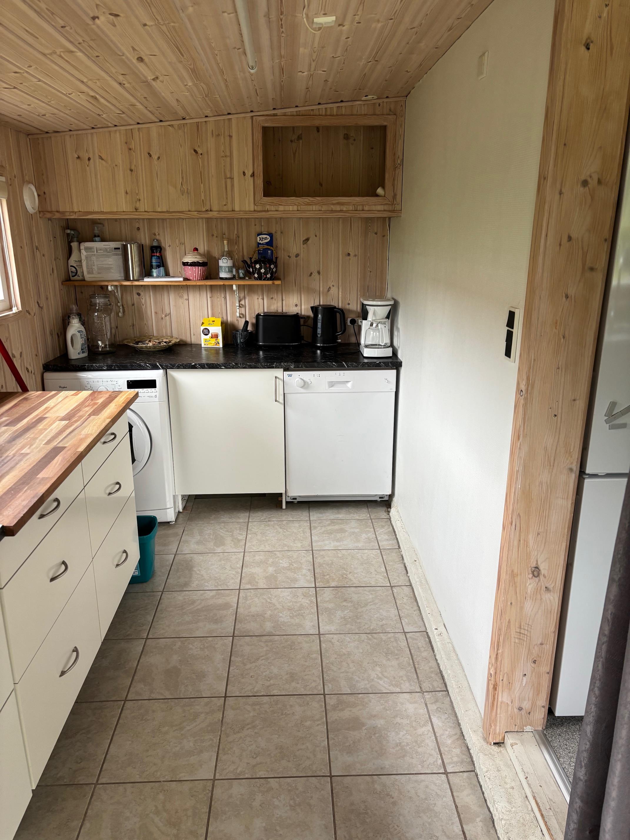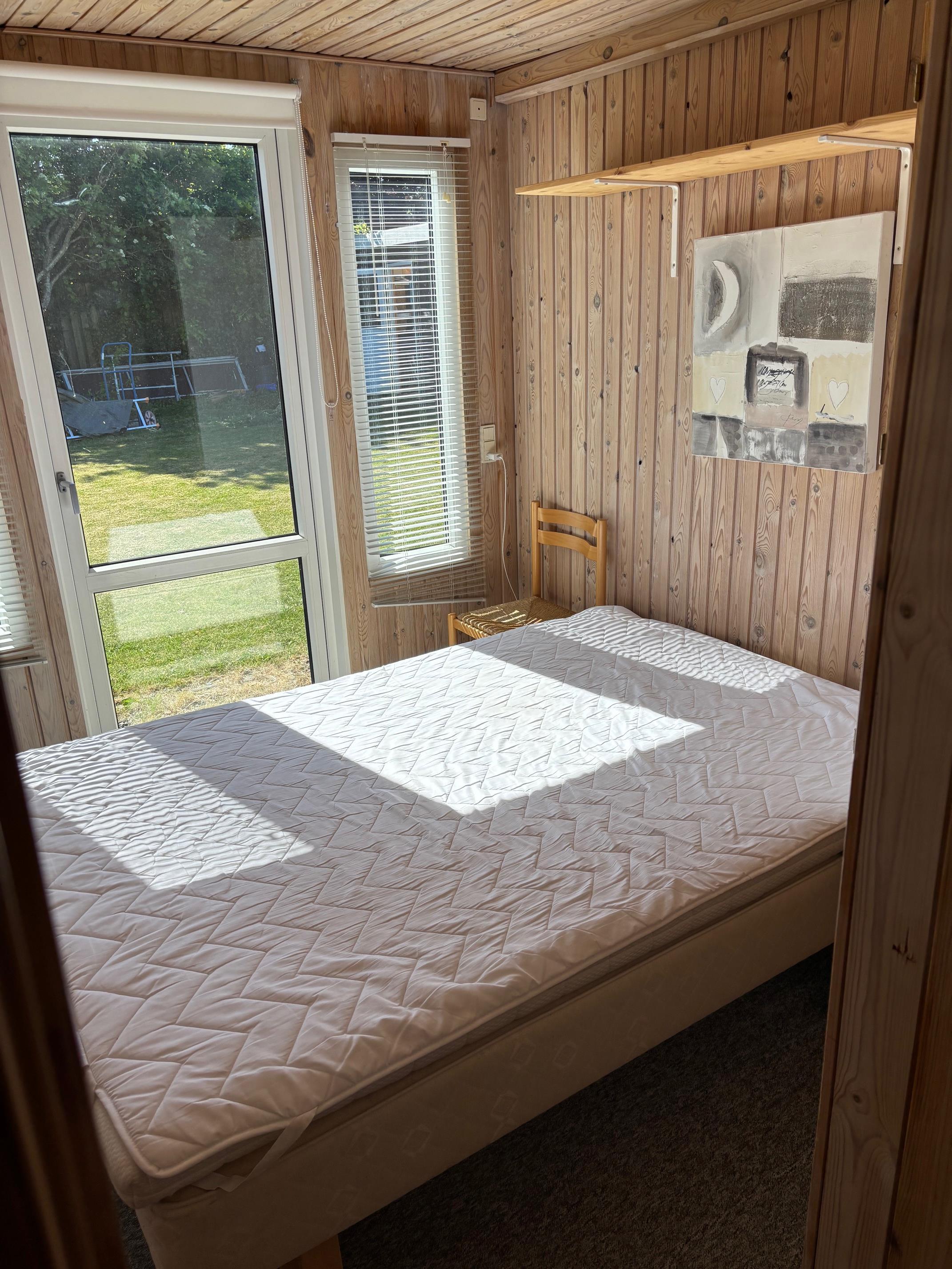 Huset er udstyret med 2 soveværelser, køkken, bad, opholdsstue & udestue, bryggers med vaskemaskine og tørretumbler.