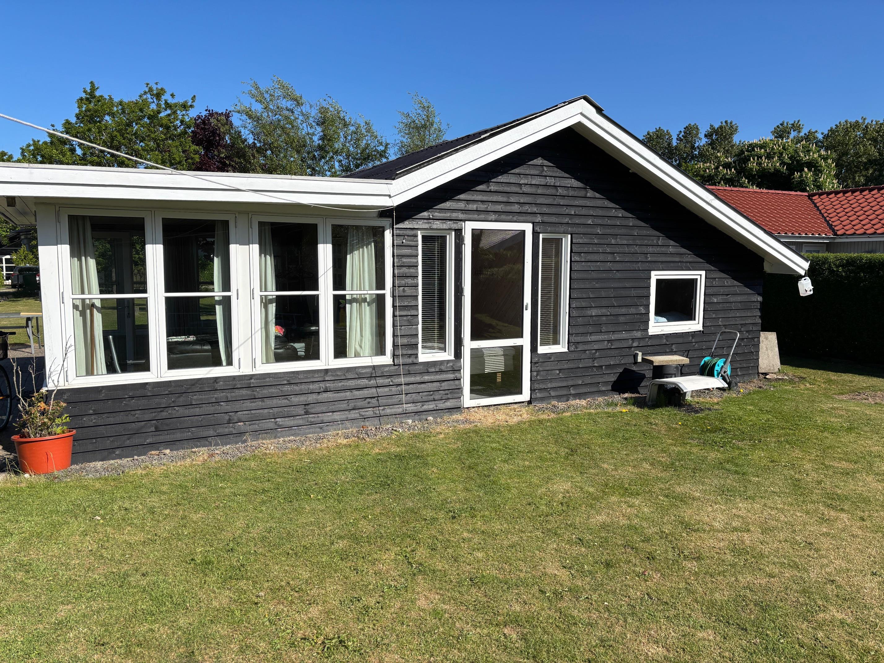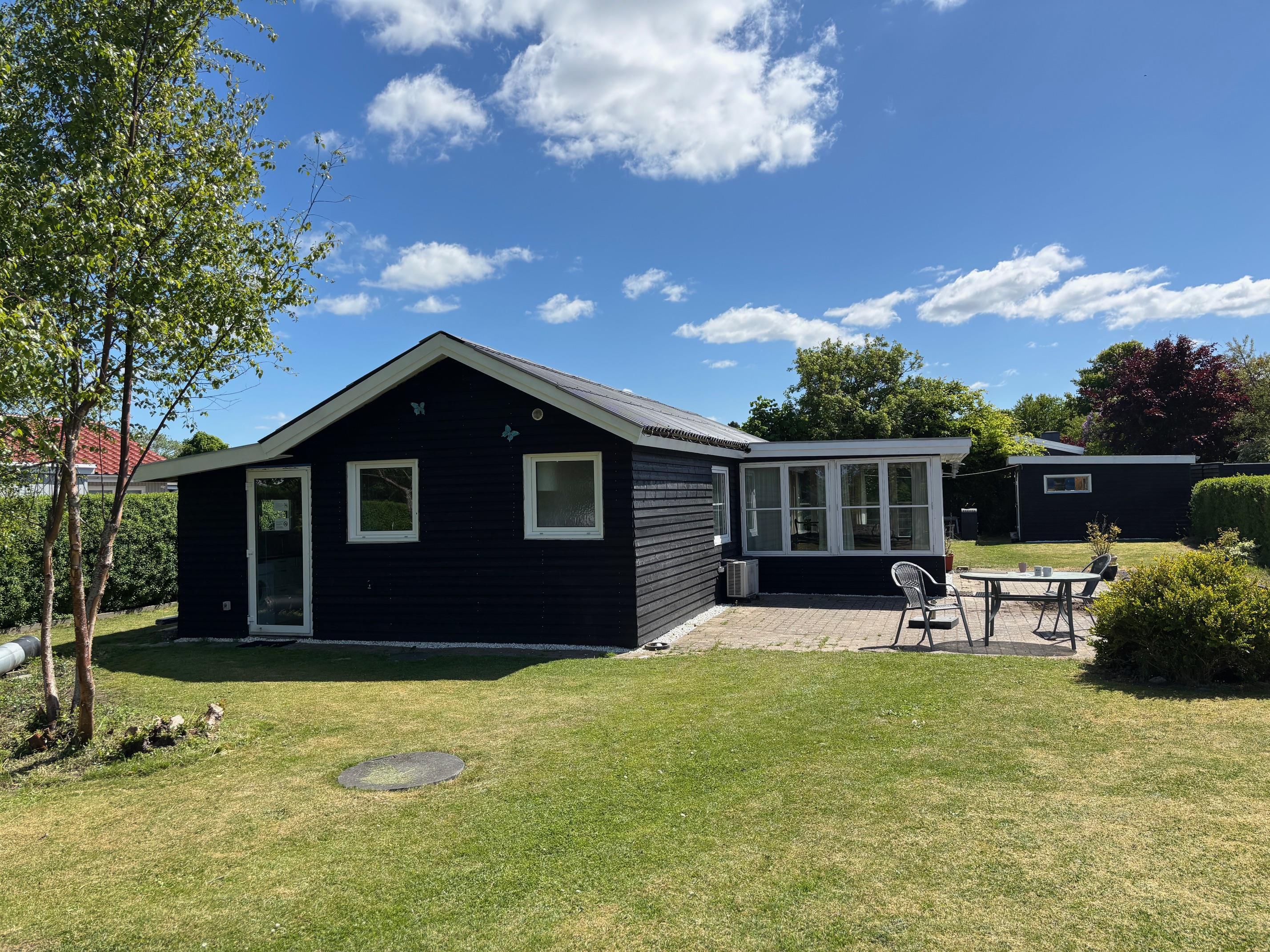 Et fint familie feriehus, beliggende på en børnevenlig grund.