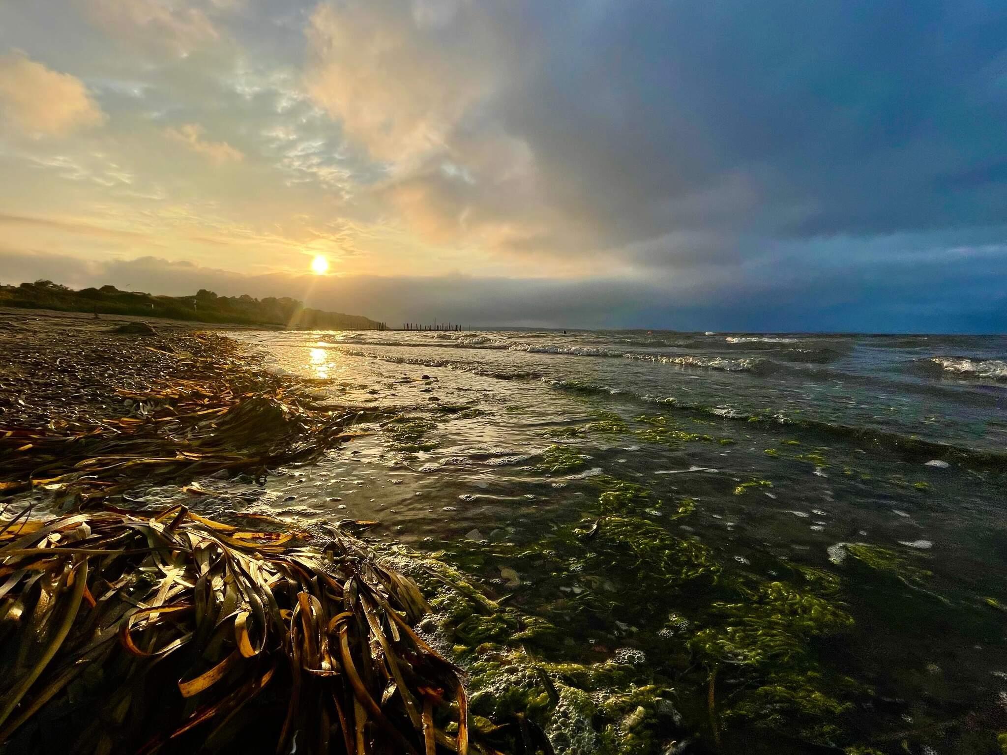 Landgut mit Panoramablick auf das Meer. Das Ferienhaus liegt in der Nähe von Wald und Strand und der Strand ist nur 500 Meter entfernt. Am Haus ist 3000m² eingezäunter Garten.