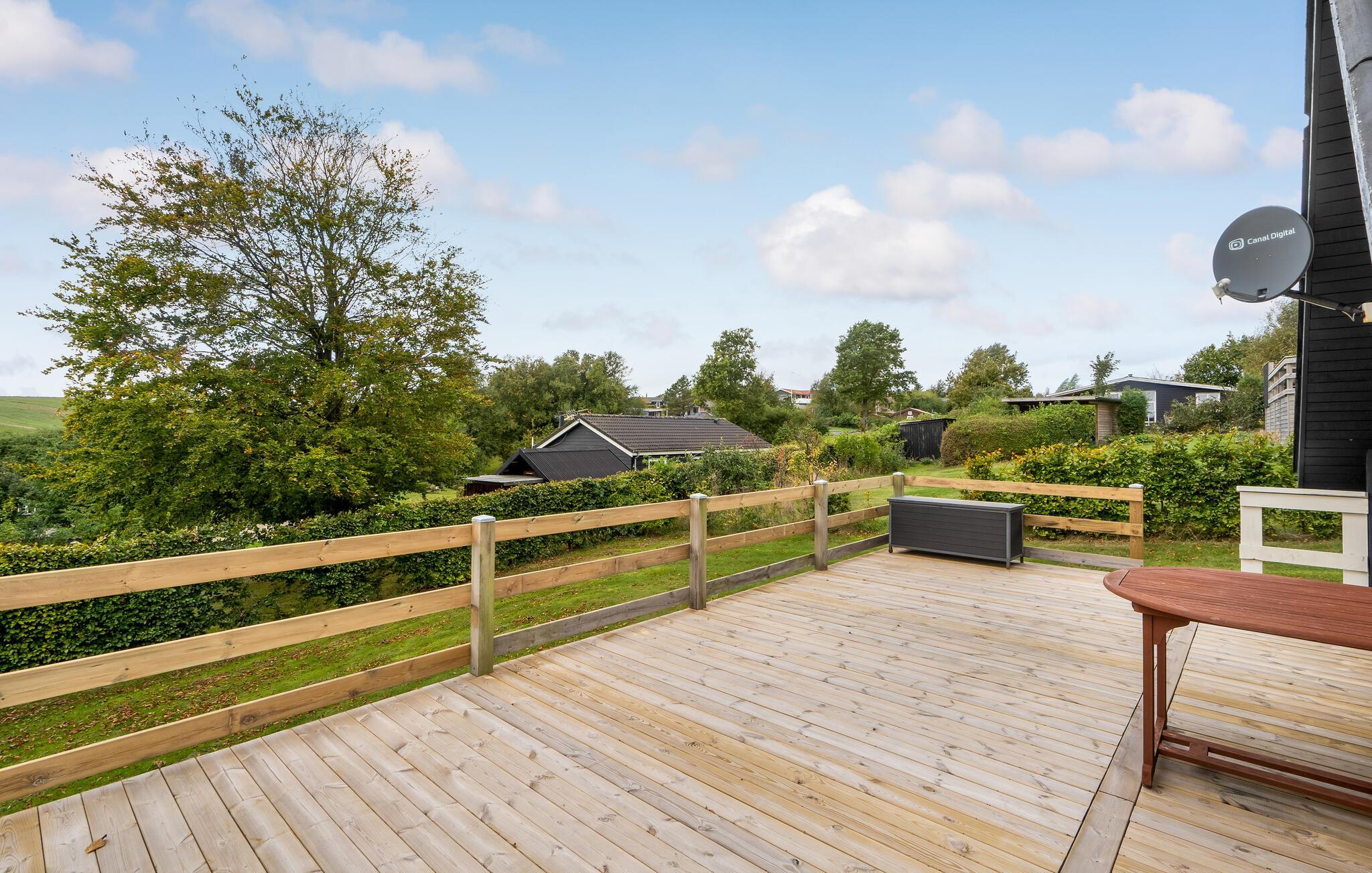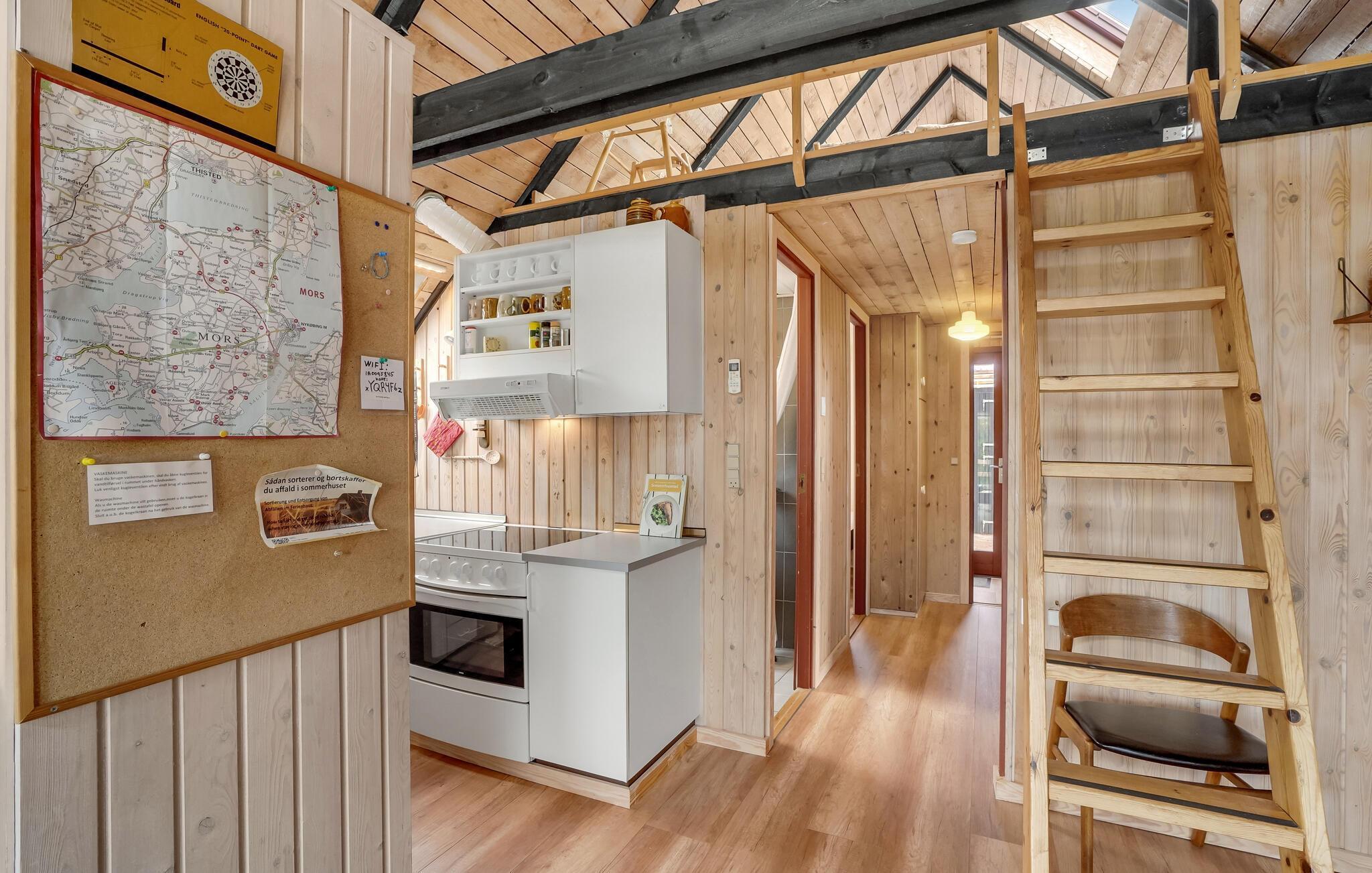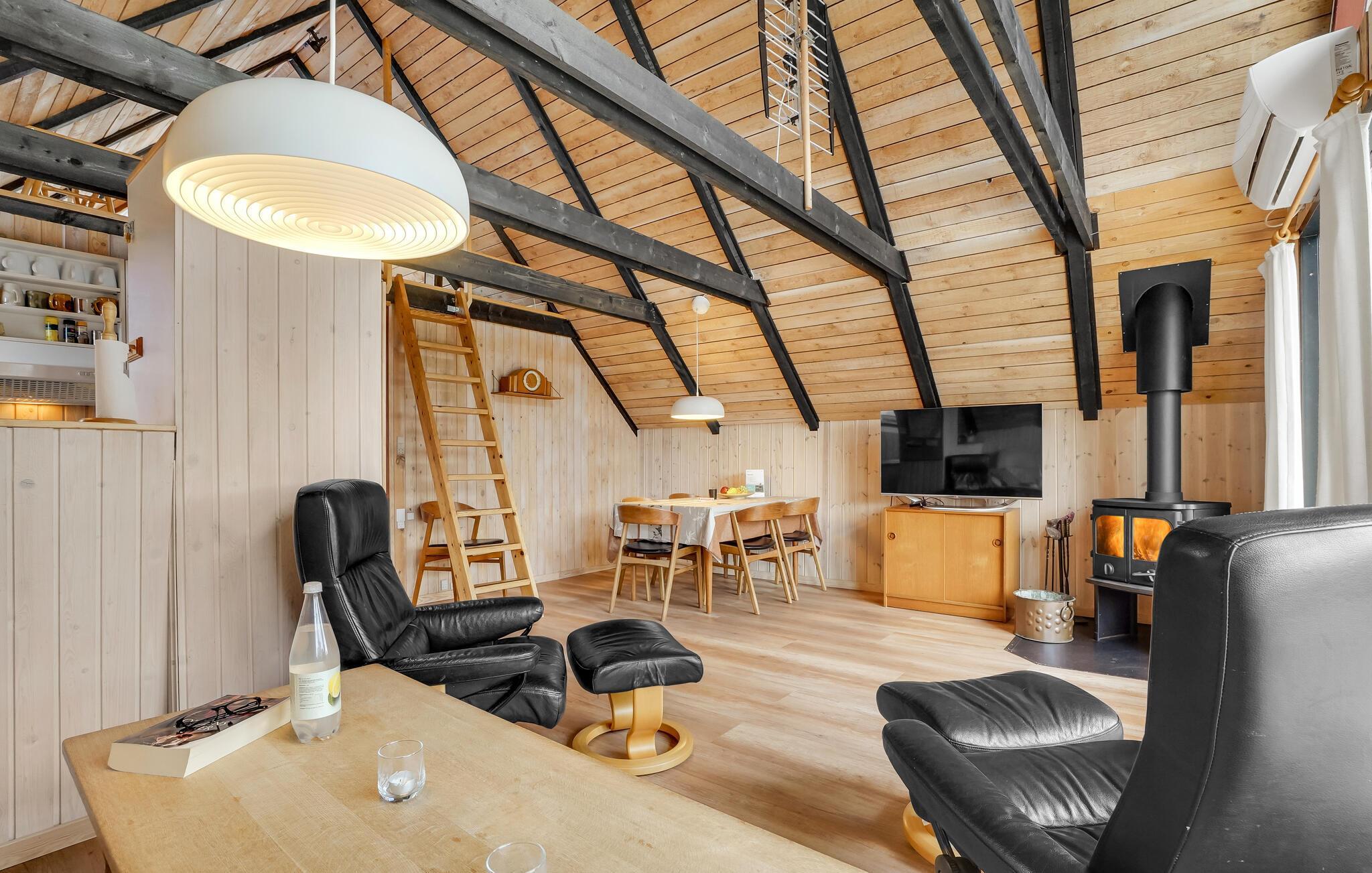 Wenige hundert Meter vom Limfjord entfernt begrüßt Sie dieses tolle Ferienhaus. Im Innenraum erwarten Sie ein komfortables, gut ausgestattetes Interieur und eine entspannte Atmosphäre. Das Herzstück des Hauses bildet der offene Wohnbereich, der den idealen Rahmen für gesellige Mahlzeiten und gemütliche Abende vorm Kaminofen bietet.