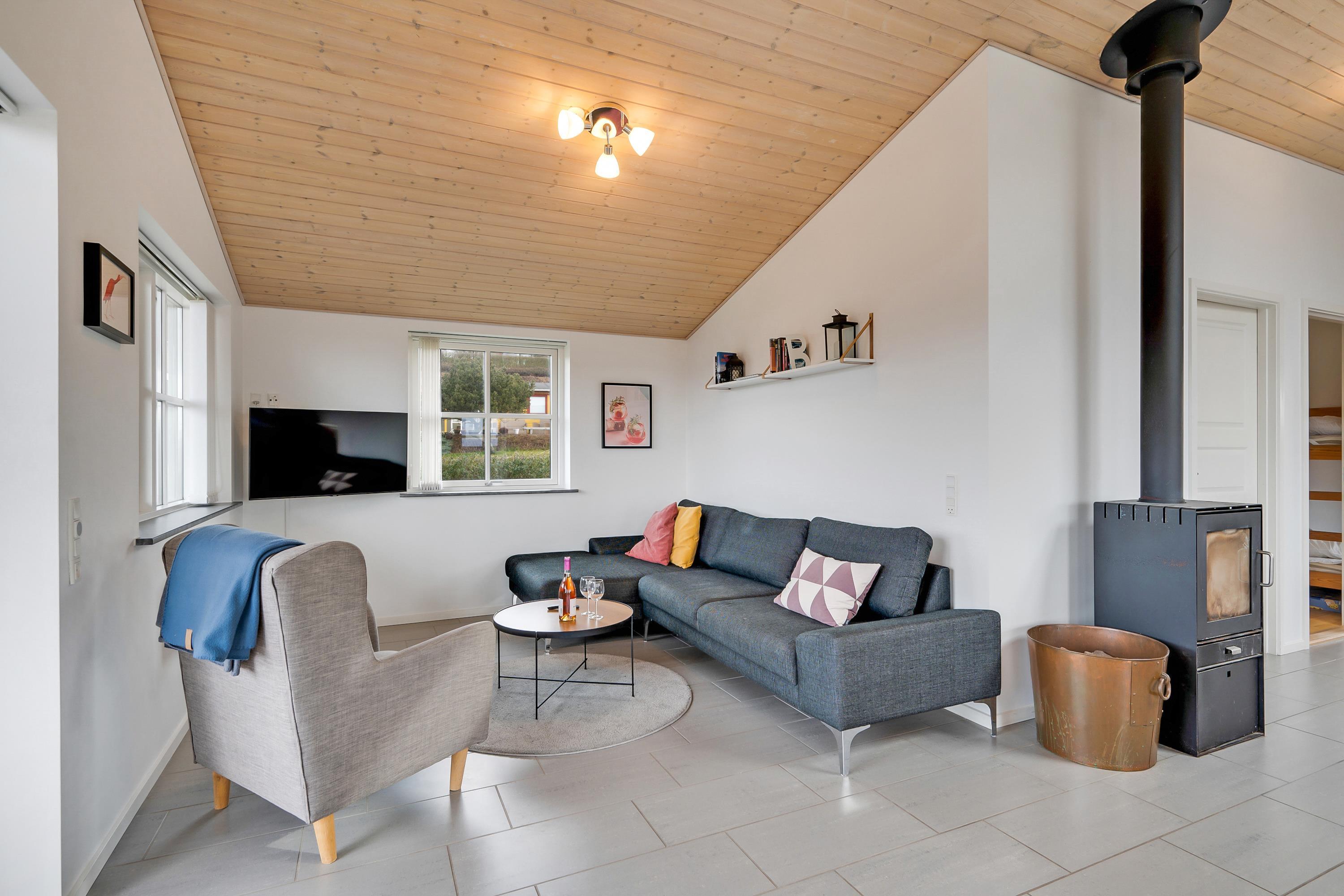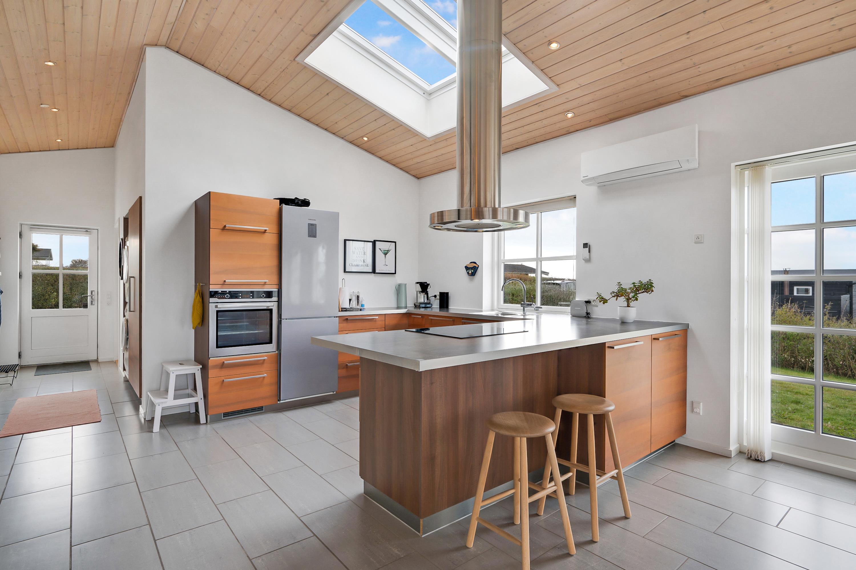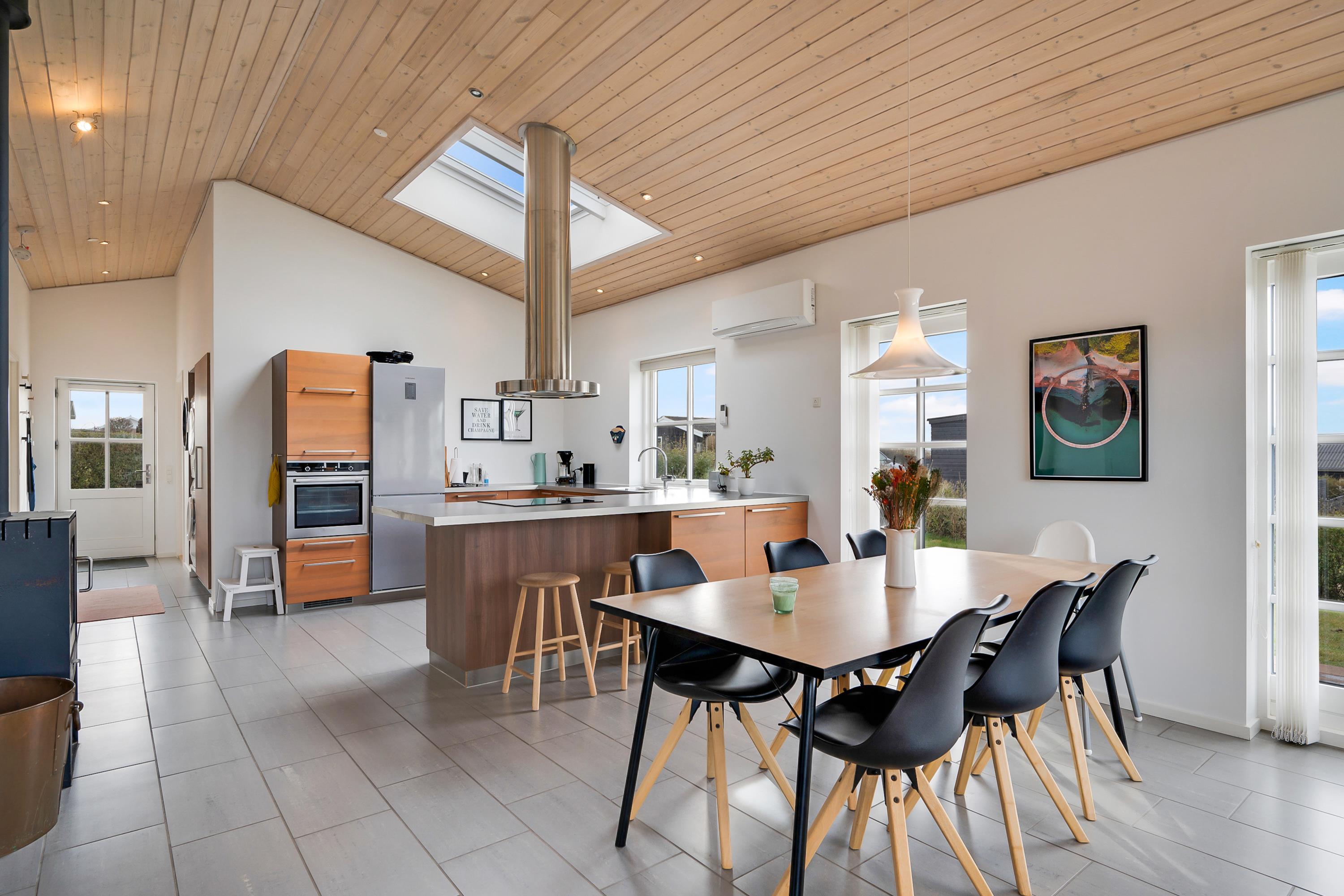 In der Nähe von Følle Strand finden Sie dieses sehr schöne Ferienhaus. Das Haus verfügt über einen Flur mit Waschmaschine und Trockner. Schöne, geräumige Küche mit u.a. Geschirrspüler und in offener Verbindung mit dem gut eingerichteten Wohnzimmer, wo Sie direkten Zugang zu einer großen Terrasse mit Meerblick, guten Gartenmöbeln und Gasgrill haben.