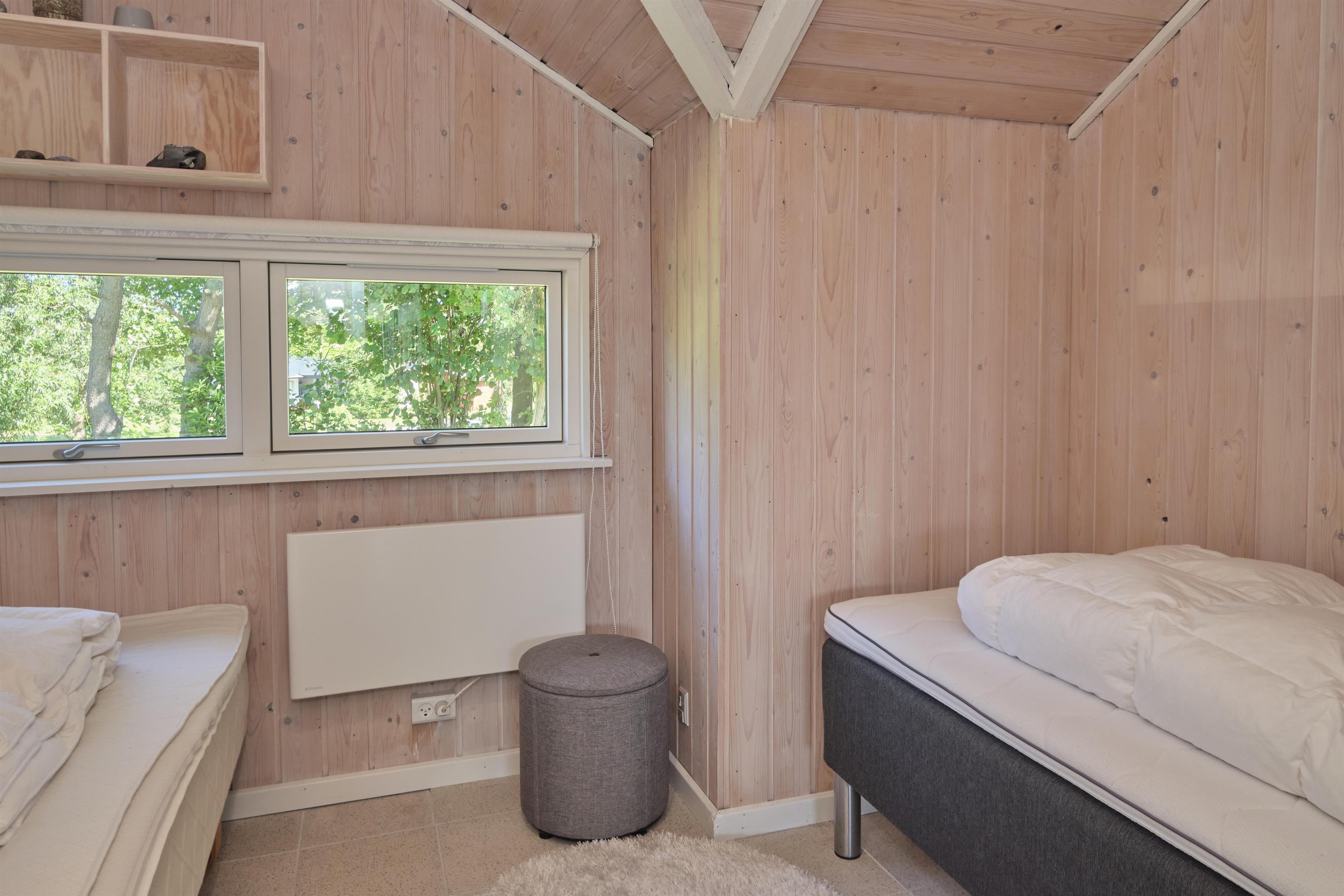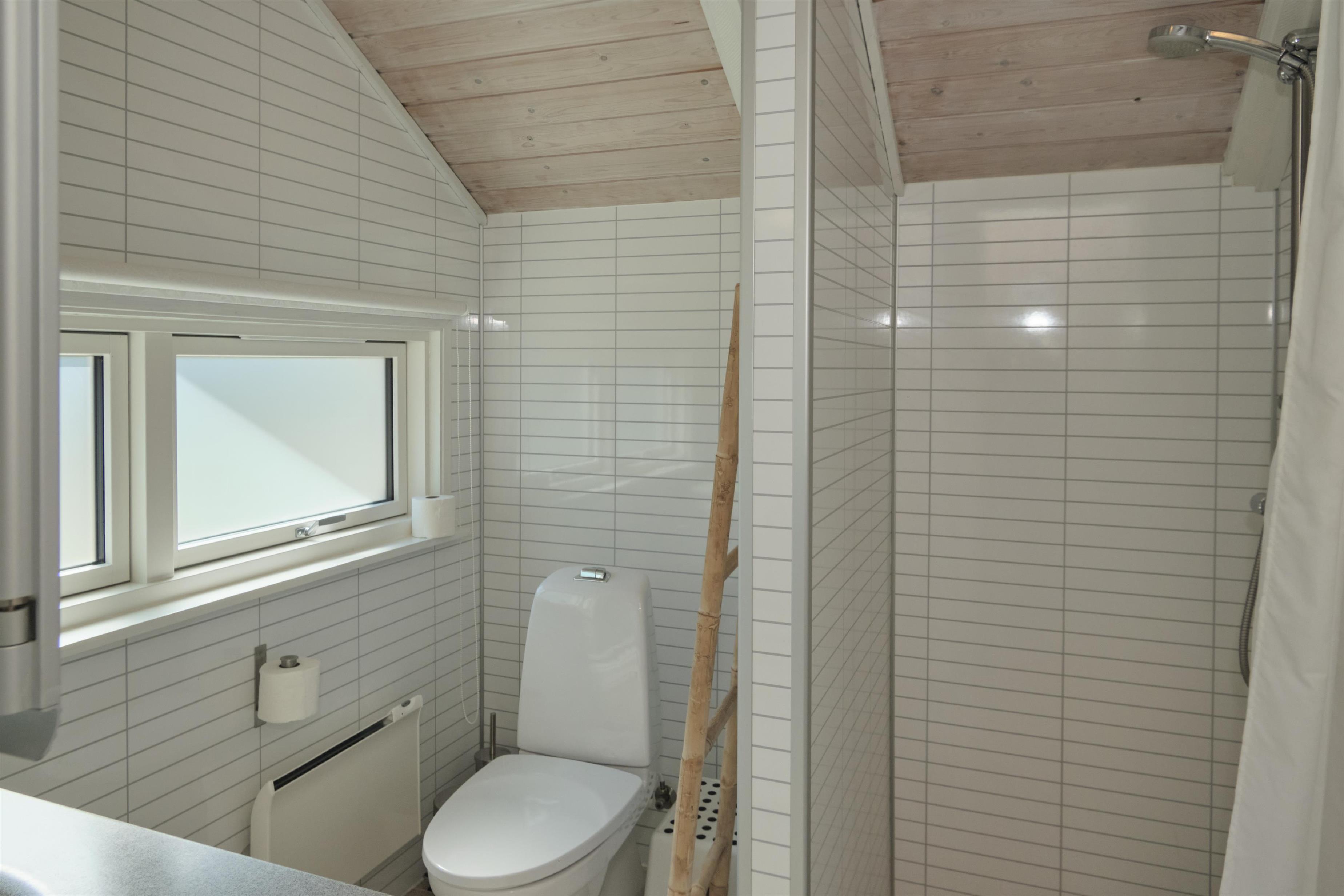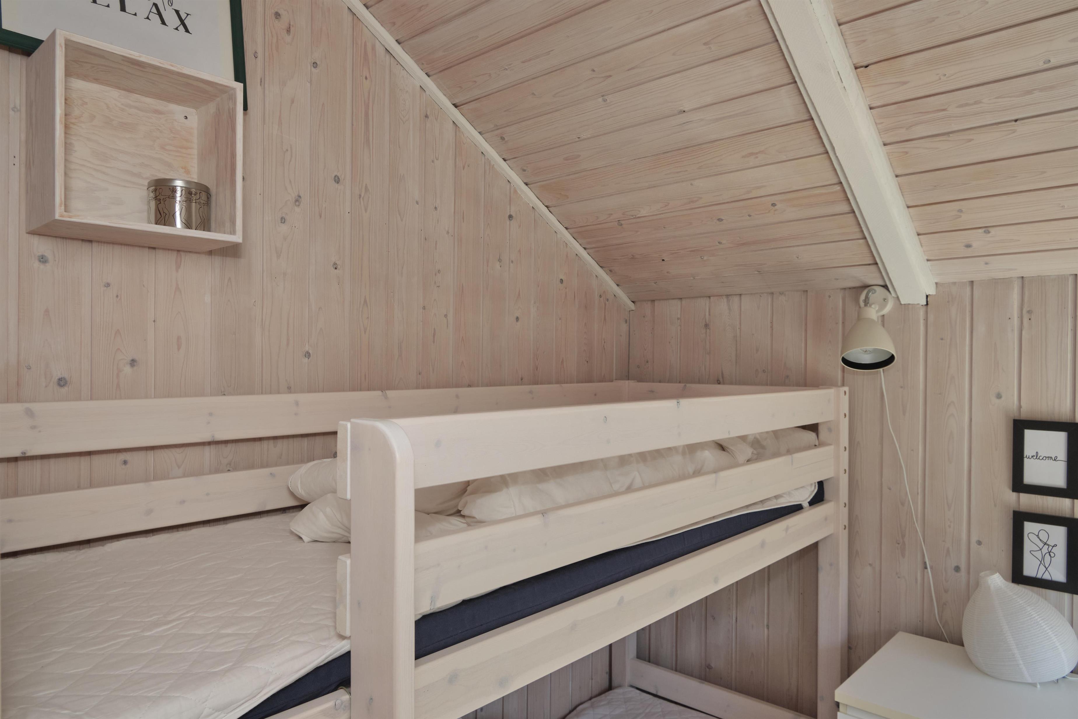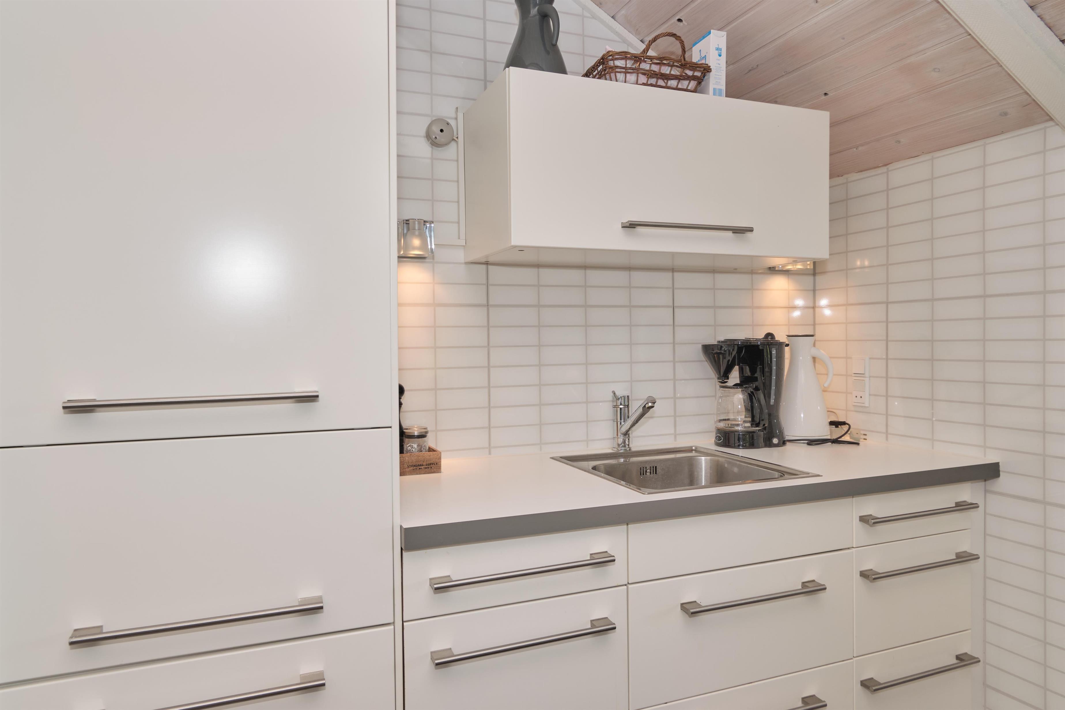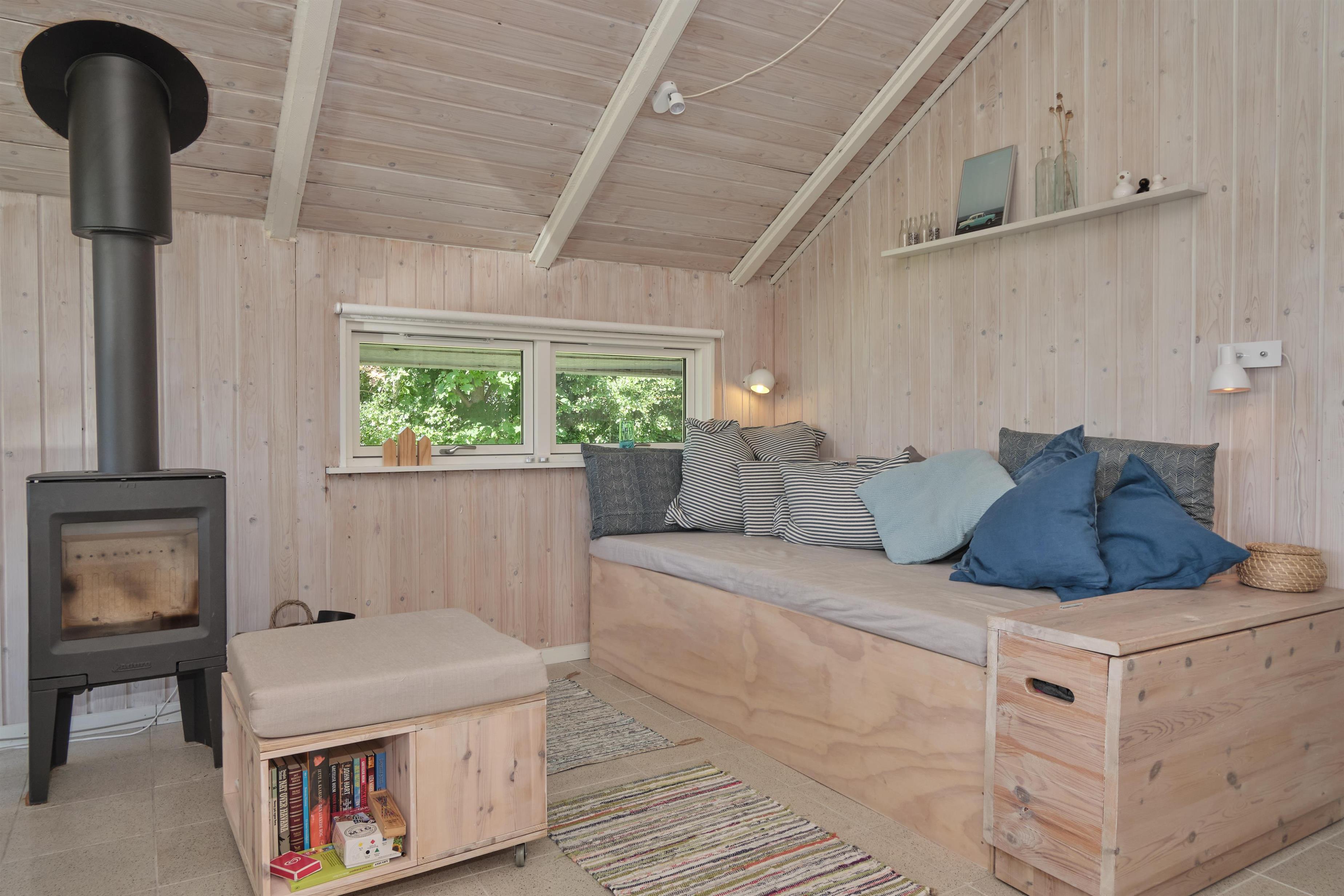 Das helle, behagliche Wohnzimmer in offener Verbindung zur Küche ist mit gutem Sofabereich, gemütlicher Sitzbank neben dem Kaminofen und TV mit dänischen (inkl. TV2) und deutschen Programmen ausgestattet. Guter Essplatz für sechs Personen. Neuere, gut ausgestattete Küche mit Kühl-/Gefrierkombination, Glaskeramikherd und Geschirrspüler. Die insgesamt sechs Schlafplätze verteilen sich auf drei gute, helle Schlafzimmer – eines mit Doppelbett, eines mit zwei Einzelbetten und eines mit Etagenbett. Gediegenes, gefliestes Badezimmer mit Dusche und Fußbodenheizung. Internetzugang.