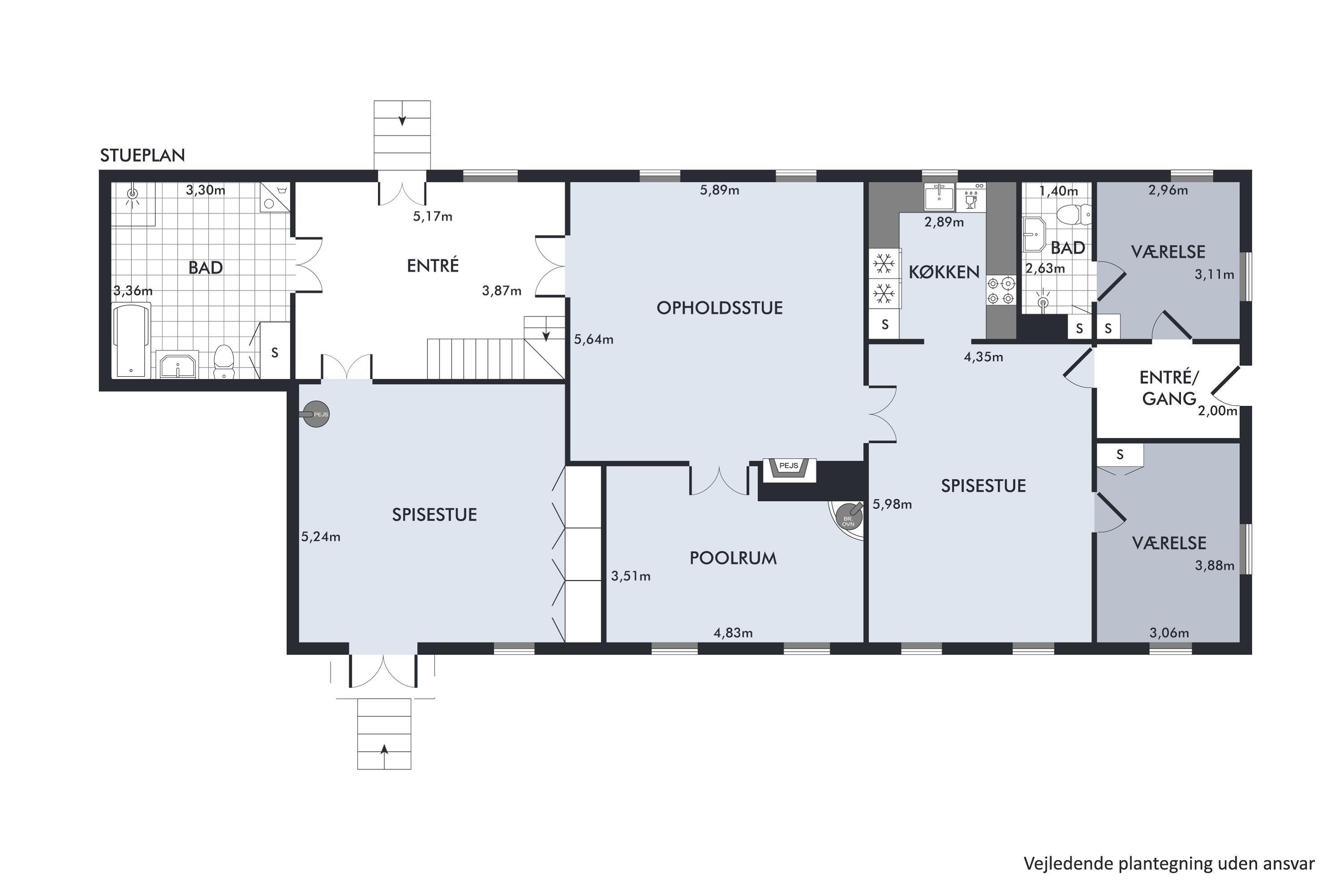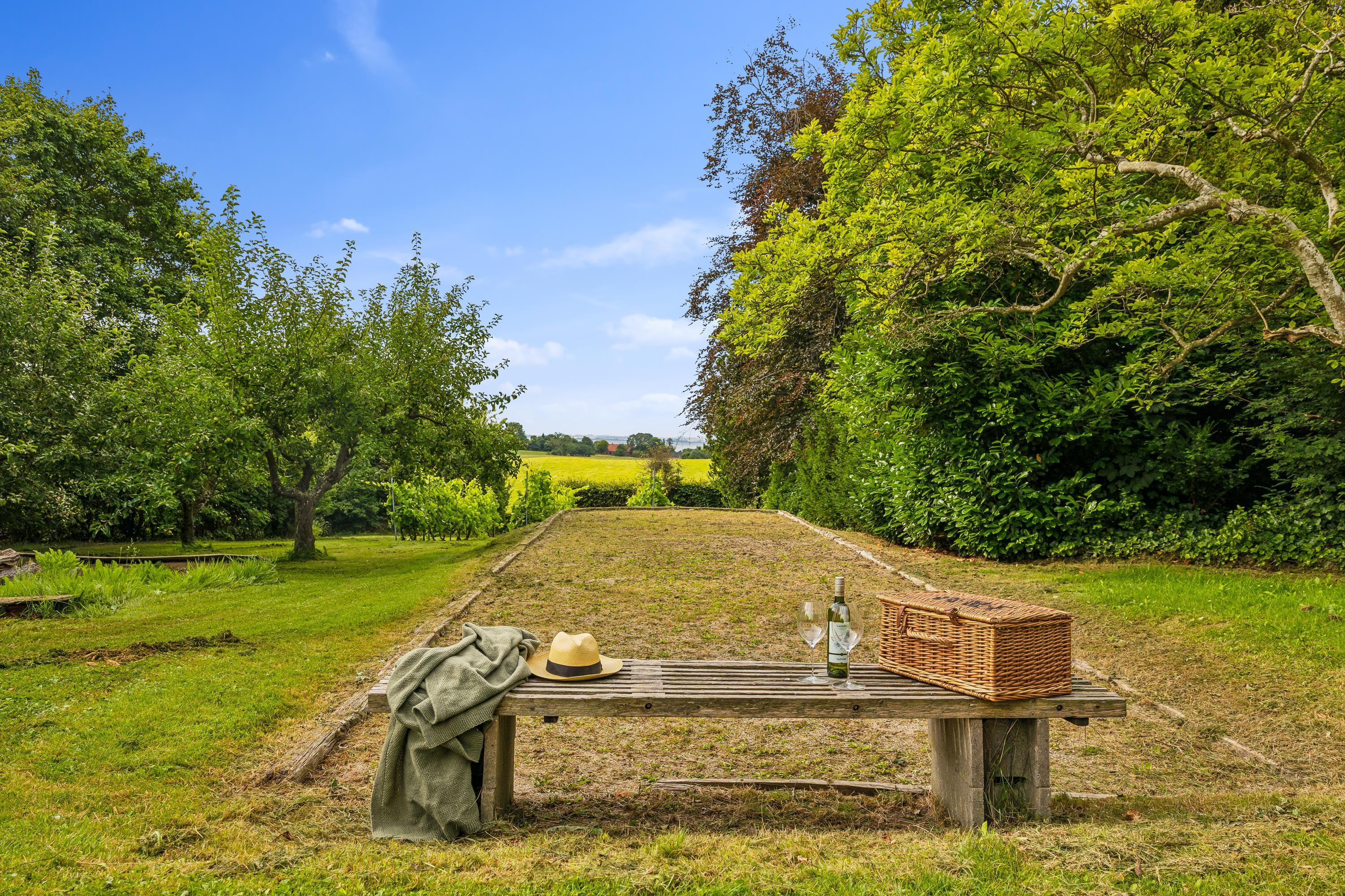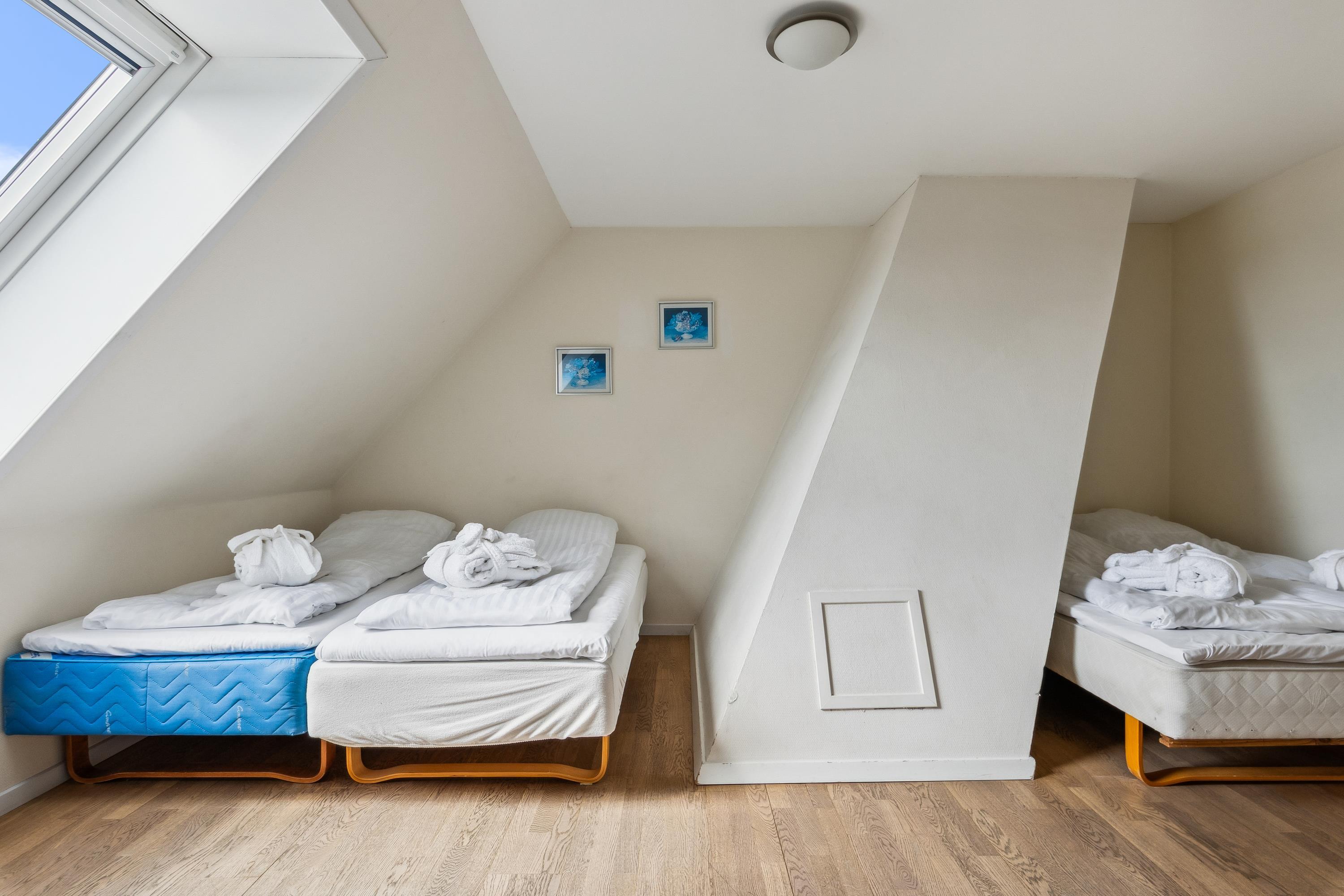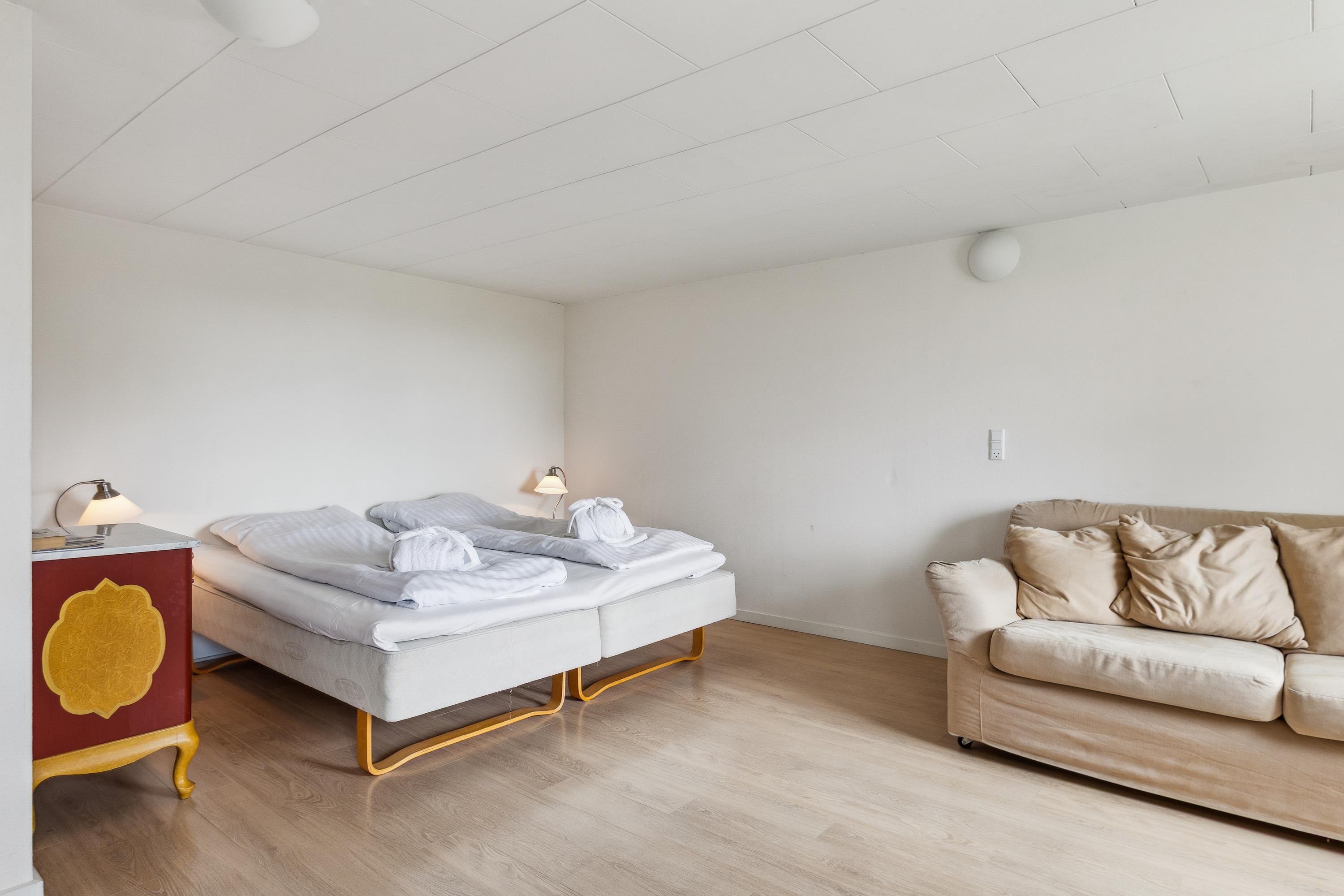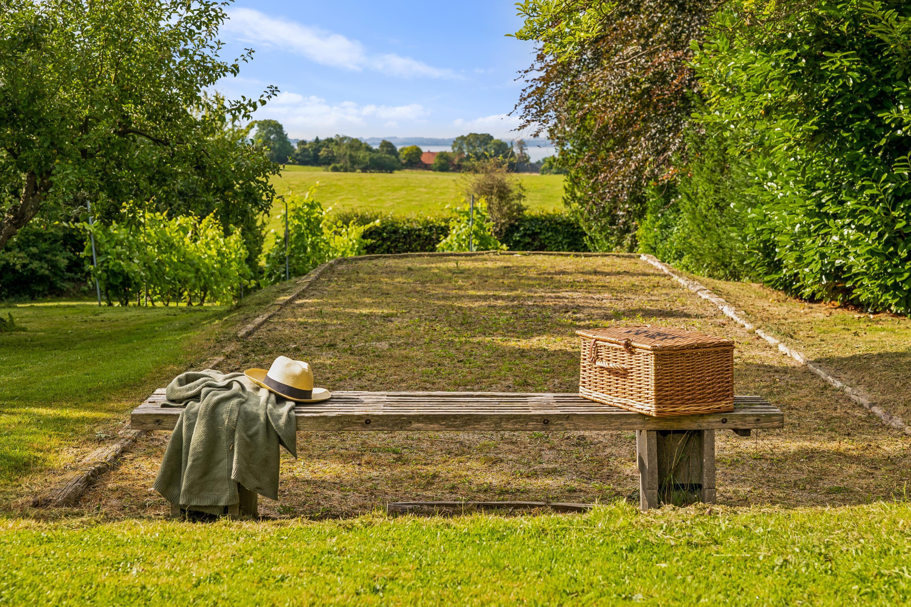 Das Hauptgebäude bietet Platz für 26 Personen und verfügt über eine schöne, große Terrasse mit Blick auf Kaløvig. Außerdem gibt es eine Boulebahn, Schaukeln, ein Spielhaus und einen Sandkasten sowie Zugang zu einem Fußballplatz und einem Obstgarten – es ist also immer etwas los, egal ob für Erwachsene oder Kinder.