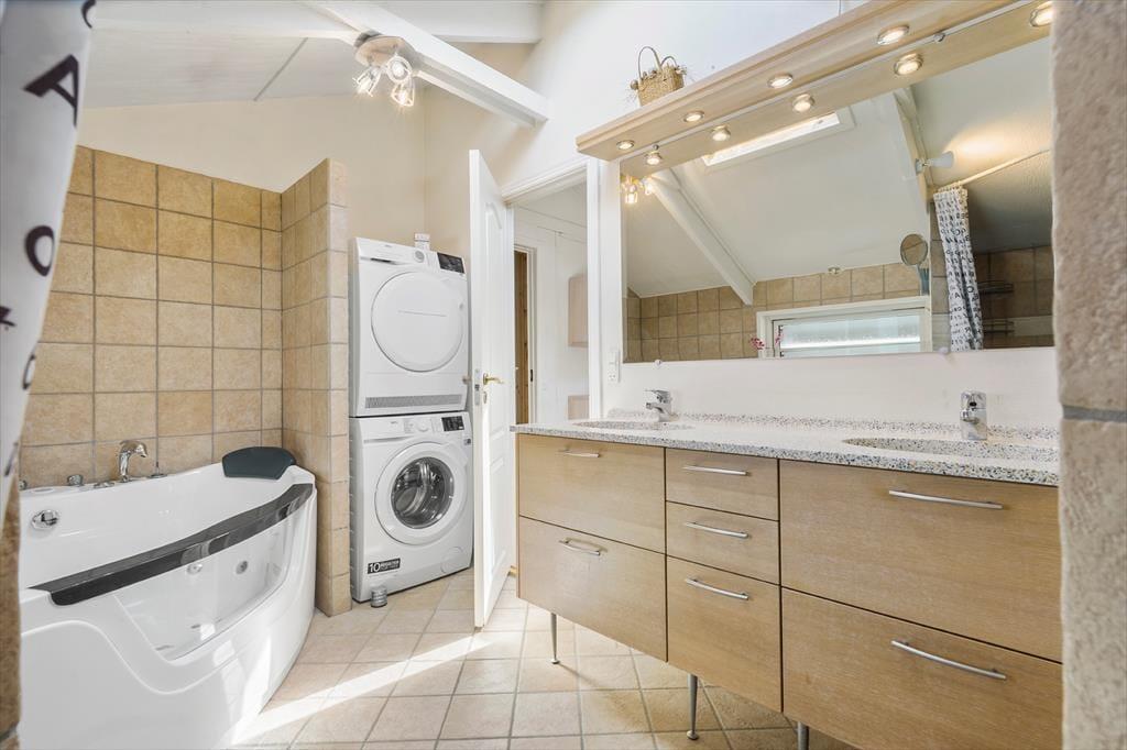 Dass der Eigentümer dieses hellen, modernen Ferienhauses viel Wert auf Komfort und Wohlbefinden legt, wird unmittelbar nach dem ersten Betreten ersichtlich. Herzstück deines Urlaubsdomizils ist der gemütliche Wohnraum, der offen mit der gut ausgestatteten Küche verbunden ist. In diesem Raum genießt du mit deiner Familie oder deinen Freunden viele gemütliche Stunden bei der Zubereitung eurer täglichen Mahlzeiten und bei geselligen Spieleabenden. Das Badezimmer überzeugt mit einem tollen Whirlpool, der dir nach langen Tagen pure Erholung und Entspannung mit einem Hauch von Wellnessflair verspricht. Zu den weiteren Annehmlichkeiten zählen die bequemen Polstermöbel, der gute Essplatz mit Platz für alle, der Geschirrspüler und die Wärmepumpe, die das gesamte Jahr hindurch behagliche Temperaturen verspricht.