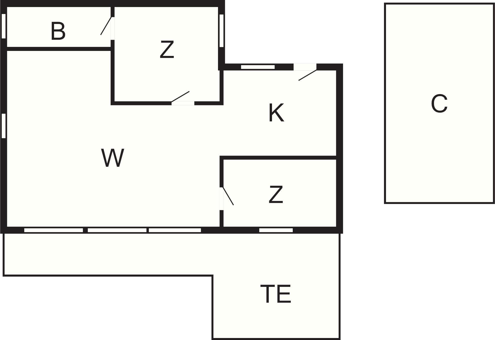 Das Haus verfügt über eine offene Küche, die mit dem Wohnzimmer verbunden ist. Der Kaminofen sorgt für eine gemütliche Atmosphäre. Der Fernseher bietet zwar keine Sender, ist aber mit Chromecast ausgestattet, sodass Sie Ihre eigenen Unterhaltungsinhalte streamen können. Das Schlafzimmer verfügt über ein 120 cm breites Doppelbett. Zusätzliche Schlafplätze bieten das Doppelschlafsofa im Wohnzimmer und ein Etagenbett im Flur. Das Badezimmer ist mit einer Dusche ausgestattet und bietet alles, was Sie für Ihren Urlaub brauchen.