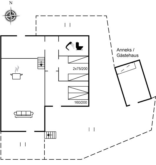 Ein besonders gut gelegenes, schönes und gepflegtes Ferienhaus - nur ca. 50 m vom Wasser und dem herrlichen Badestrand entfernt. Sie können die herrliche Aussicht sowohl von der schönen Terrasse aus als auch vom Inneren des Hauses aus genießen. Übrigens: Zum Haus gehört ein Gästehaus, das mit 1 der insgesamt 5 Schlafplätze eingerichtet ist.