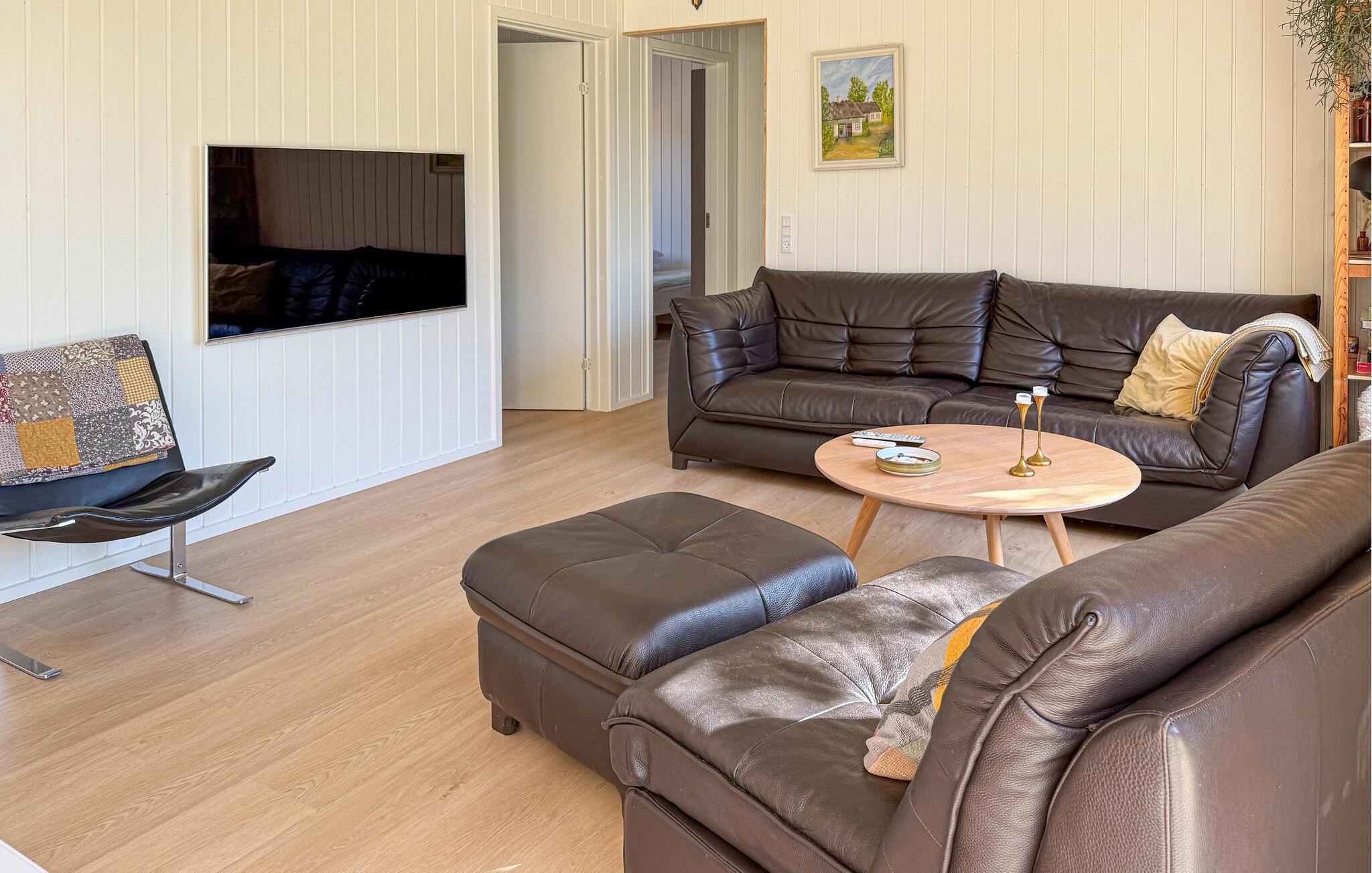 Dieses einladende Haus verspricht Ihnen einen erholsamen Urlaub der Extraklasse. Viel warmes Licht durchflutet die Innenräume, eine große Sofalandschaft lädt zu entspannten Stunden bei einer Tasse Kaffee ein und in der modernen Küche lassen sich leckere Mahlzeiten zubereiten. Tanken Sie hier neue Energie und genießen Sie Komfort und Erholung auf hohem Niveau.