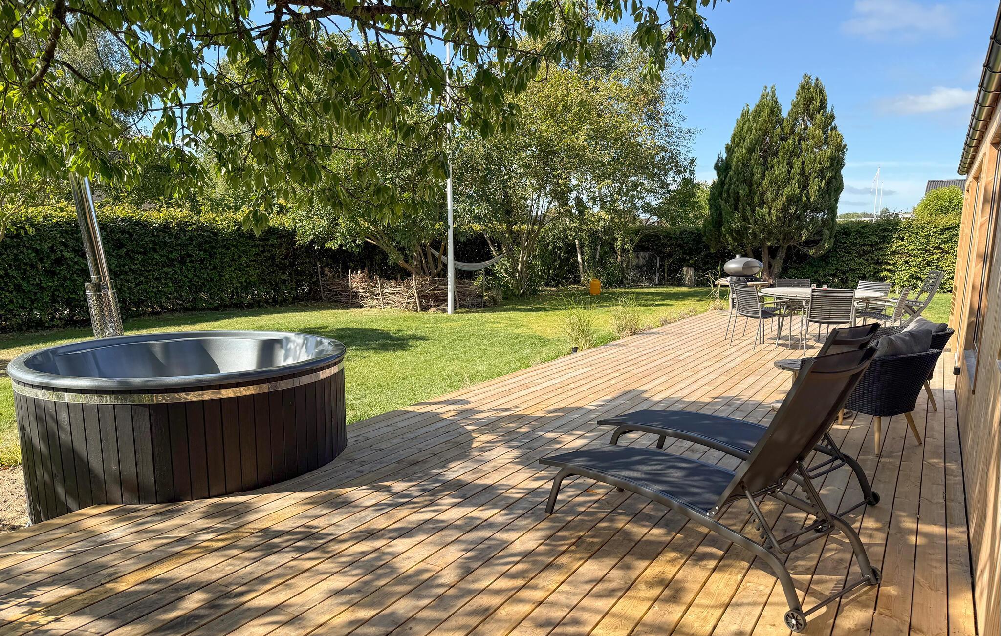 Komfortables Ferienhaus in Strandnähe mit finnischem Holzbad und großem Garten für erholsame Urlaubstage.