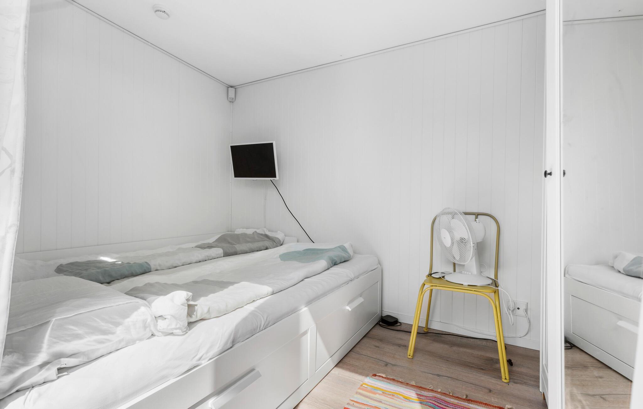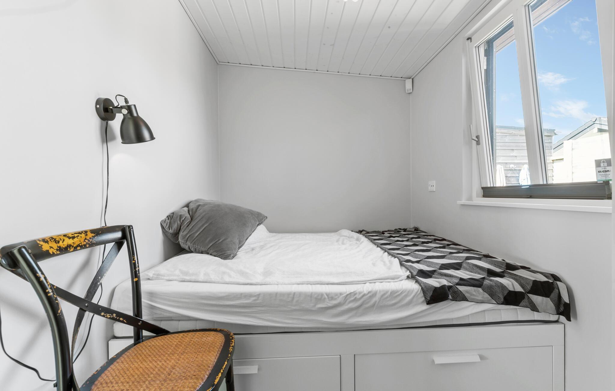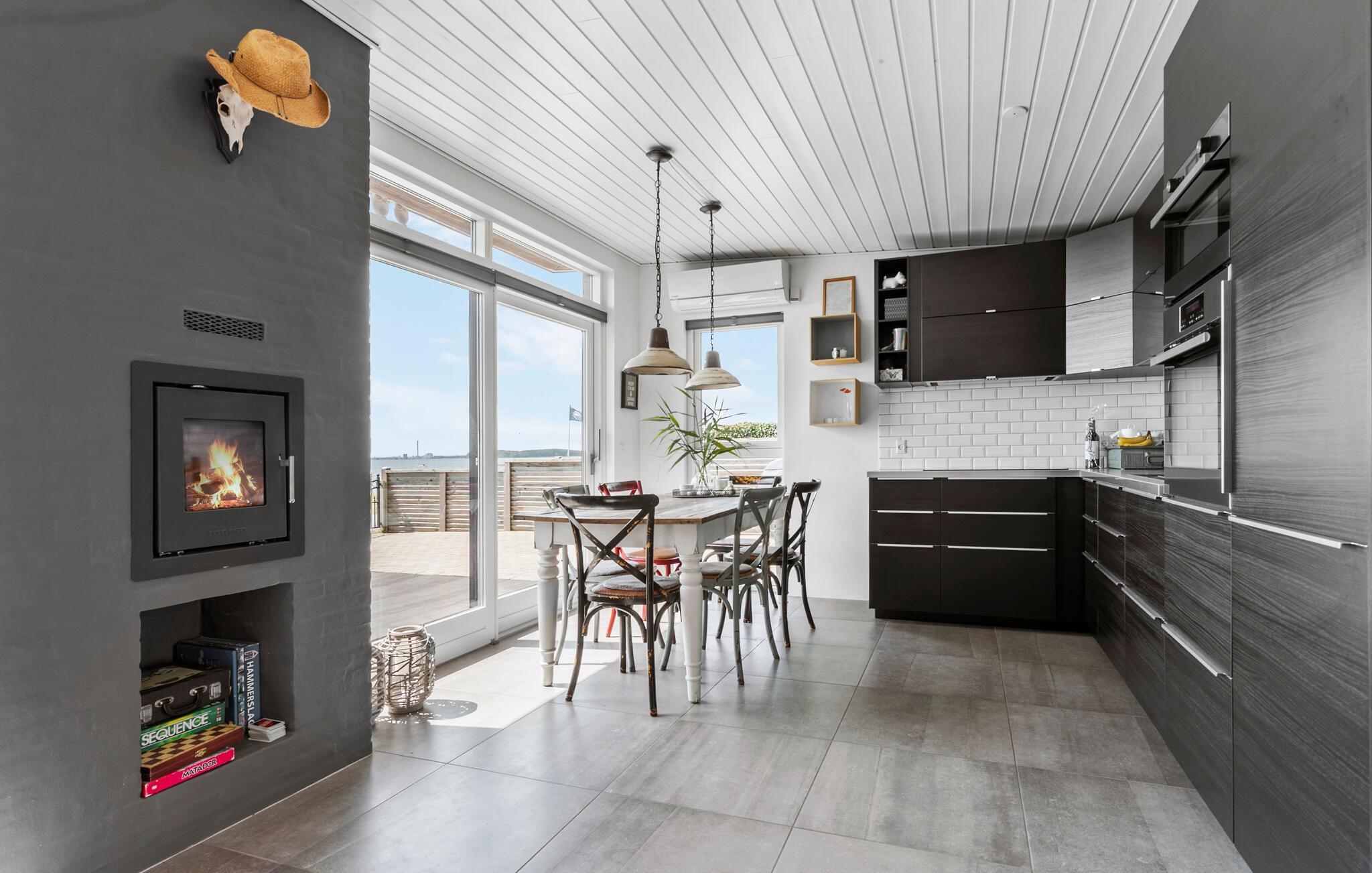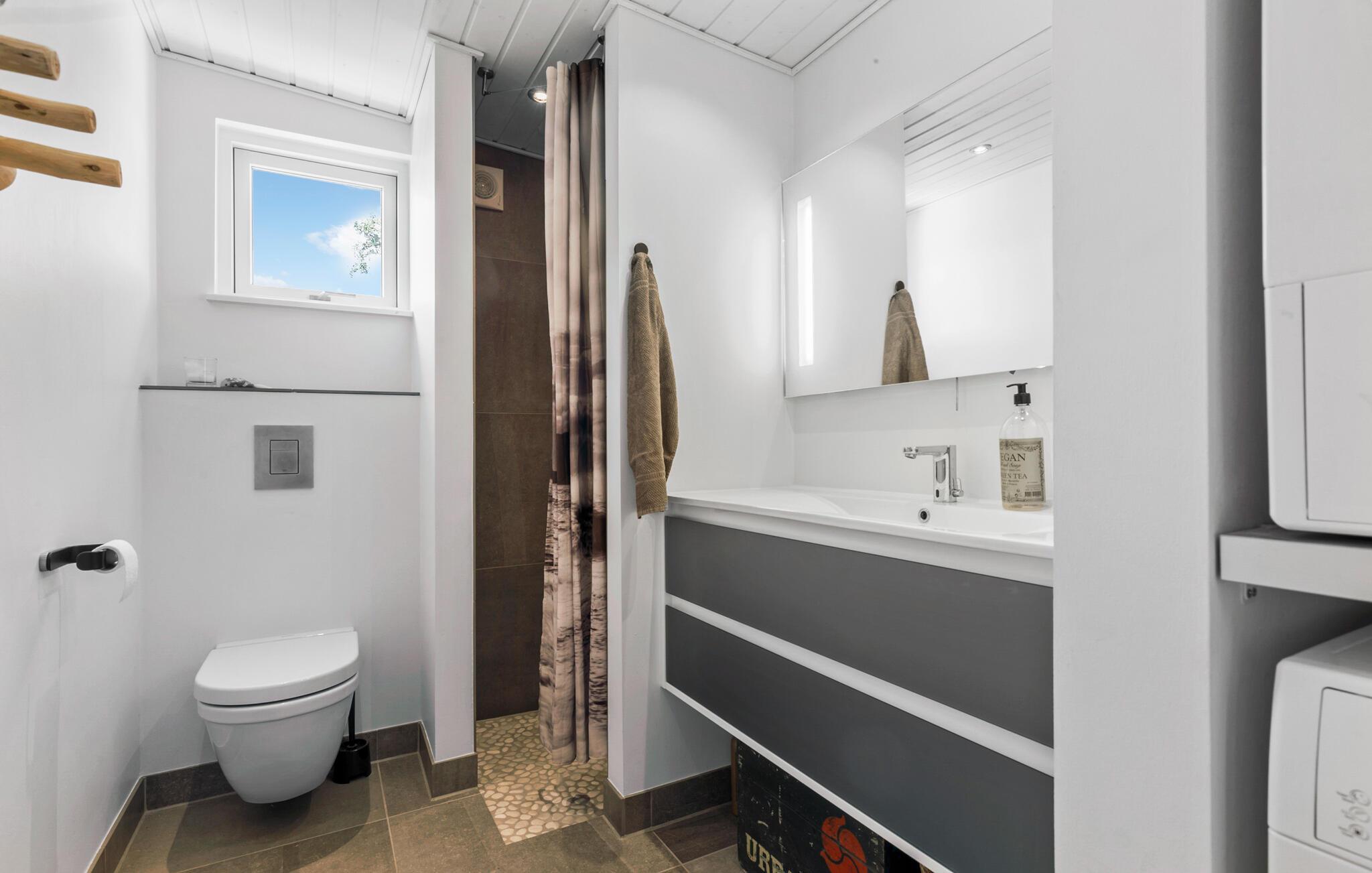 Nur wenige Schritte vom schönen Følle Strand entfernt, erwartet Sie dieses einladende Ferienhaus zu einem entspannten Urlaub. Die hellen Räume schaffen eine freundliche und erholsame Atmosphäre, in der Sie sich sofort wohlfühlen werden. Starten Sie den Tag mit einem reichhaltigen Frühstück, das Sie in der modernen Küche zubereiten können, während an kühleren Tagen im Hintergrund der Kaminofen knistert. Der gemütliche Wohnbereich bietet Ihnen ein bequemes Sofa, auf dem Sie sich zurückzulehnen und die wundervolle Aussicht auf das Meer genießen können.
