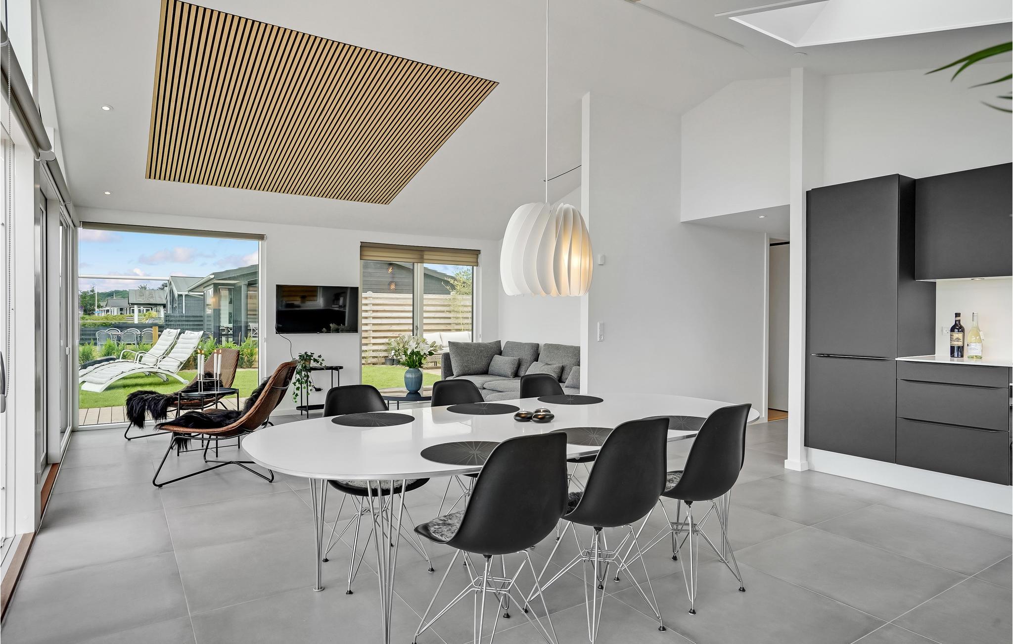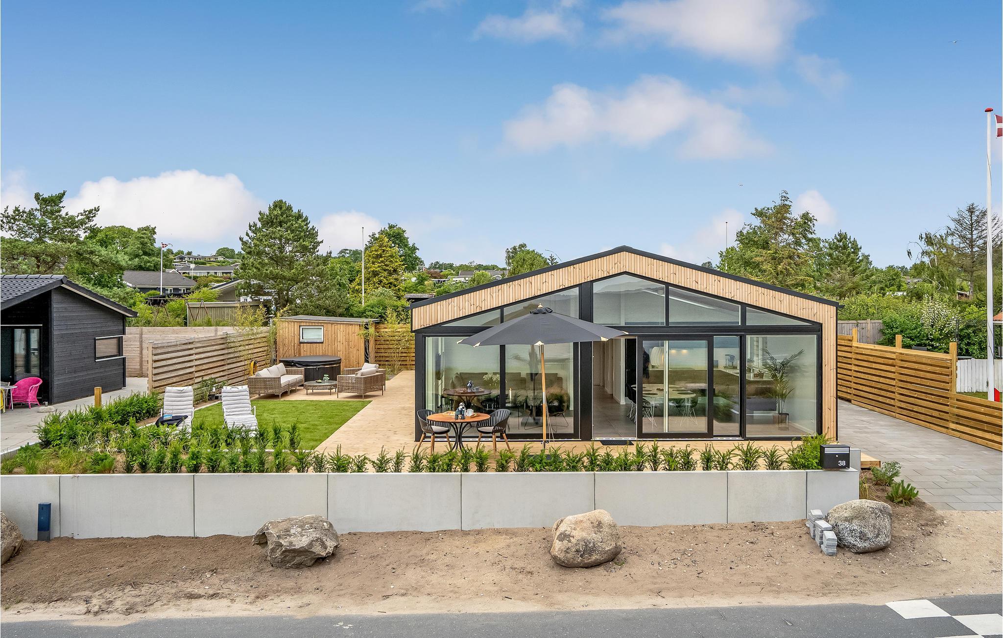 Am ruhigen Gewässer der Bucht von Aarhus finden Sie dieses herrliche Holzhaus. Es ist hochwertig eingerichtet und bietet im ganzen Haus ein stilvolles, gut ausgestattetes Interieur. Dieses moderne Ferienhaus wird selbst den Wünschen der anspruchsvollen Gästen entsprechen. Die Fensterfront sorgt dafür, dass Sie den Meerblick den ganzen Tag durch genießen können, ob beim Morgenkaffee oder beim Abendessen.
