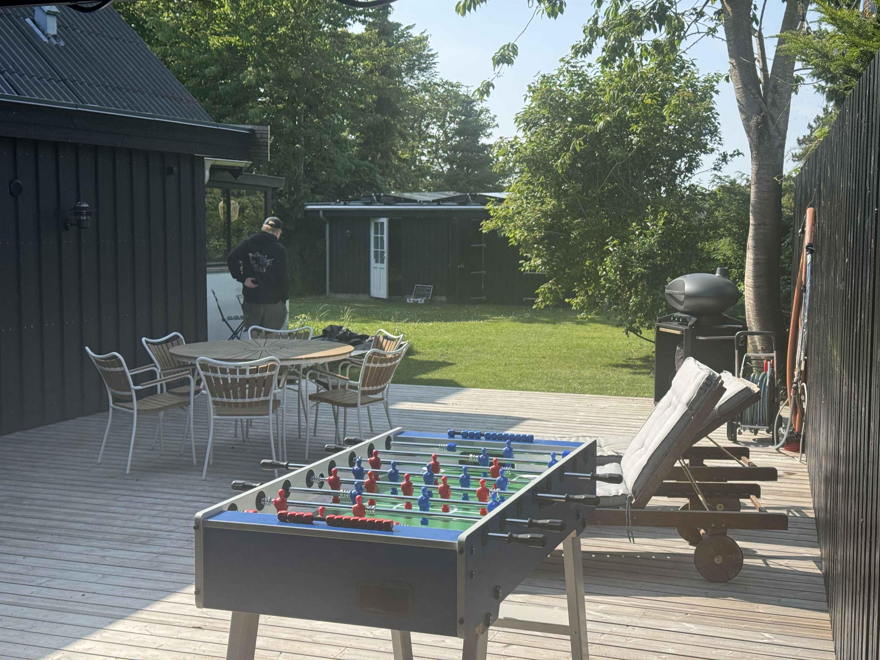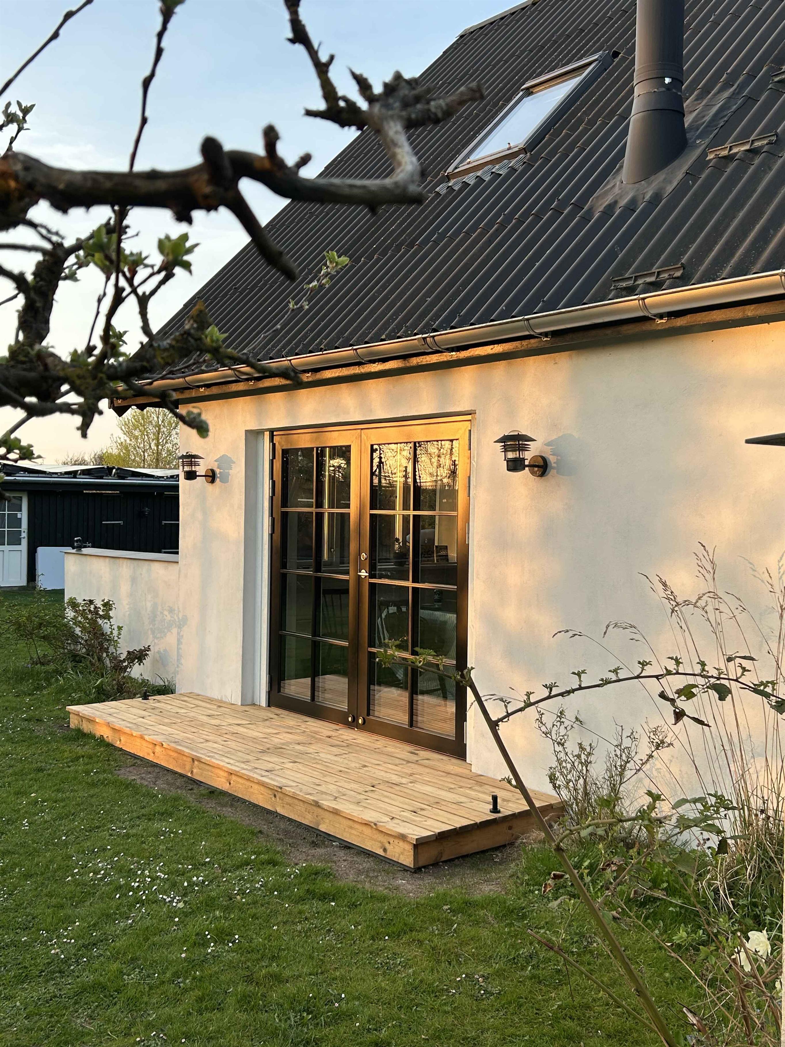 Dieses moderne Ferienhaus mit 106 m² bietet Platz für acht Personen in drei Schlafzimmern und einem Schlafboden. Die Lage nahe der Küste macht es ideal für Familien und Gruppen, die Strandurlaub, gemeinsame Aktivitäten und Entspannung verbinden möchten. Innen ist das Haus für ganzjährige Aufenthalte eingerichtet. Wärmepumpe und Kaminofen sorgen für angenehme Temperaturen, während Internet sowohl Arbeit als auch Streaming ermöglicht. Im Obergeschoss befindet sich ein gemütliches TV-Zimmer mit Balkon und Meerblick. Der große Garten lädt mit Trampolin, Feuerstelle und viel Platz zum Spielen zum Draußensein ein. Mehrere Terrassen bieten sowohl Sonne als auch Schatten im Tagesverlauf. Direkt an die Küche angeschlossen ist eine große Außenküche mit Spüle, Backofen und Kochplatten, perfekt für gemeinsames Kochen im Freien. Wenn das Wetter zu Indoor-Aktivitäten einlädt, stehen Tischfußball und Tischtennis zur Verfügung, was das Haus ideal für aktives Beisammensein macht. Es gibt Raum für Gemeinschaft, aber auch für Rückzug. Nur 150 Meter vom Strand entfernt können Sie den Tag mit einem Bad oder einem ruhigen Spaziergang beginnen. Vom Haus aus genießen Sie Meerblick, sodass die Natur immer Teil des Aufenthalts ist. Die Umgebung bietet breite Sandstrände, die sich sowohl zum Schwimmen als auch für lange Spaziergänge eignen. Die Küste ist bekannt für ihre ruhige Atmosphäre, und die umliegenden Wege laden zu Rad- und Wandertouren ein. In der Nähe finden Sie kleine Hafenstädtchen mit Restaurants, Eisdielen und lokalem Leben. Kulturelle und landschaftliche Sehenswürdigkeiten sind schnell erreichbar, sodass sich Strandtage gut mit Ausflügen kombinieren lassen. Hier spürt man schnell die besondere Atmosphäre, in der Natur, Meer und die Nähe zu Dörfern gemeinsam einen Urlaubsrahmen schaffen, der Kinder wie Erwachsene begeistert. Das Ferienhaus vereint Komfort, Platz und eine attraktive Lage nahe dem Meer. Es ist die ideale Basis, in der Familien und Freunde das ganze Jahr über gemeinsam Urlaub genießen können.