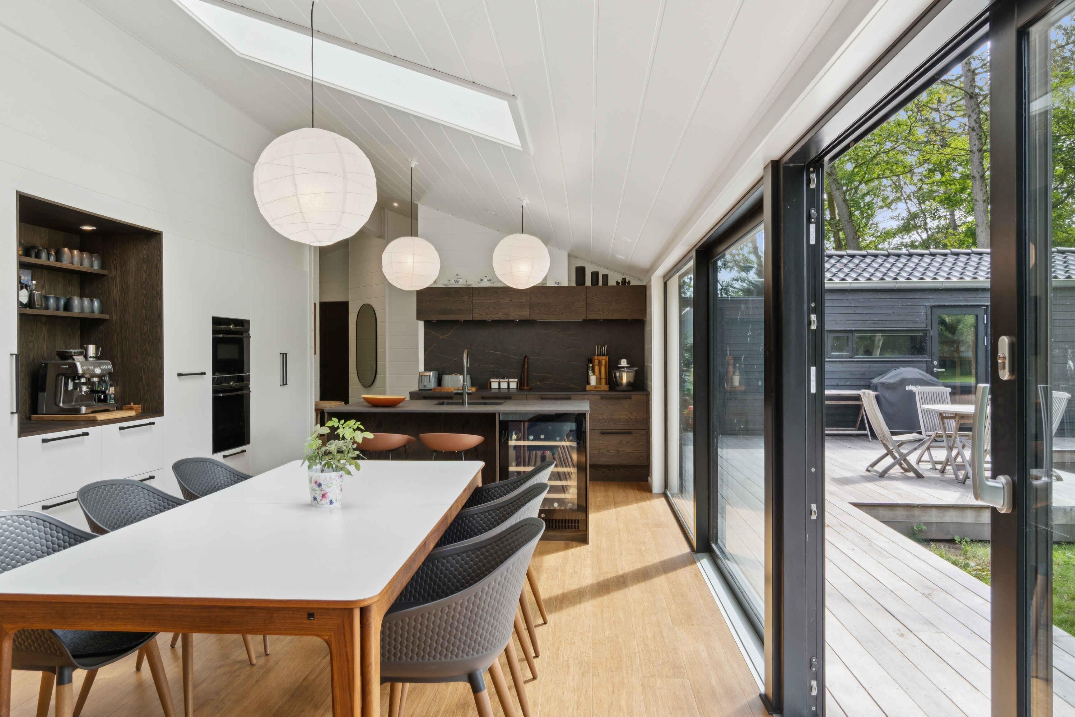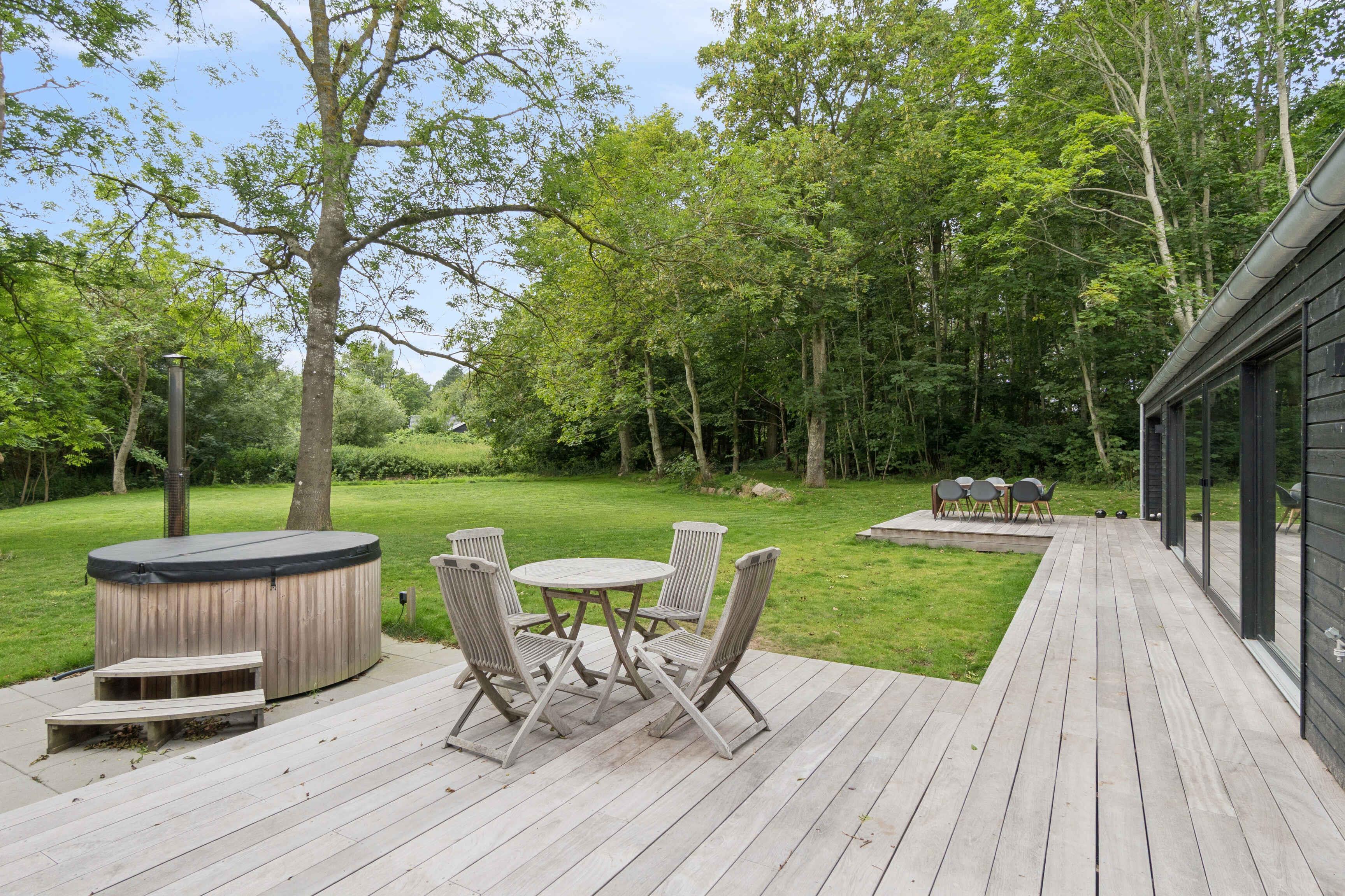 Modernes Ferienhaus mit Sauna, Whirlpool und großem Garten nahe Strand und Wald in Fårevejle, ideal für Familien und Gruppen.
