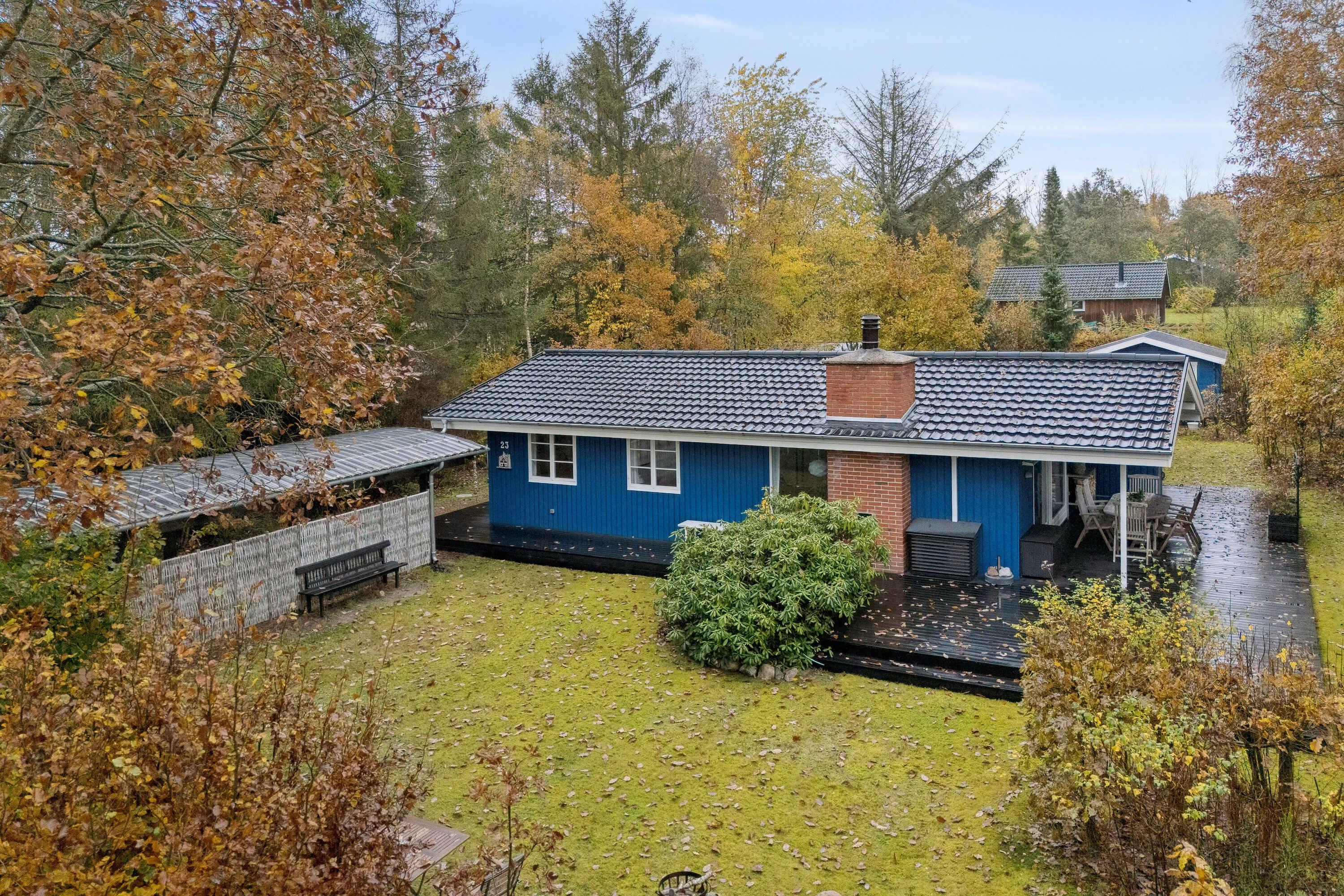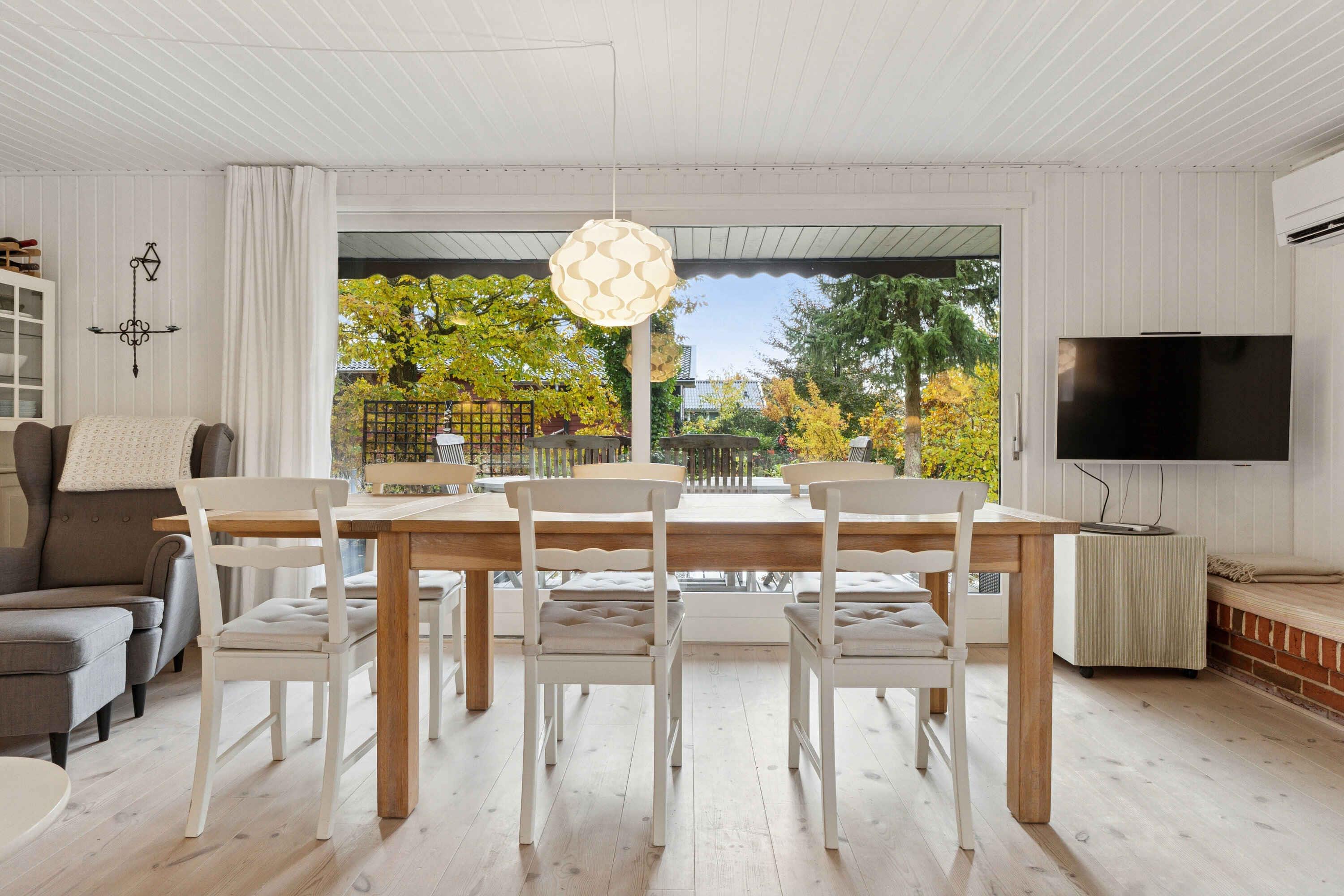 Dieses gut geschnittene Ferienhaus mit 74 m² ist auf Entspannung und gemeinsames Beisammensein ausgelegt. Es bietet Platz für bis zu sechs Personen in vier Schlafzimmern, sodass Familie und Freunde komfortabel zusammenkommen können. Im Inneren erwarten Sie helle Räume mit großen Fenstern, die die Natur direkt in den Wohnbereich holen. Küche und Wohnzimmer sind offen gestaltet und ermöglichen ein gemeinsames Miteinander – ob beim Kochen, Spielen oder Entspannen auf dem Sofa. Der Grundriss ist schlicht und funktional. Das Haus ist ganzjährig nutzbar und wird effizient mit einer Wärmepumpe beheizt. Eingangsbereich und Badezimmer sind praktisch eingerichtet, und jeder Quadratmeter ist durchdacht genutzt. Ein zusätzliches Nebengebäude und ein Carport bieten flexible Nutzungsmöglichkeiten und zusätzlichen Stauraum. Draußen befindet sich ein großes, gepflegtes Grundstück, umgeben von hohen Bäumen. Die Terrasse verläuft rund um das Haus und bietet zu jeder Tageszeit Sonne oder Schatten. Hier genießen Sie Ruhe, Privatsphäre und ideale Bedingungen für Mahlzeiten und Entspannung im Freien. Die Umgebung zeichnet sich durch ihre schöne Natur und eine ganz besondere Atmosphäre aus. Die Gudenå schlängelt sich durch die Landschaft und ist nur einen kurzen Spaziergang entfernt. Kanufahren, Angeln oder ein erfrischendes Bad sowie zahlreiche Wander- und Radwege machen den Aufenthalt abwechslungsreich. Gleichzeitig ist alles in der Nähe, was den Urlaub bequem macht. Einkaufsmöglichkeiten befinden sich im nahen Umfeld, und Golfplätze, Gasthöfe und ein Freizeitbad sind schnell erreichbar. Die zentrale Lage in Mitteljütland eignet sich hervorragend für Ausflüge zu größeren Städten und Sehenswürdigkeiten. Achtung: Wird nicht für gewerbliche Nutzung vermietet.