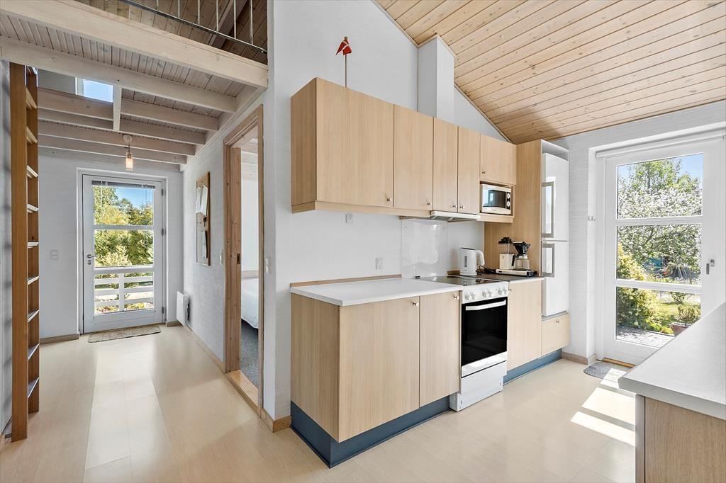 Erstklassiges Ferienhaus im ruhigen Ferienhausgebiet auf der attraktiven Seite des Strandweg nur 300 M. vom Strand und 10 Min. zum Fuss vom Wald entfernt gelegen. Im haus befindet sich: Groβe Wohn-/Esszimmer mit SAT-TV und Kaminofen. Offene Küche mit E-Herd, Mikrowelle, Spülmaschine und Kühlschrank mit Gefrierfach. Badezimmer mit Dusche. Waschküche mit Waschmaschine. 2 Schlafzimmer: 1 Doppelbett, 1 Doppelbett. Alkoven mit 2 Einzelbett. Schlafboden mit 2 Matratzen. Ausserdem groβe Terrasse und Grill.