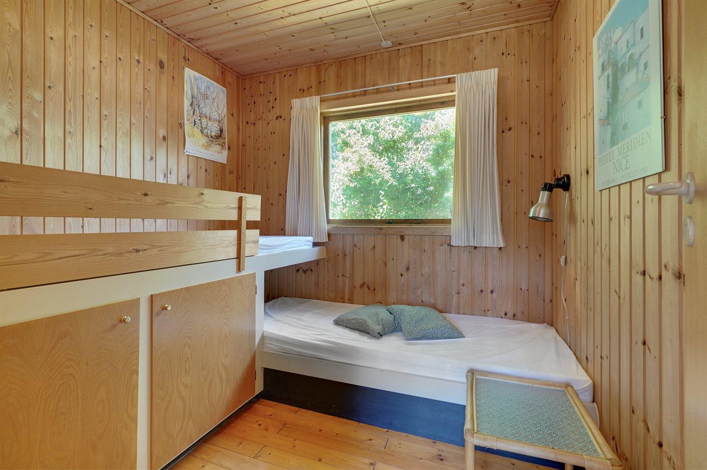 Die Schlafplätze verteilen sich auf 2 Schlafräume. 2 Schlafplätze in einem Doppelbett. 2 Schlafplätze in einem Etagenbett.