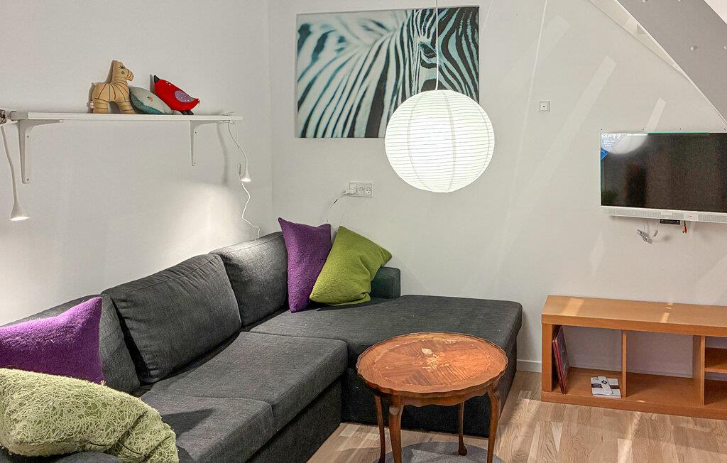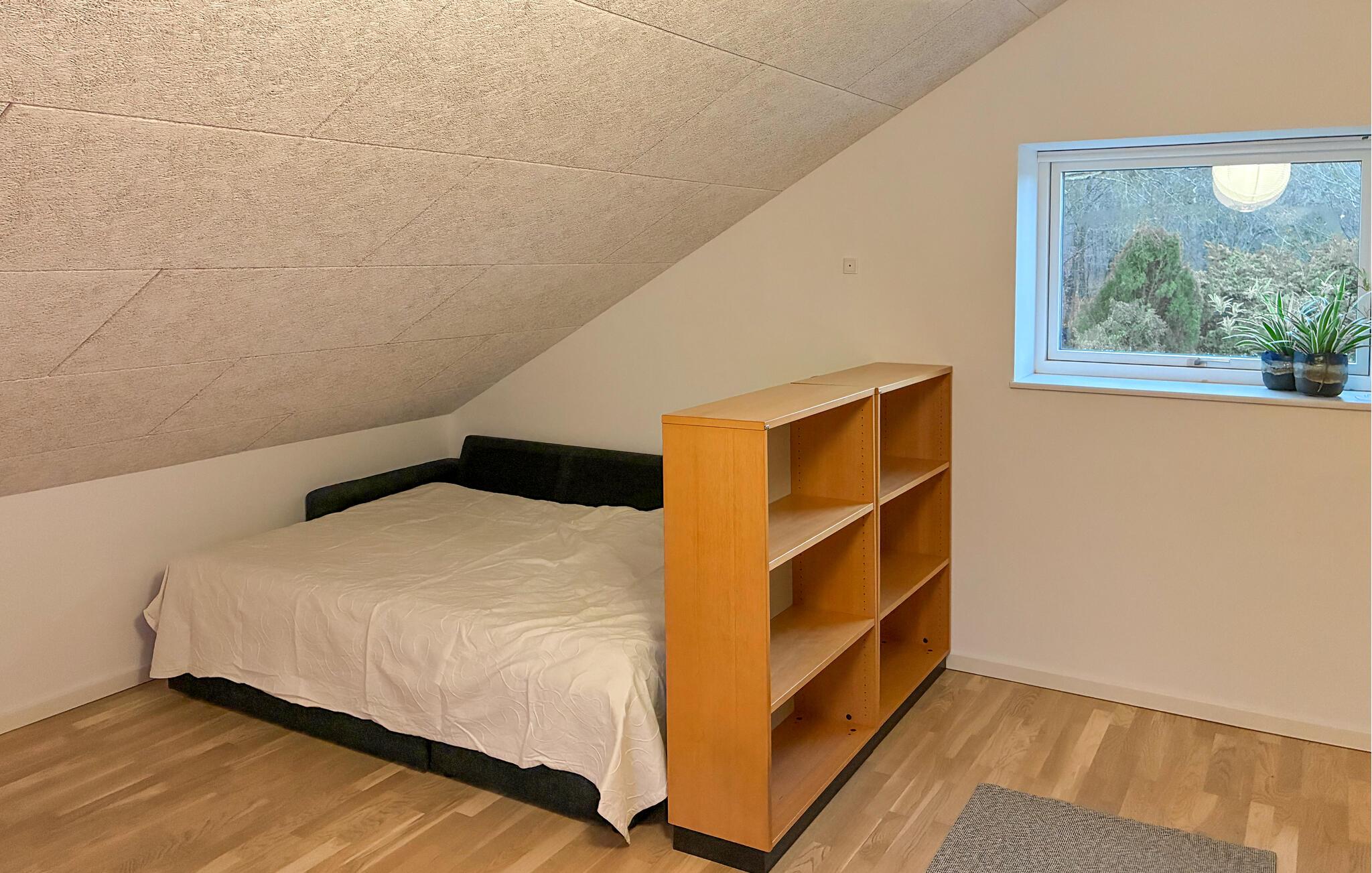 Nehmen Sie am schönen Holzesstisch Platz und planen Sie hier gemeinsame Mahlzeiten oder Spieleabende. Der Wohnbereich bietet ein gemütliches Sofa mit Platz zum Lesen oder Fernsehen. Nutzen Sie die praktische Küche für die Zubereitung Ihrer Lieblingsgerichte. Genießen Sie auch die ruhige Stimmung unter dem Dach, ergänzt durch kleine Arbeits- oder Leseecken für entspannte Stunden.