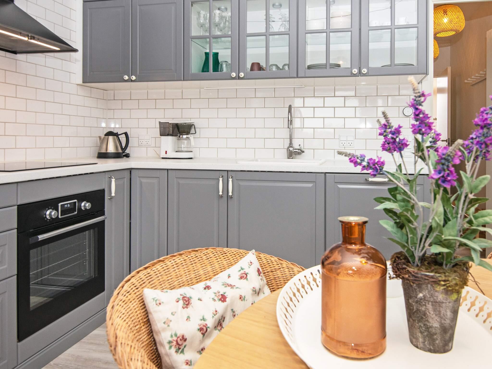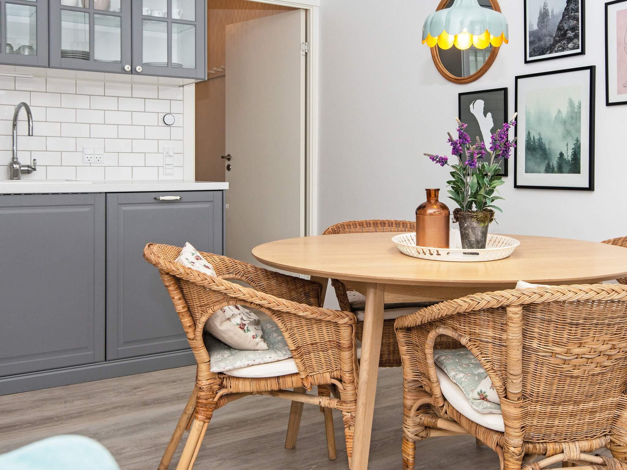 Ferienwohnung im Fanø Bad, gelegen im Erdgeschoss und dennoch mit Ausblick zur Nordsee. Die 2021 komplett renovierte Wohnung hat einen offenen Küchen-/Wohnbereich mit doppelter Schlafcouch, ein Schlafzimmer mit zwei Einzelbetten, ein Badezimmer mit angenehmer Fußbodenheizung und einen Balkon mit Meerblick.