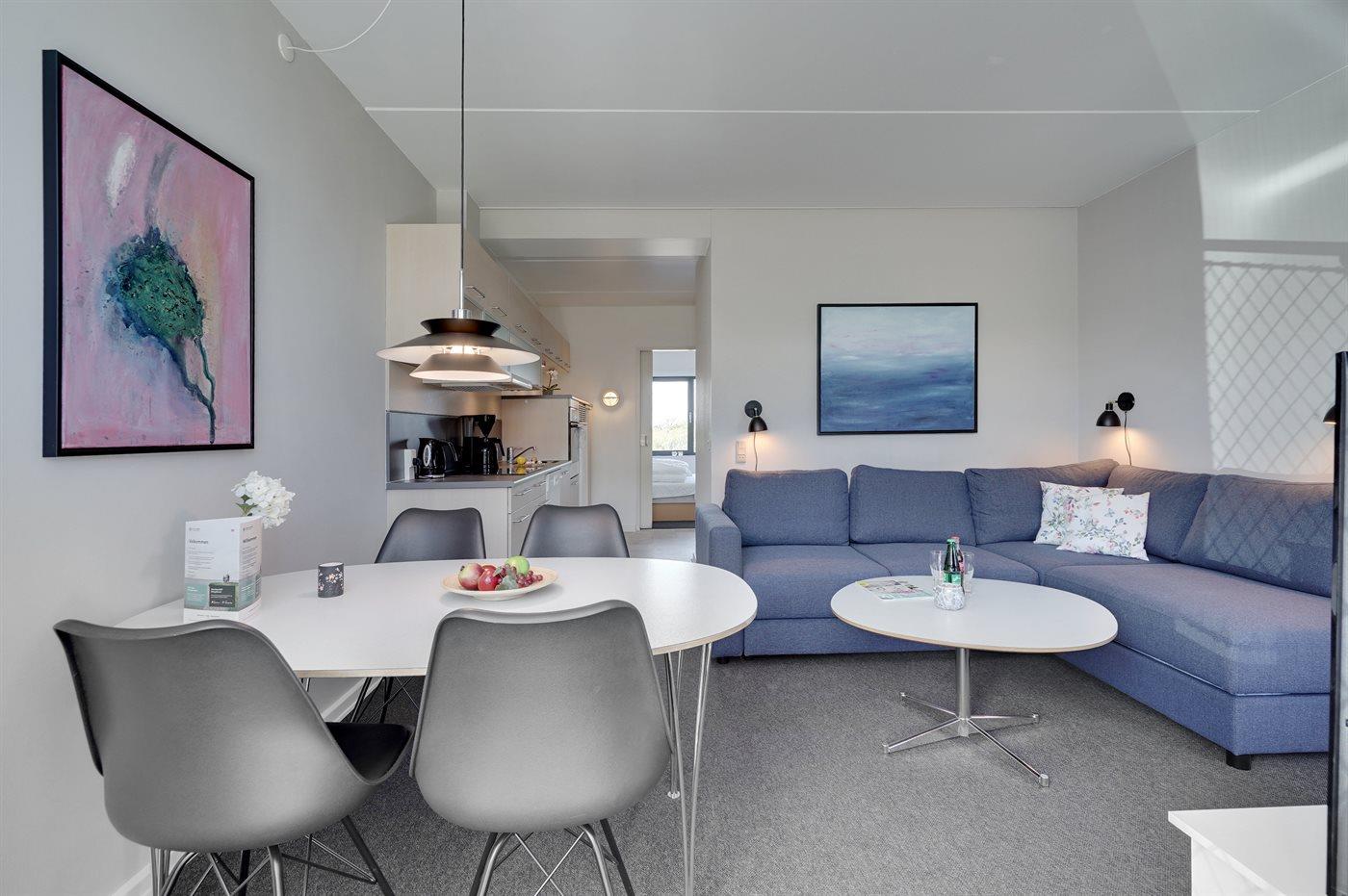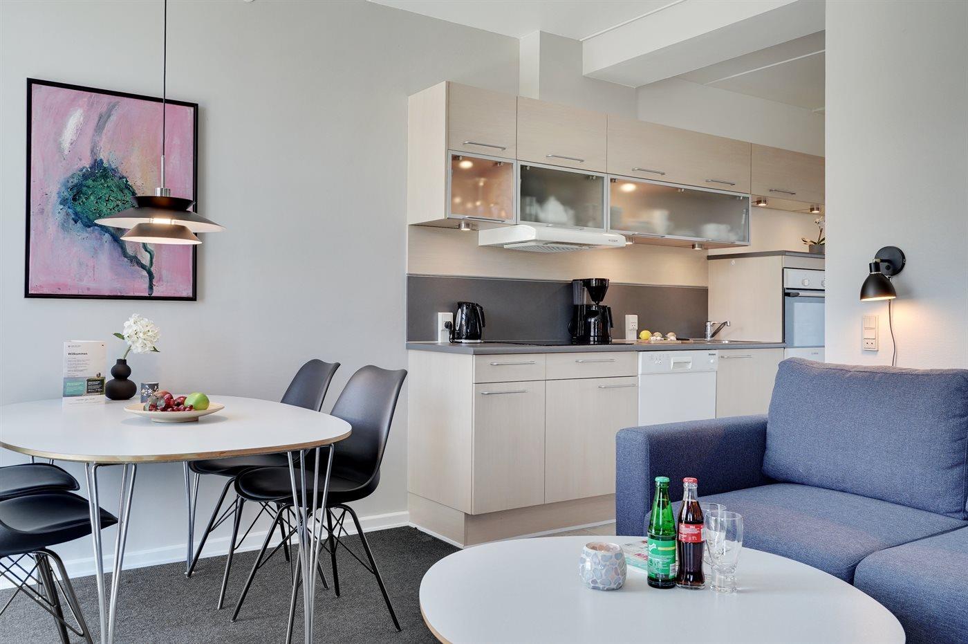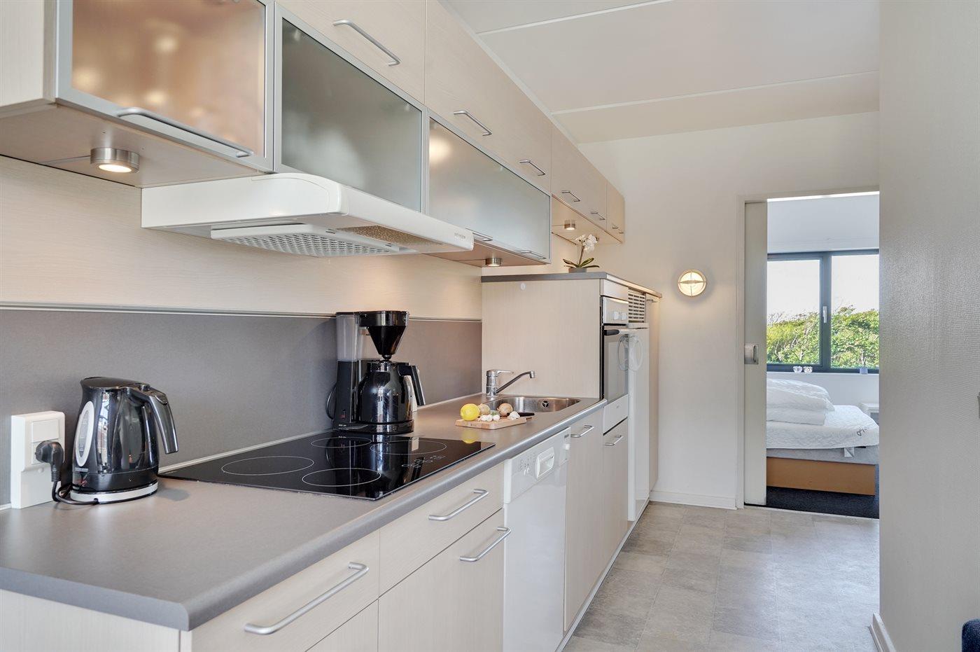 Hier wohnen Sie nur einen Katzensprung von einem der feinsten Sandstrände Dänemarks entfernt. Diese hell eingerichtete Ferienwohnung liegt im Ergeschoss, mit eingeschränkter Aussicht auf die Golfanlage und die herrliche Natur in Richtung Norden, in einer Ferienanlage mit mehreren individuell eingerichteten Wohnungen. Im Wohnzimmer befinden sich die 2 Schlafplätze auf einem Schlafcouch mit Taschenfederkern. Im Schlafzimmer ist das Bett mit einer Wellpur-Memory-Top-Matratze ausgestattet und an allen Fenstern gibt es Verdunklungsvorhänge, damit Sie in den hellen Nächten gut schlafen können. Großer Fernseher mit Chromecast.