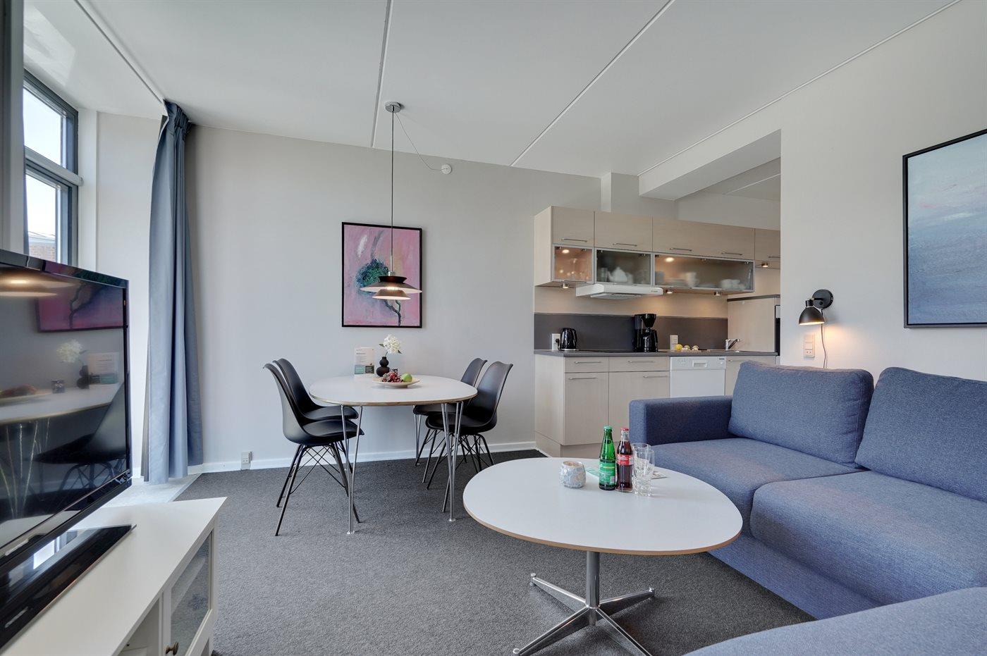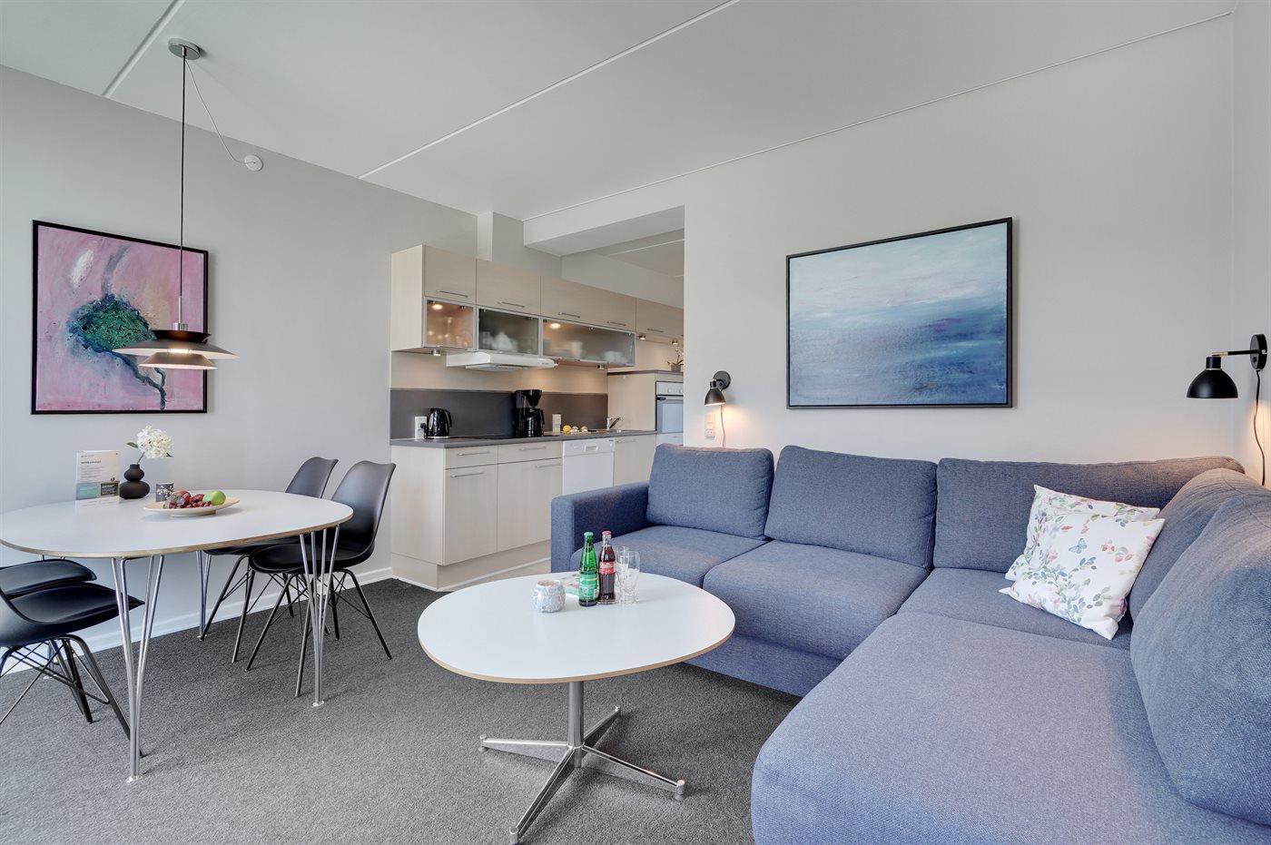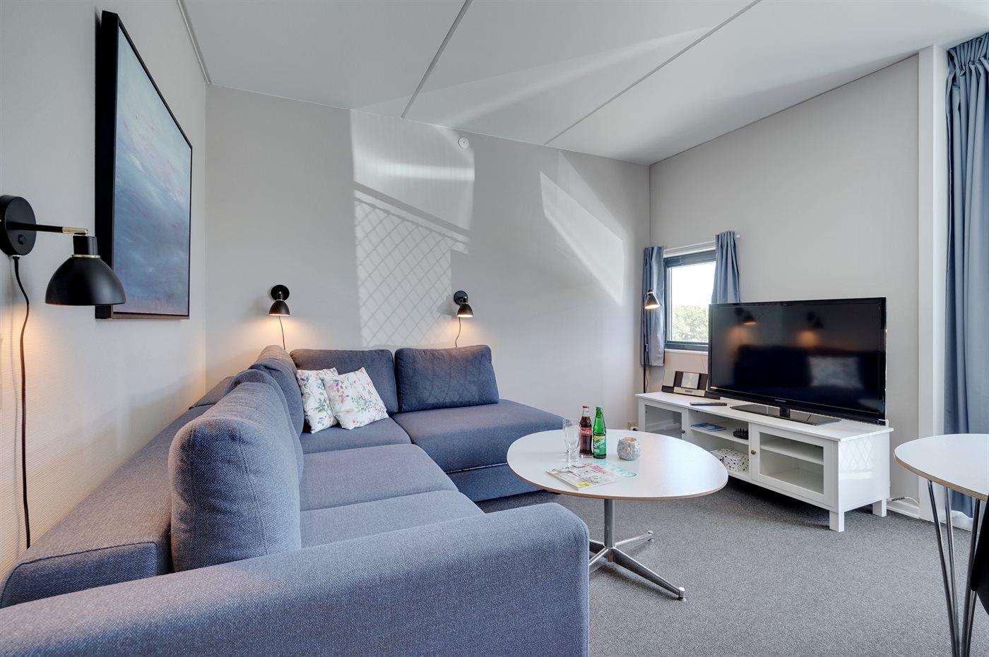Hier wohnen Sie nur einen Katzensprung von einem der feinsten Sandstrände Dänemarks entfernt. Diese hell eingerichtete Ferienwohnung liegt im Ergeschoss, mit eingeschränkter Aussicht auf die Golfanlage und die herrliche Natur in Richtung Norden, in einer Ferienanlage mit mehreren individuell eingerichteten Wohnungen. Im Wohnzimmer befinden sich die 2 Schlafplätze auf einem Schlafcouch mit Taschenfederkern. Im Schlafzimmer ist das Bett mit einer Wellpur-Memory-Top-Matratze ausgestattet und an allen Fenstern gibt es Verdunklungsvorhänge, damit Sie in den hellen Nächten gut schlafen können. Großer Fernseher mit Chromecast.