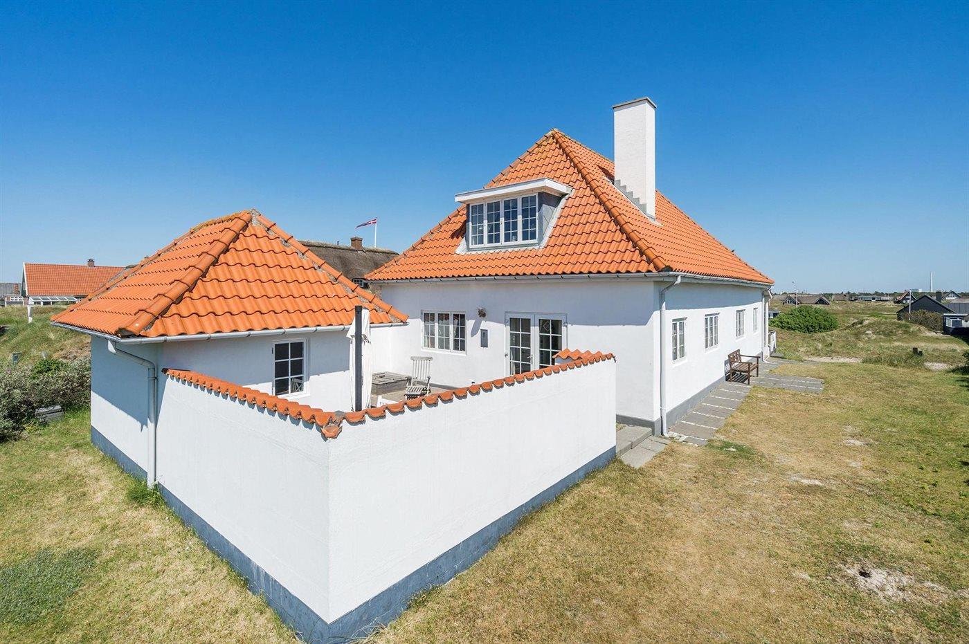 Ein einzigartiges Ferienhaus der Sonderklasse! Dicht am Strand und mit Panoramaaussicht auf sowohl die Nordsee als auch auf die Golfanlage liegt dieses herrliche Ferienhaus. Das Haus ist u. a. mit einer schönen Küche, einem Esszimmer mit direktem Zugang zur geschlossenen Terrasse und einer gemütlichen Sitzecke mit Kamin eingerichtet sowie mit einem Obergeschoss, das ein geräumiges Wohnzimmer und einen Kaminofen für die kühlen Abende enthält. Ein besonders schönes Ferienhaus mit einer herrlichen Lage.