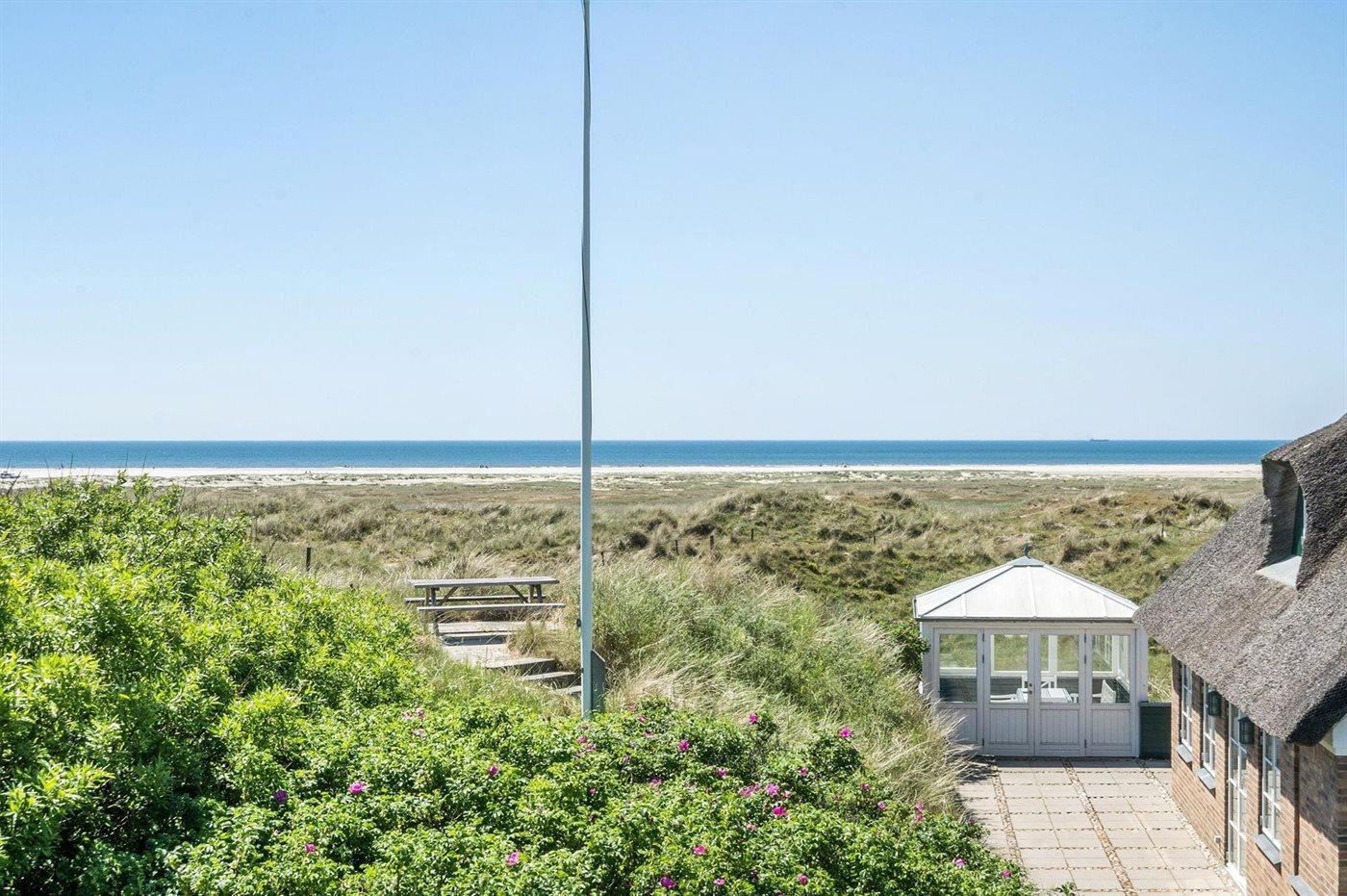 Die Ferienunterkunft liegt auf einem 1700 m² großen Dünengrundstück. Die Entfernung zum Meer beträgt 150 m. Die nächste Einkaufsmöglichkeit liegt 1500 m entfernt. Es steht ein 62 m² Terrassenareal zur Verfügung. Davon insgesamt 40 m² geschlossene Terrasse. Parkplatz auf dem Grundstück.