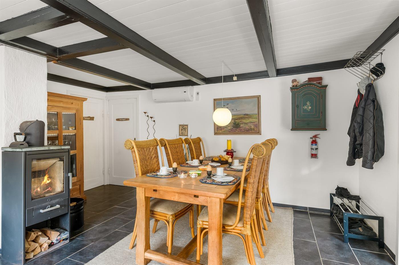 Das Ferienhaus eignet sich für 6 Personen. Die Ferienunterkunft hat eine Wohnfläche von 124 m², ist 2-stöckig, und wurde 1927 gebaut. 2014 wurde die Ferienunterkunft renoviert. Es ist erlaubt 2 Haustiere mitzubringen. Die Ferienunterkunft ist mit energiefreundlicher Luft-Luft- Wärmepumpe ausgestattet. Fußbodenheizung in allen Klinkerböden. Die Ferienunterkunft ist mit Waschmaschine ausgestattet. Tiefkühlmöglichkeit mit 120 Liter Nutzinhalt. Es gibt außerdem einen Kaminofen.