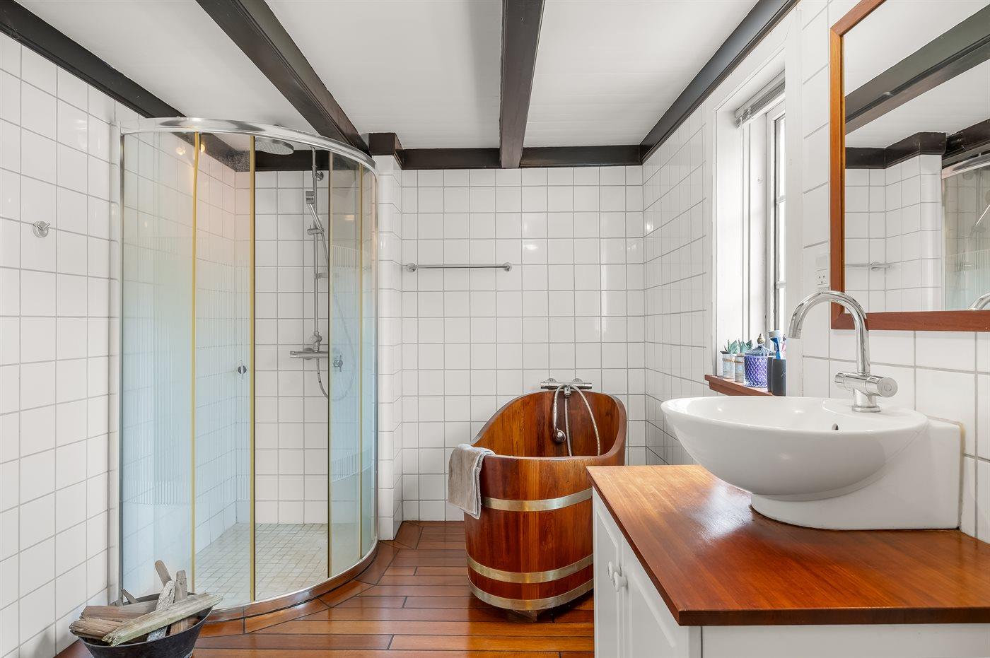 Es gibt 1 Badezimmer mit Duschnische sowie Badewanne und 1 Badezimmer mit Duschnische.