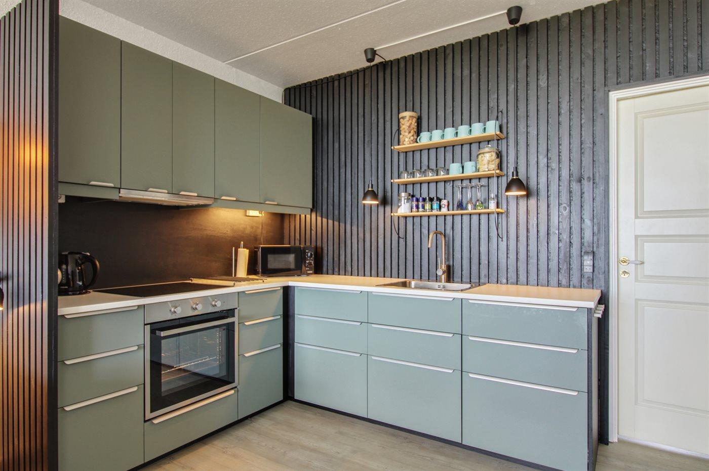 Die Küche ist mit Kühlschrank ausgestattet. Außerdem gibt es 4 Keramik-Kochfelder, Umluftofen, Mikrowelle sowie Geschirrspüler.