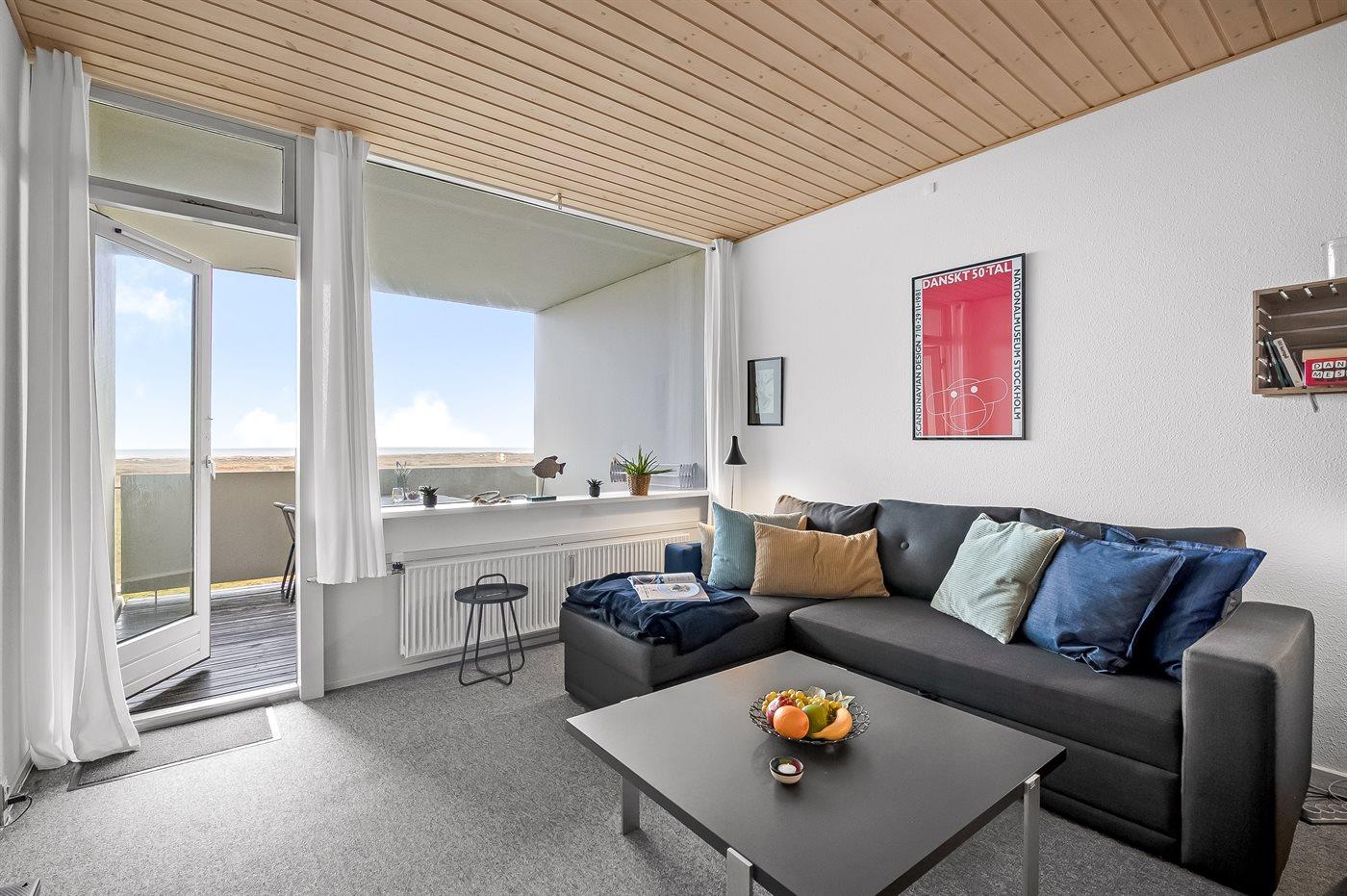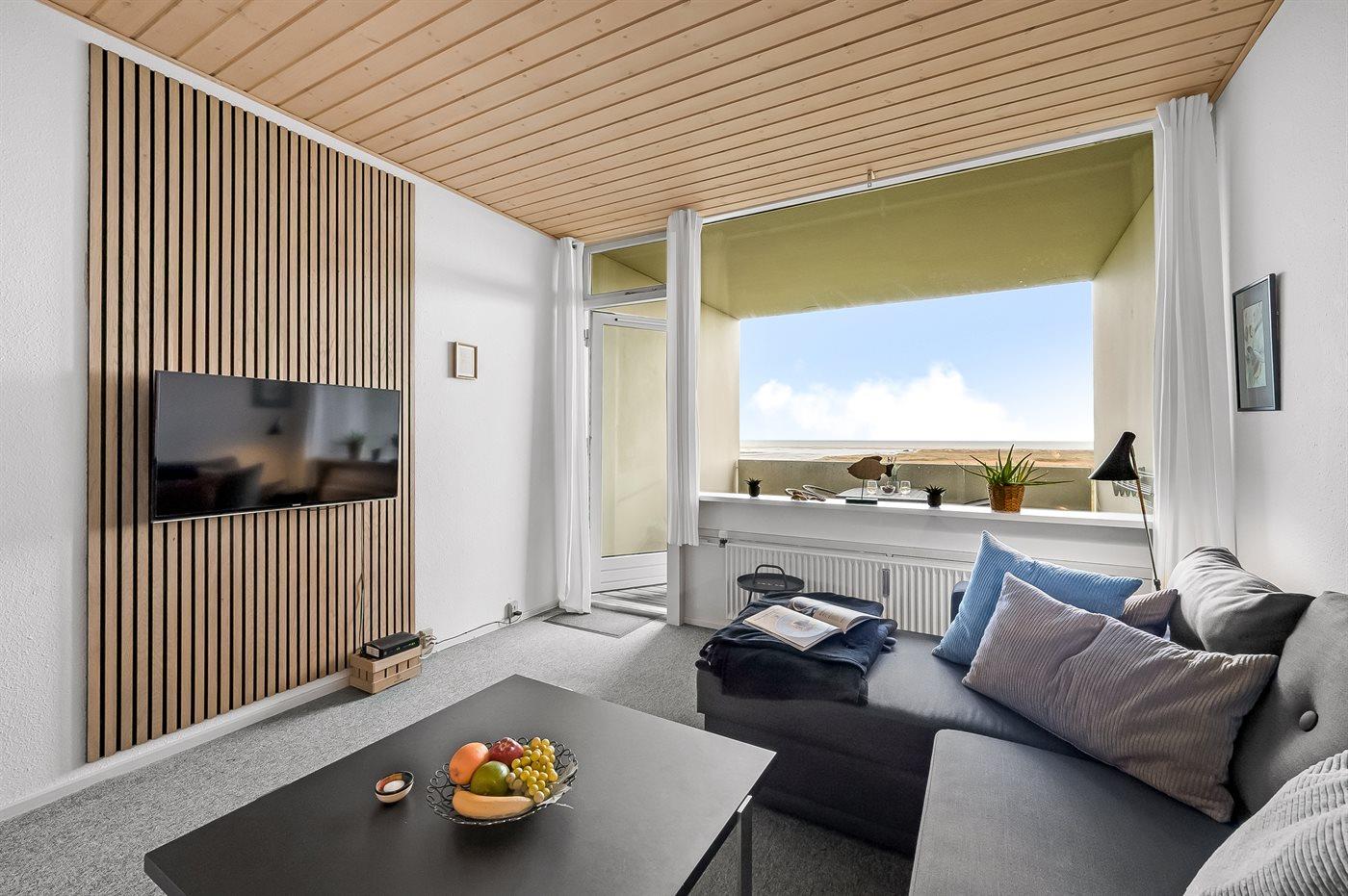 Gemütliche Ferienwohnung mit Meerblick, Balkon und Gemeinschaftspool auf Fanø Bad, ideal für entspannte Urlaubstage.