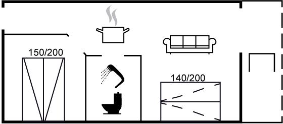 Es gibt einen Schlafraum. 2 Schlafplätze in einem Doppelbett.