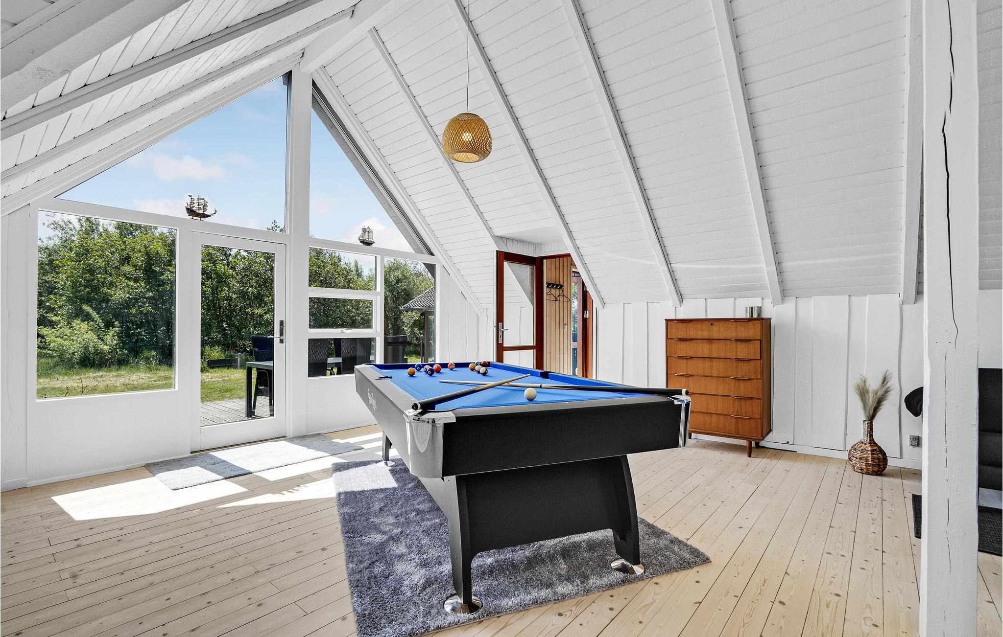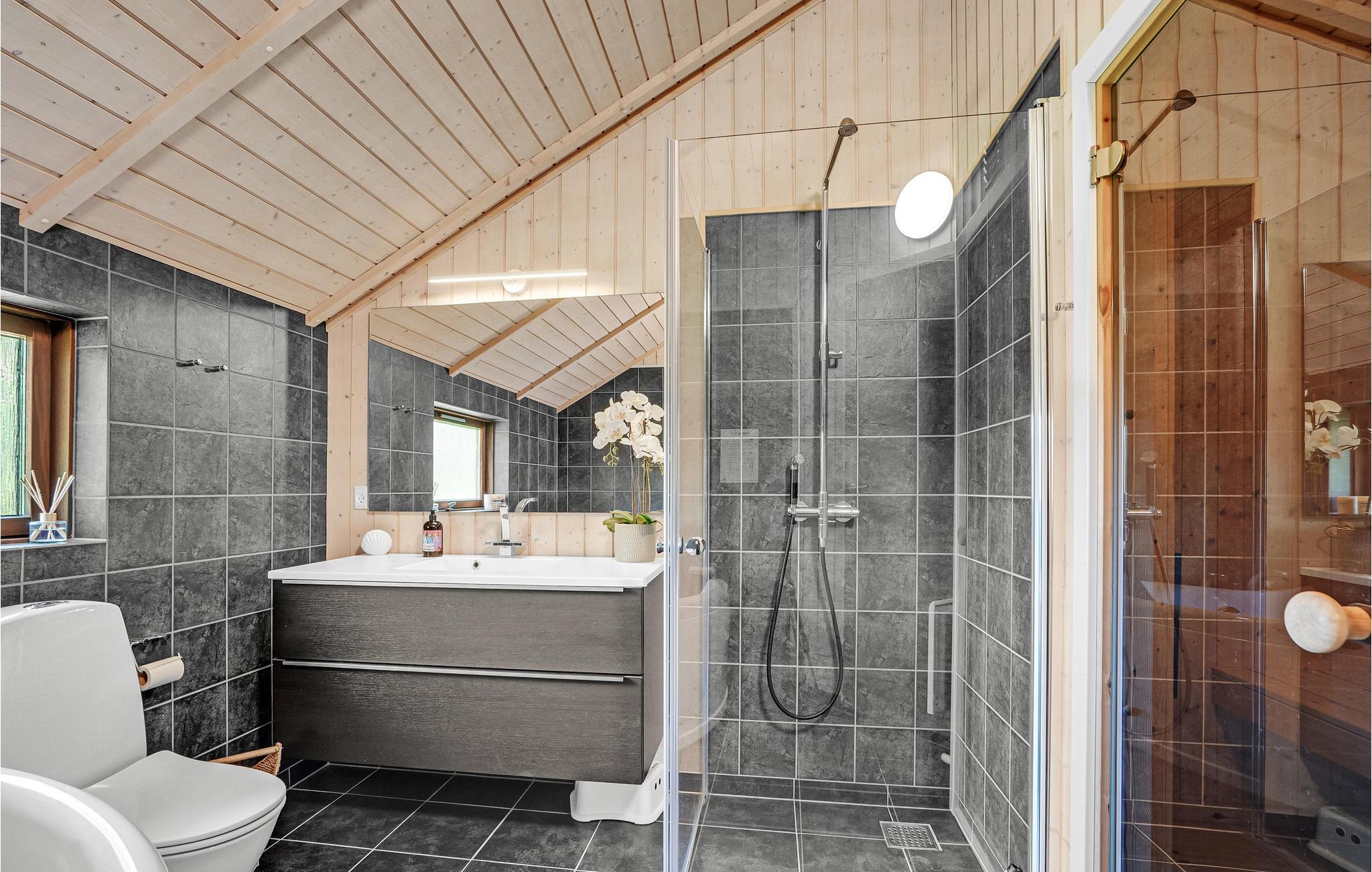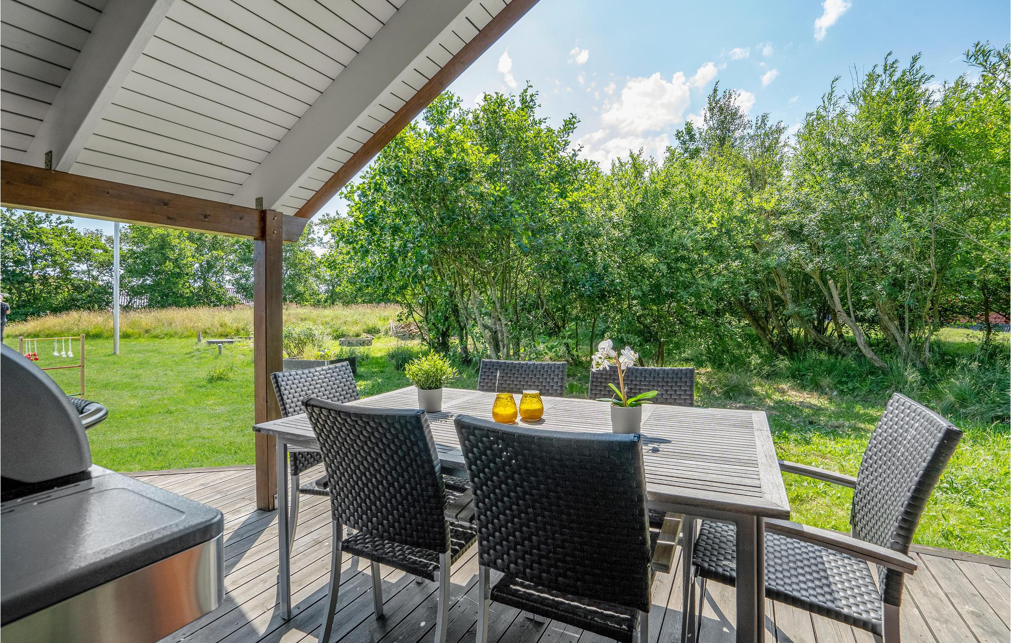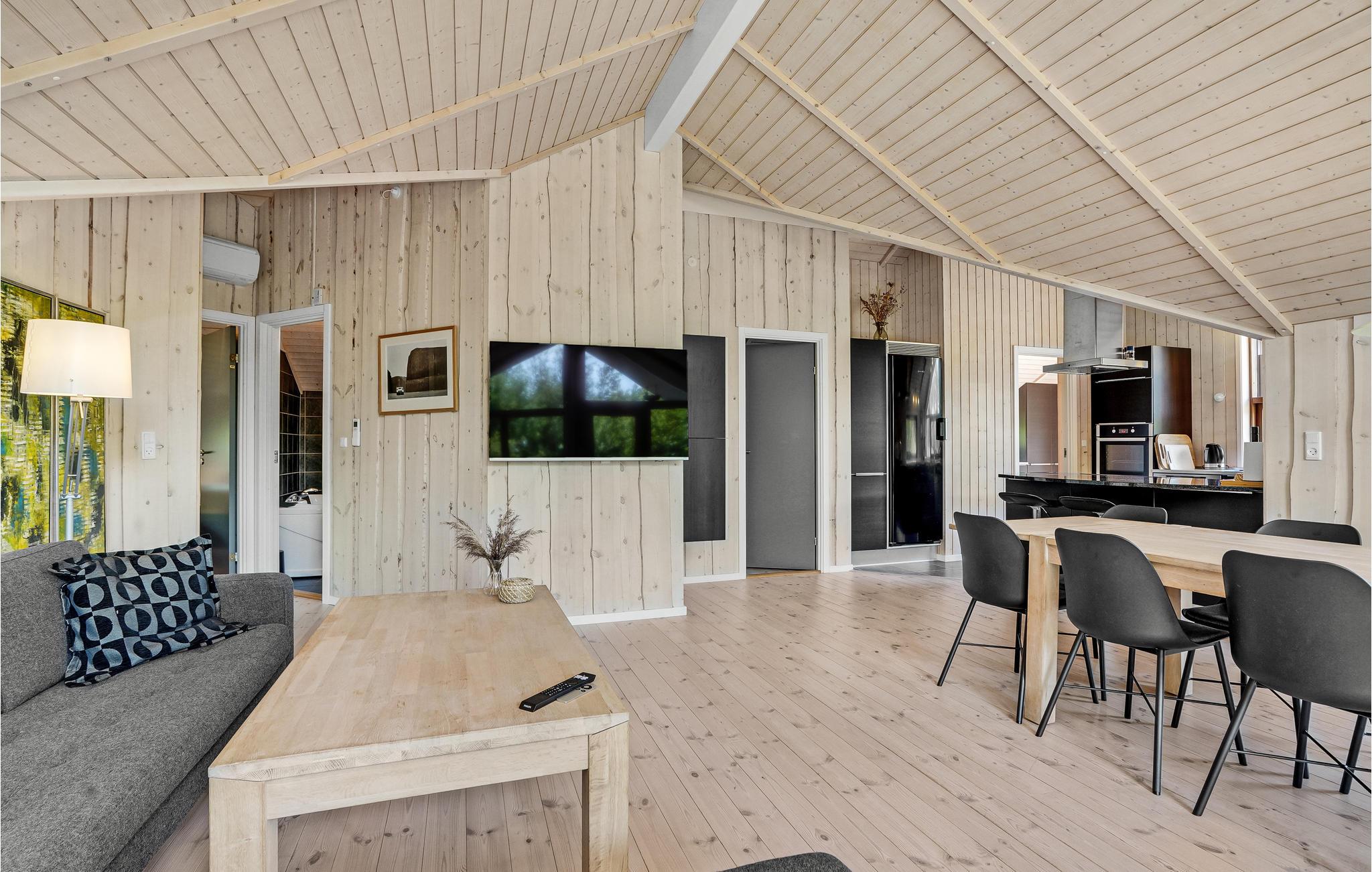 Dieses Haus liegt wunderbar in ruhiger Umgebung am ein schönes Naturgrundstück. Es bietet Ihnen eine ideale Unterkunft für bis zu 12 Personen, somit ist hier ausreichend Platz für 2 Familien mit Haustier, die zusammen Urlaub machen möchten. Im Innenraum erwartet Sie ein modernes und stilvolles Design mit geräumigem Wohnraum und einigen gemütlichen Sitzmöglichkeiten. Machen Sie sich zusammen ein Frühstück und genießen es auf Ihrer offenen Terrasse, während Sie sich von der Sonne bescheinen lassen und die Luft im Freien genießen. Die Atmosphäre des Hauses ist warm und hell, dies wird Ihnen ein wohliges und heimeliges Gefühl verschaffen. Es steht Ihnen ebenso ein Whirlpool und eine Sauna zur Verfügung, wo Sie sich vollkommen entspannen können.
