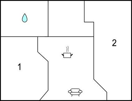 Badezimmer (nr. 1) - WC. Warmes und kaltes Wasser. Dusche