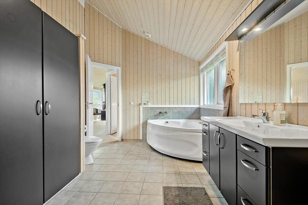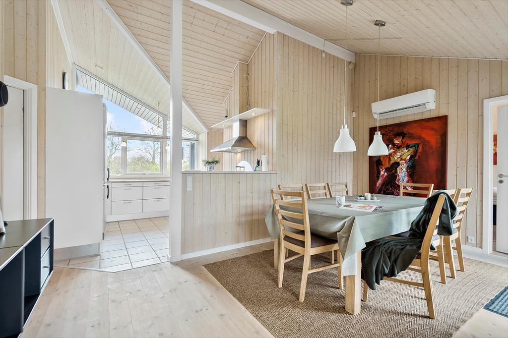 Wenn du nach einem Ferienhaus suchst, das eine große Familie oder vielleicht sogar zwei Familien mit Kindern beherbergen kann, bist du hier genau richtig. Denn in diesem Haus stehen dir ganze 121 m2 Innenfläche zur Verfügung, die vernünftig auf unter anderem vier Schlafzimmer und zwei Badezimmer verteilt sind. Das größte Badezimmer ist mit einem Whirlpool ausgestattet und wird sicherlich bei allen Genießern gut ankommen - stell dir vor, den Tag mit einem warmen Bad und etwas Wellness ausklingen zu lassen! Wenn du dich lieber im Wohnzimmer entspannen möchtest, kannst du dich auf dem Ecksofa mit Blick auf den Kamin und den Flachbildfernseher zurücklehnen. Und sowohl morgens, mittags als auch abends dient der Essbereich als schöner Treffpunkt, wenn ihr das Essen in der angrenzenden Küche zubereitet habt.