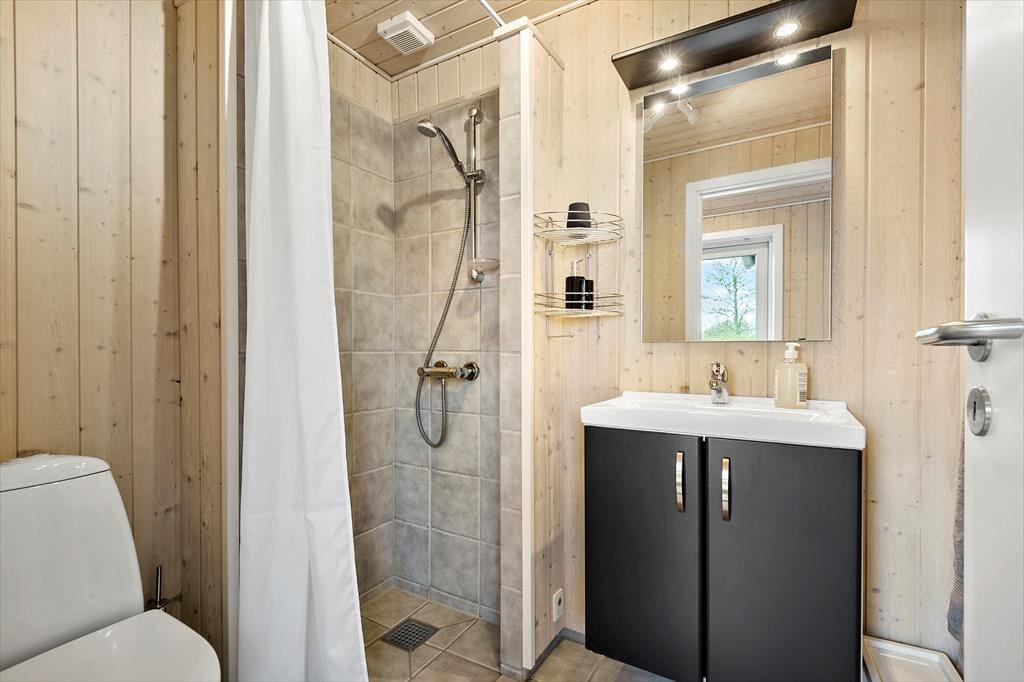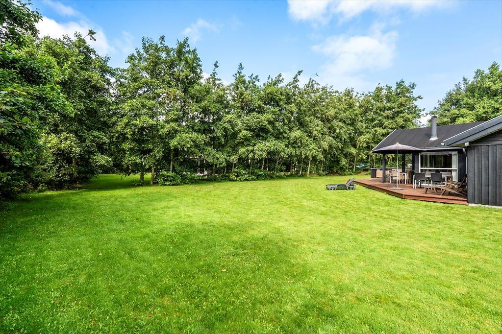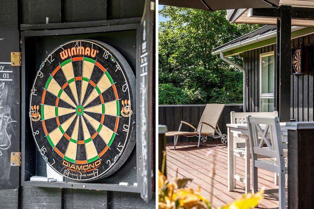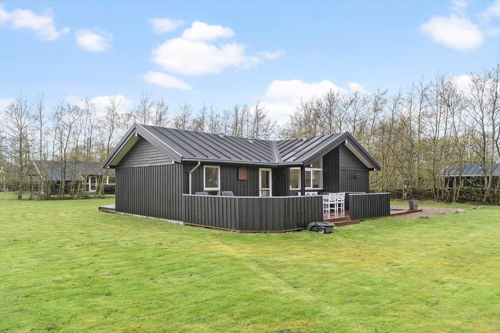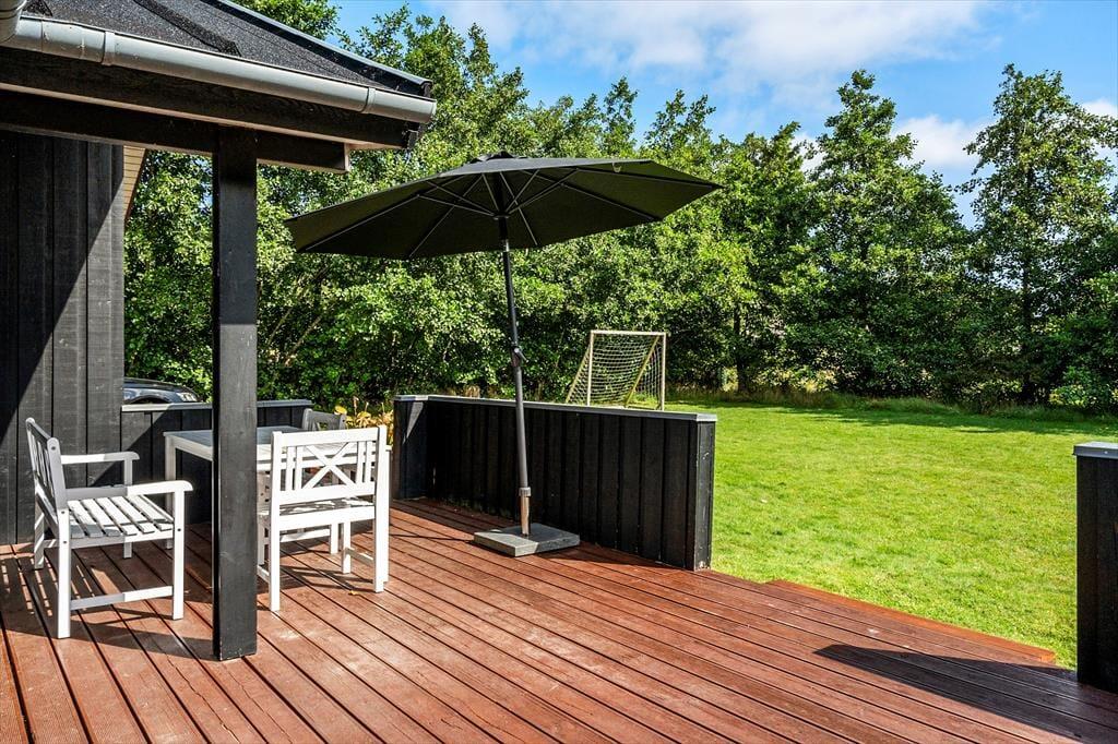 Klingt eine Morgendusche unter freiem Himmel verlockend? Das ist genau das, was du bekommst, wenn du ein Handtuch über die Schulter wirfst und zur Außendusche im Terrassenbereich gehst. Alternativ kannst du dir einfach eine Tasse Kaffee zubereiten und sie draußen genießen, um die Ruhe und die Sonne zu genießen, während das Haus und die Umgebung erwachen. Rund um das Ferienhaus gibt es mehrere schöne Sitzplätze, einschließlich überdachter Bereiche, wenn du tagsüber Schatten möchtest oder abends vor dem Tau geschützt sein möchtest. Der Rasen ist groß, sodass hier viel Platz zum Ballspielen und Toben ist, und die kleinsten Kinder haben sogar einen Spielplatz mit Rutsche und Schaukel.