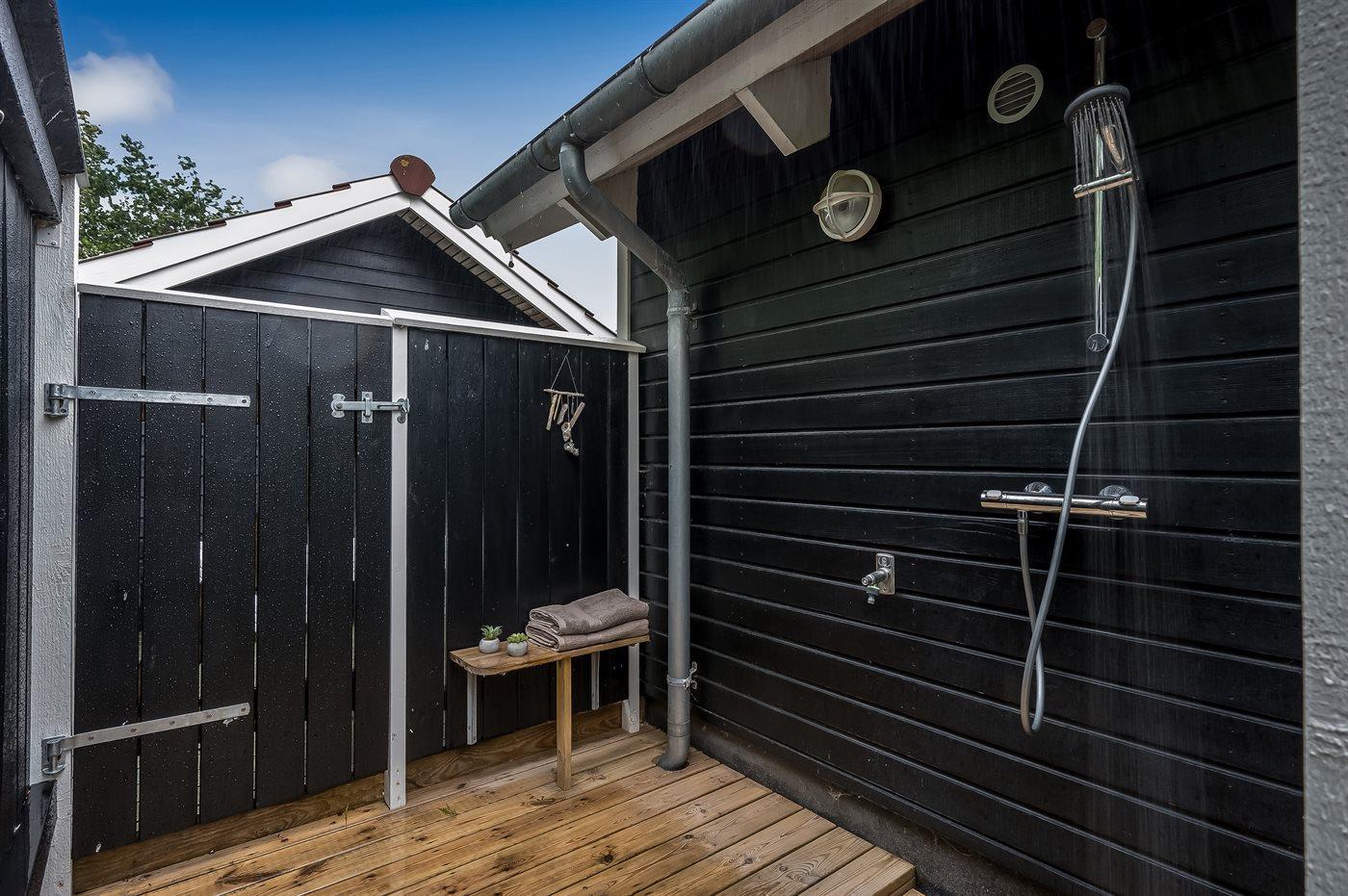 Zur weiteren Entspannung steht ein Innenwhirlpool für 2 Personen zur Verfügung. Im Sommer bietet eine Außendusche mit warmem und kaltem Wasser die Möglichkeit, sich nach einem Strandtag oder einfach unter freiem Himmel zu erfrischen.