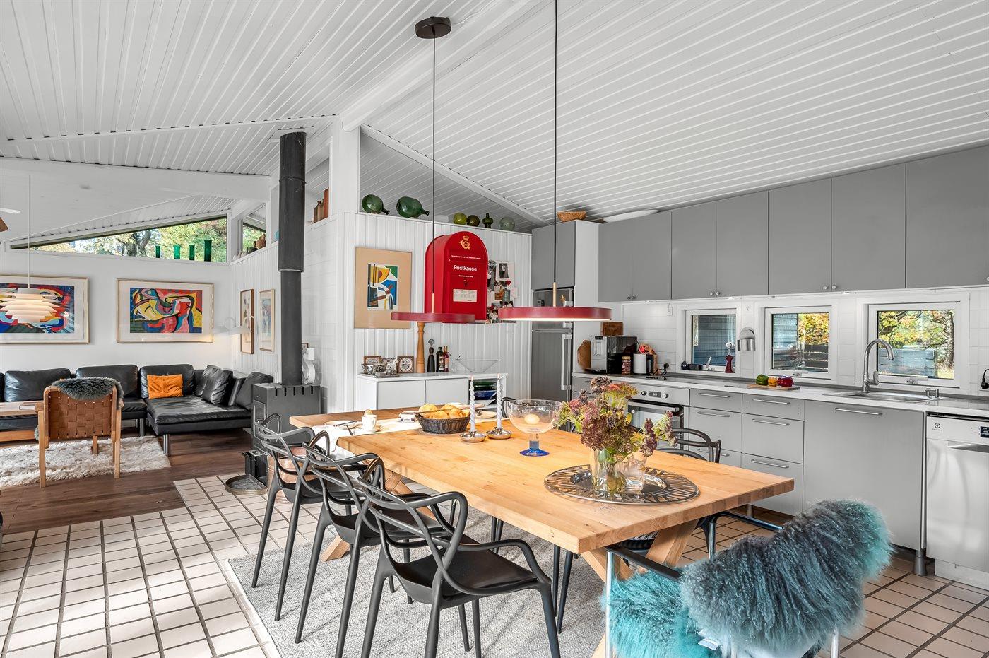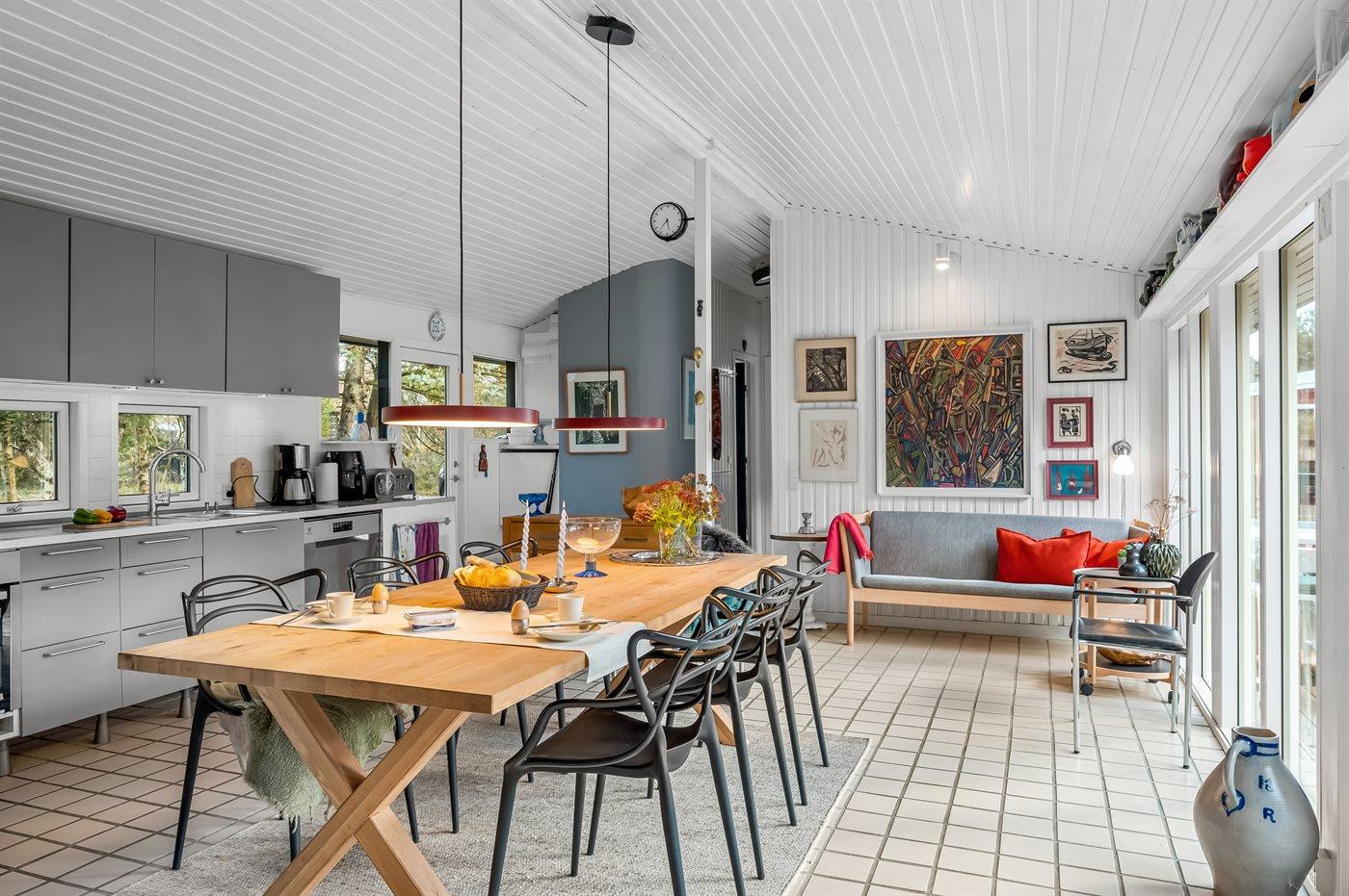 Ein sehr schönes und geräumiges Balkenhaus, welches in der ungestörten Lage an der Torp Plantage für 6 Personen vermietet wird. Das Haus ist hell und gemütlich eingerichtet. Große Terrasse. Internetzugang. Hier sind Haustiere willkommen und das schöne Gebiet bietet zum Spazierengehen mit dem Hund ein. Ein sehr persönlich und individuelles Haus, welches 2001 renoviert wurde.