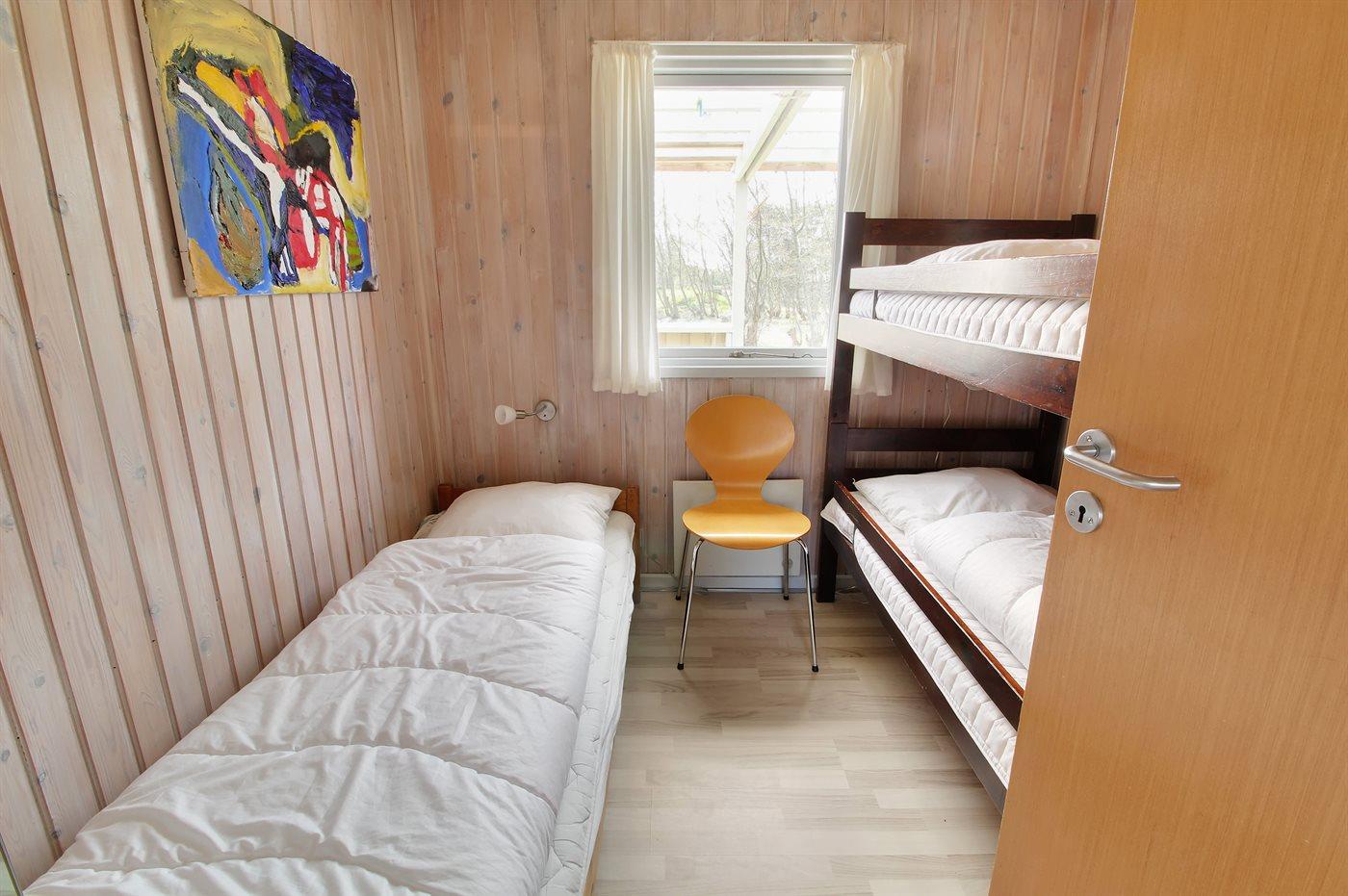 Die Schlafplätze verteilen sich auf 3 Schlafräume. 2 Schlafplätze in einem Doppelbett. 3 Schlafplätze in Einzelbetten. 2 Schlafplätze in einem Etagenbett. Ferner steht ein Kinderbett zur Verfügung.