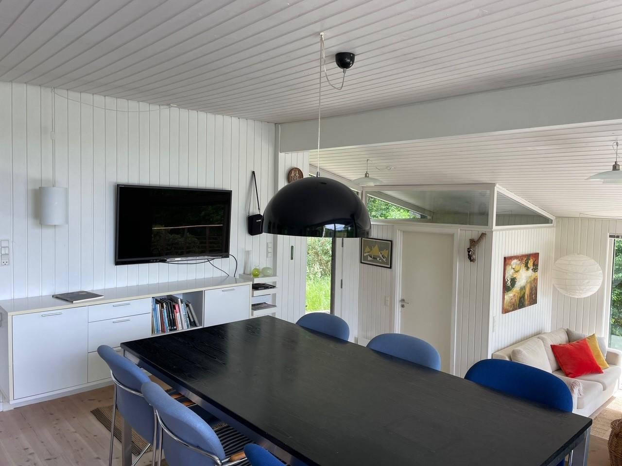 Herzstück des Hauses ist das helle, gut möblierte Wohn-/Esszimmer mit Zugang zur Terrasse, Kaminofen, Essplatz für zehn Personen und Kabelfernsehen mit dänischen (inkl. TV2) und deutschen Programmen. In offener Verbindung dazu liegt die neuere Küche mit schwarzen Elementen, Induktionsherd mit Backofen, Kühl-/Gefrierkombination, Geschirrspüler und Mikrowelle. Die sechs Schlafplätze verteilen sich auf zwei helle Schlafzimmer mit Doppelbett und ein Zimmer mit Doppel-Schlafsofa. Badezimmer mit Dusche, Waschmaschine und Trockner. Internetzugang.