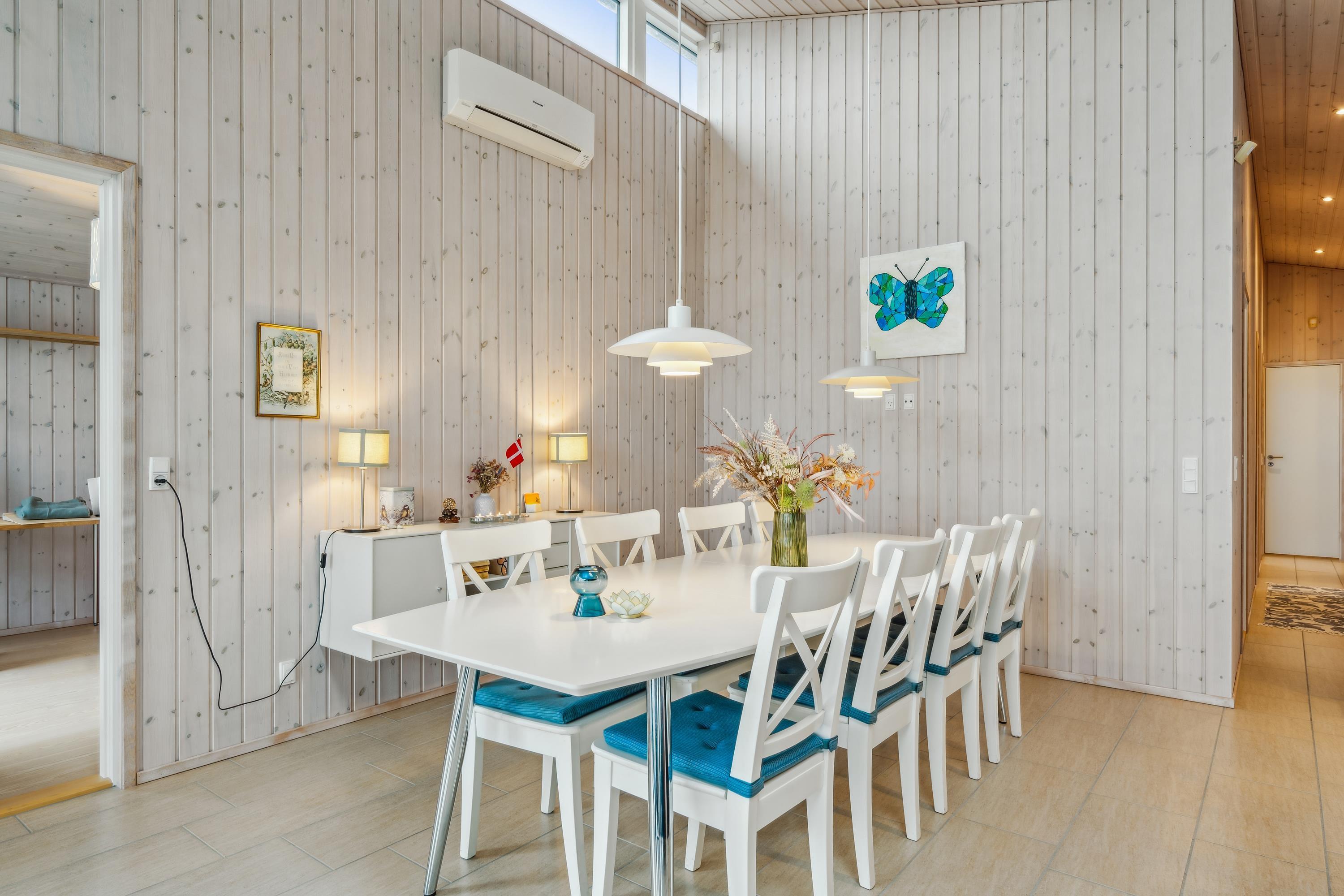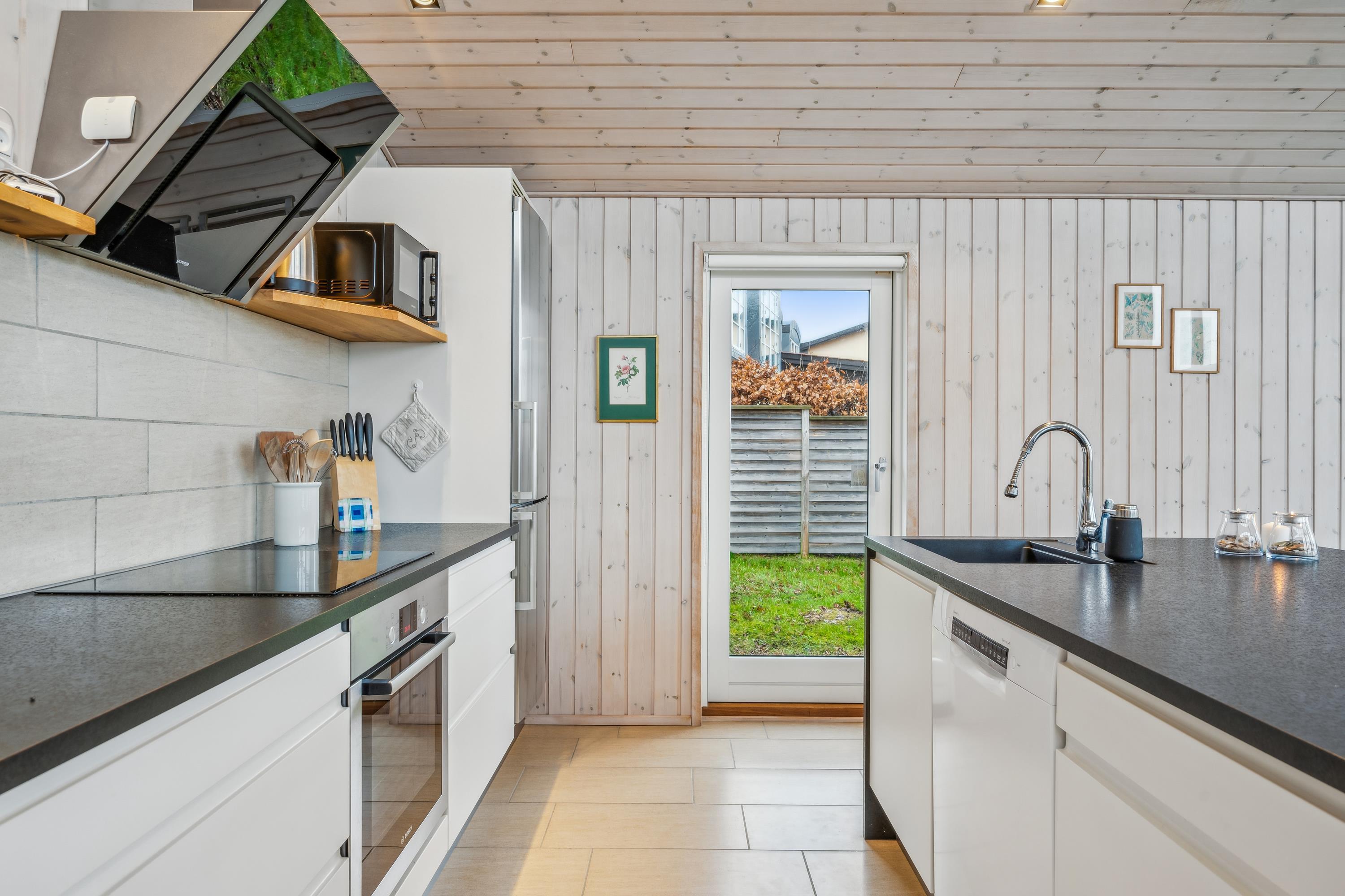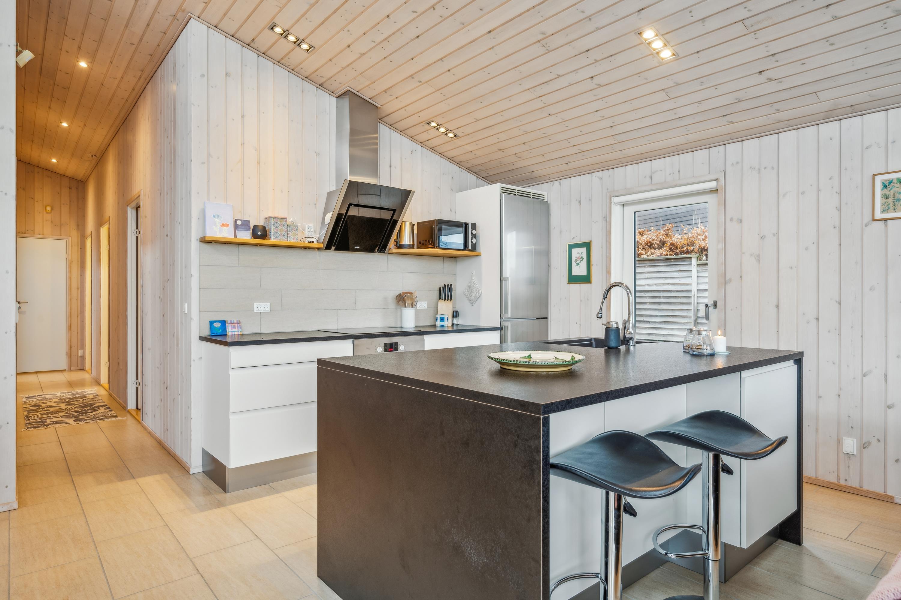 Bei Femmøller Strand finden Sie dieses schöne und gepflegte Ferienhaus, das in der malerischen Egil-Fischer-Gegend liegt. Hier gibt es ein stilvolles und einladendes Wohnzimmer, ausgestattet mit hochwertigen Möbeln, einem Kaminofen und einer Wärmepumpe, sowie Zugang zu einer herrlichen Terrasse mit Blick auf das Wasser. Die moderne Küche verfügt über eine Kochinsel, an der Sie sich bei der Zubereitung von Mahlzeiten und einem guten Glas Wein versammeln können.