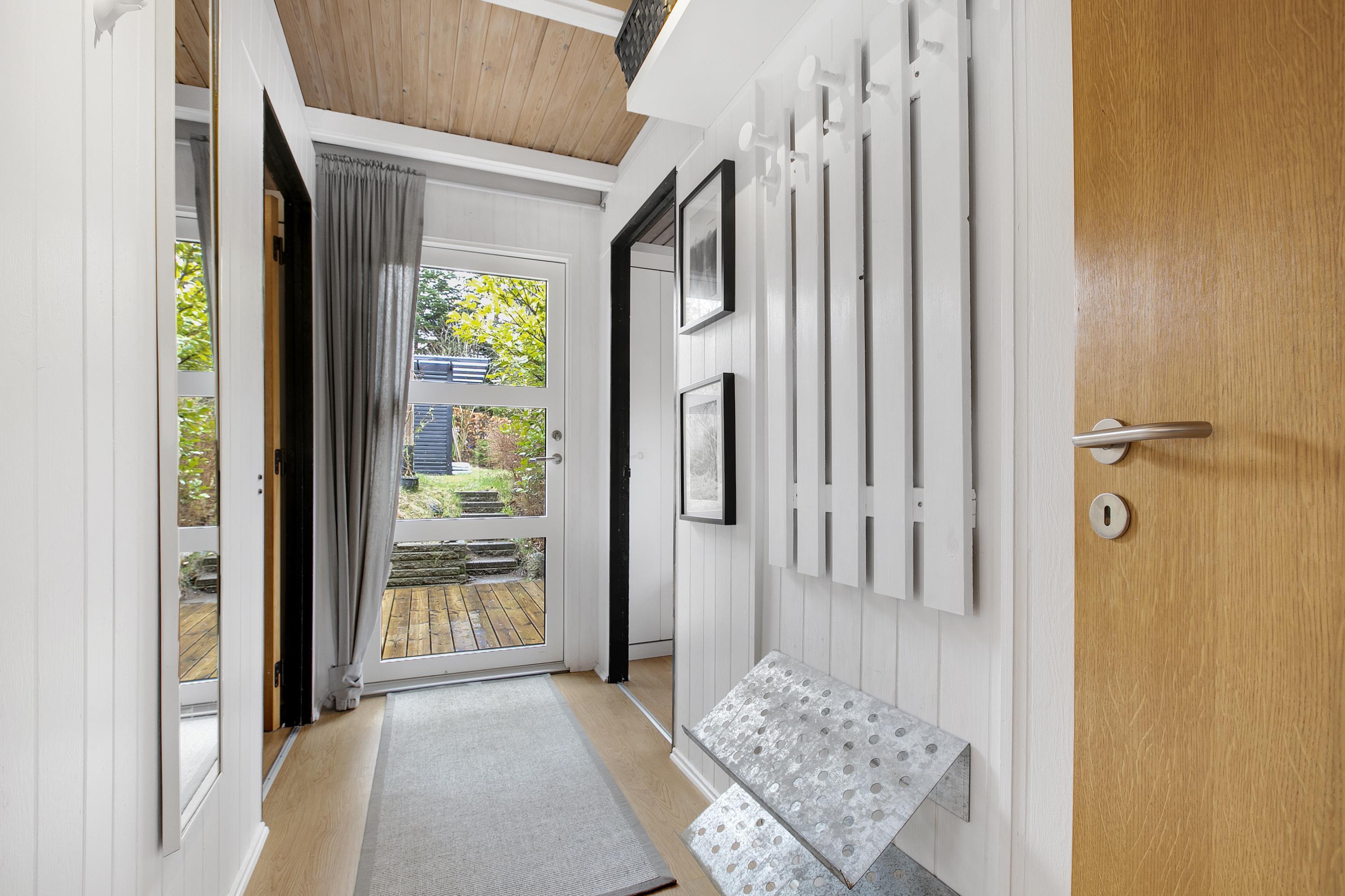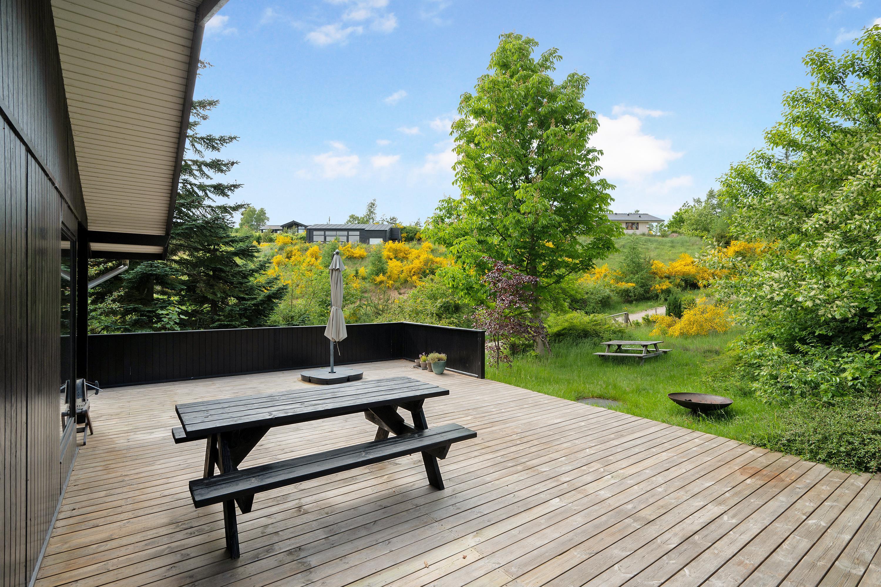 Auf einem großen Naturgrundstück in der schönen, waldreichen Landschaft bei Femmøller liegt dieses ältere, neu renovierte und wirklich schöne Haus, umgeben von einer großen, teilweise überdachten Holzterrasse mit Gartenmöbeln, Sonnenschirm und Grill. Für die Kinder gibt es Spielgeräte auf dem Grundstück. Eine wahre Naturoase, in der Sie sich entspannen und an Outdoor-Aktivitäten teilnehmen können.